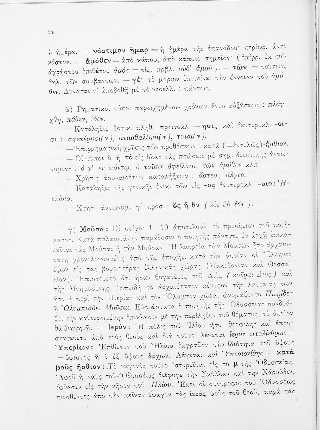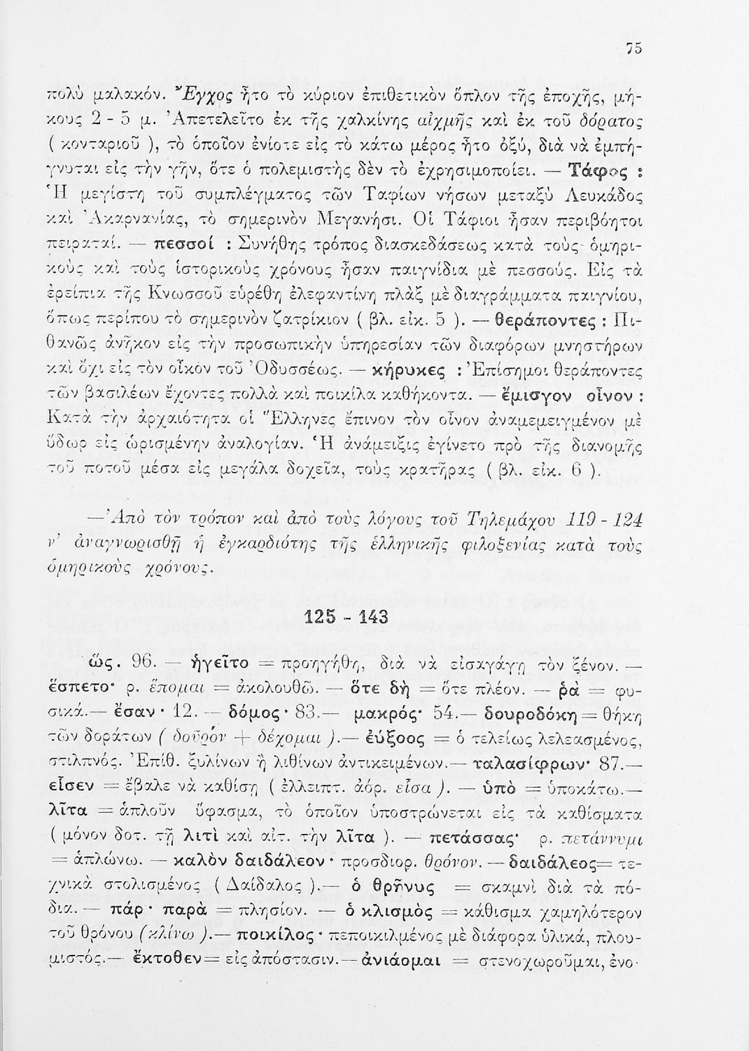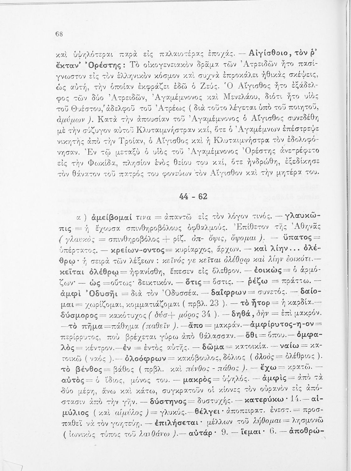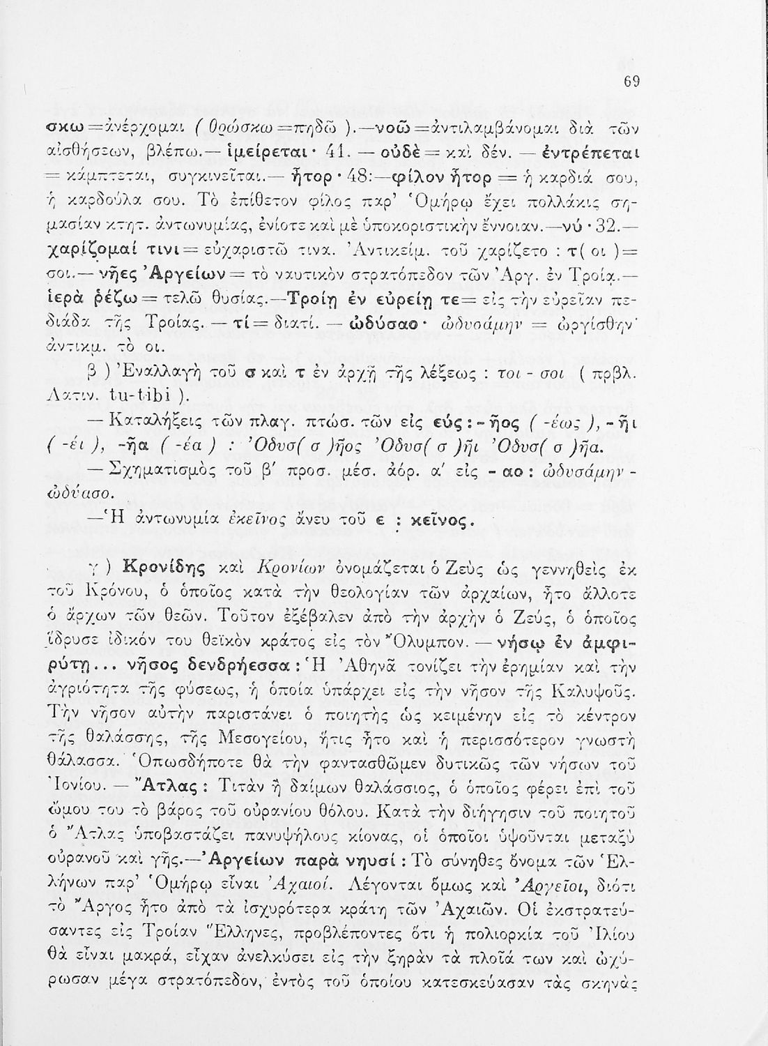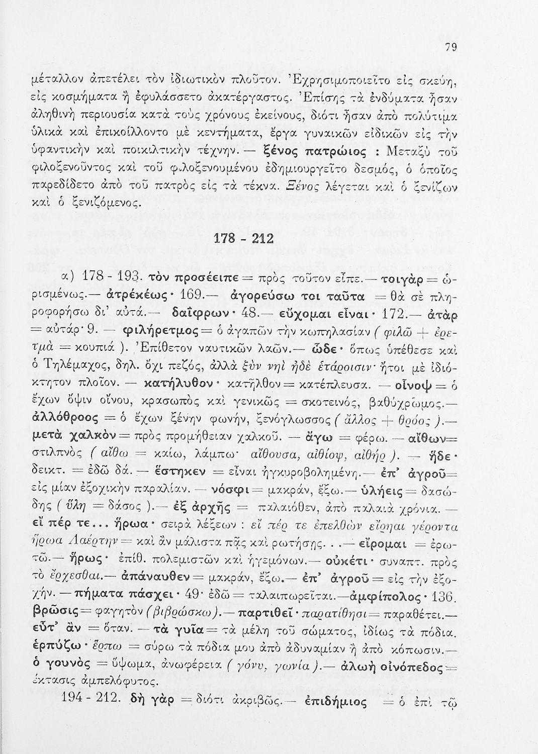 Σχολικό εγχειρίδιο Αρχαίων Ελληνικών Γυμνασίου που περιλαμβάνει μετάφραση της Οδύσσειας και λεξιλόγιο.