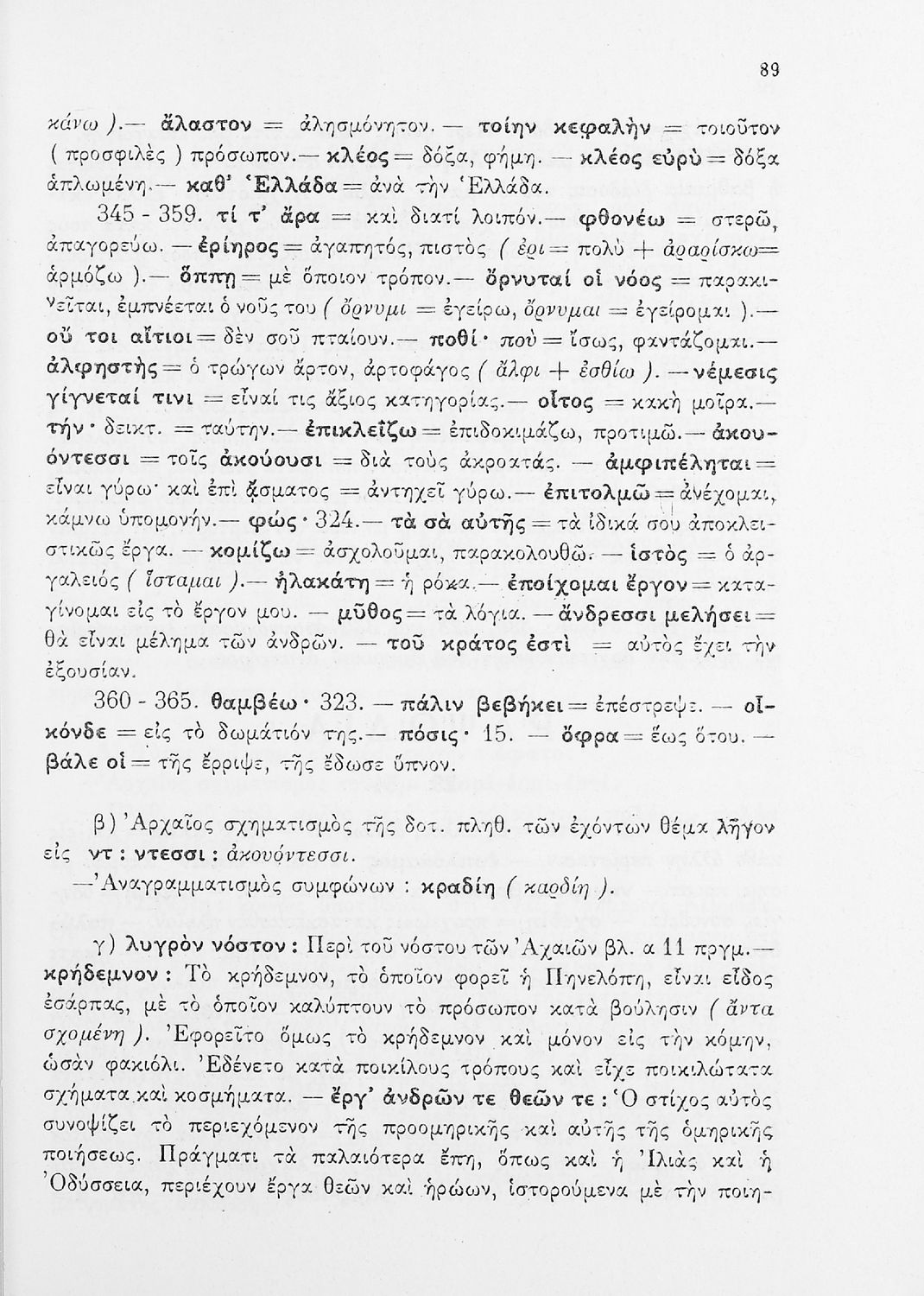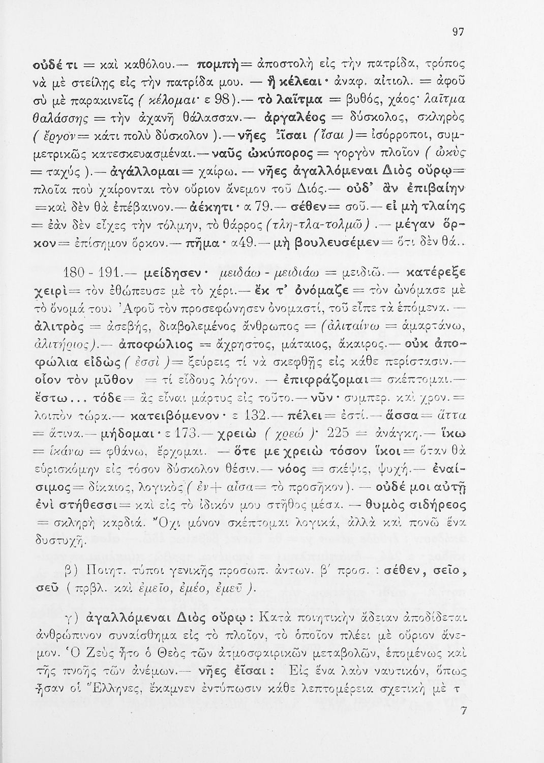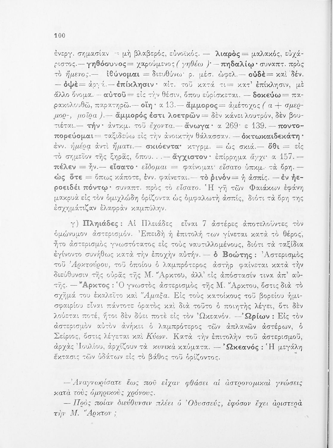 Σχολικό εγχειρίδιο Αρχαίων Ελληνικών Γυμνασίου που περιλαμβάνει μετάφραση της Οδύσσειας και λεξιλόγιο.