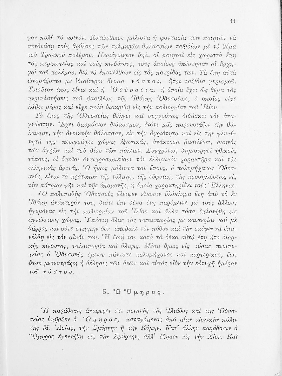 Σχολικό εγχειρίδιο Αρχαίων Ελληνικών Ε΄ Γυμνασίου που περιέχει αποσπάσματα από τις ραψωδίες της Οδύσσειας, εισαγωγή στη ζωή και το έργο του Όμηρου, περιλήψεις των ραψωδιών, ερμηνευτικά, πραγματολογικά σχόλια ...