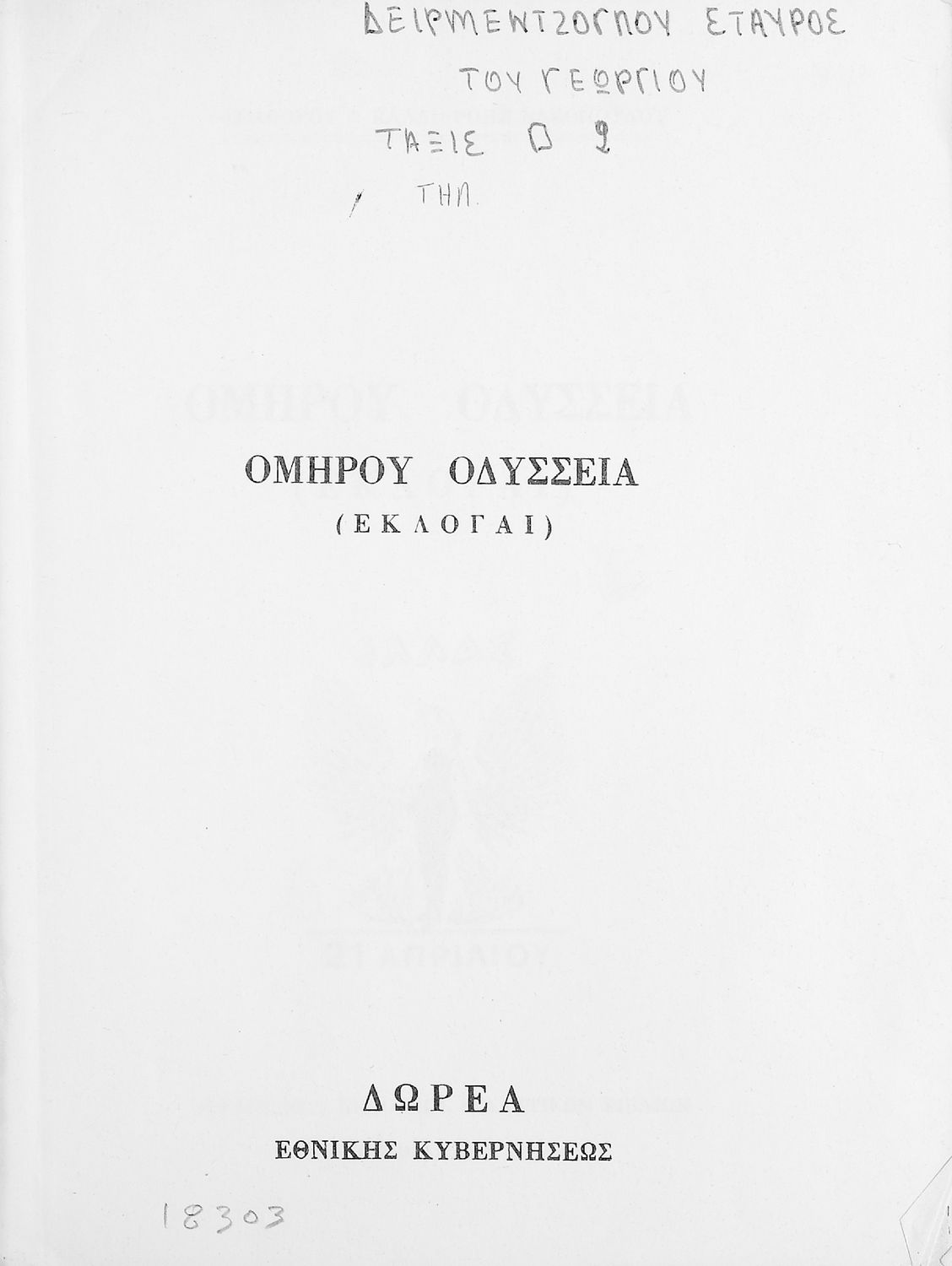 Τίτλος: Ομήρου Οδύσσεια (Εκλογαί) Δ΄ Γυμνασίου