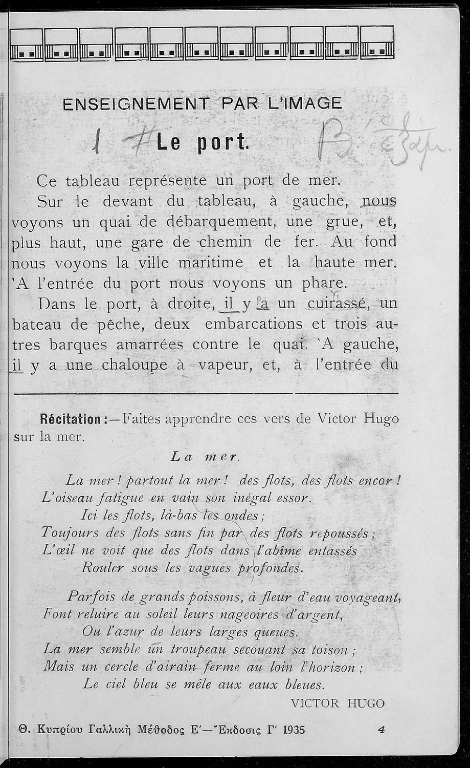 Γαλλική μέθοδος της πέμπτης τάξεως εγκεκριμένη υπό του Υπουργείου της Παιδείας δια την Ε΄ τάξιν των Εξαταξίων Γυμνασίων και τας αντιστοίχους τάξεις των λοιπών σχολείων της Μέσης Εκπαιδεύσεως