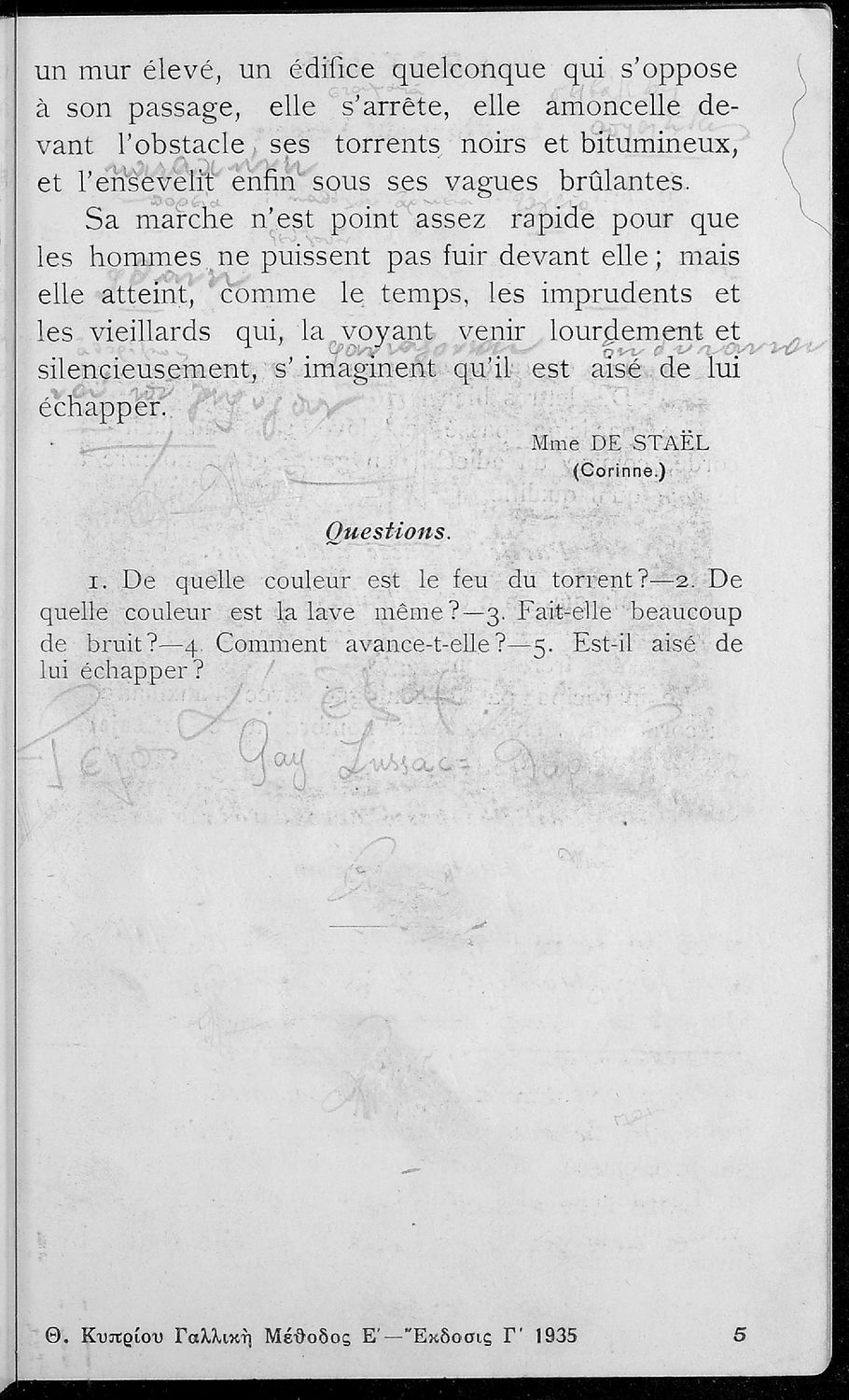 Σχολικό εγχειρίδιο Γαλλικών για την Ε΄ Γυμνασίου που περιλαμβάνει πεζά, ποιήματα, αποσπάσματα από θεατρικά έργα, βιογραφικά σημειώματα των σyγγραφέων, γραμματικές ασκήσεις, επεξηγηματικές σημειώσεις και λεξιλόγιο.