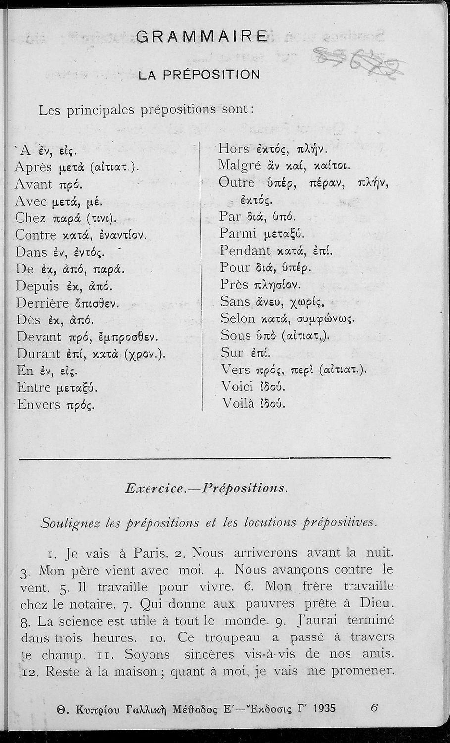 Τίτλος: Γαλλική μέθοδος της πέμπτης τάξεως εγκεκριμένη υπό του Υπουργείου της Παιδείας δια την Ε΄ τάξιν των Εξαταξίων Γυμνασίων και τας αντιστοίχους τάξεις των λοιπών σχολείων της Μέσης Εκπαιδεύσεως