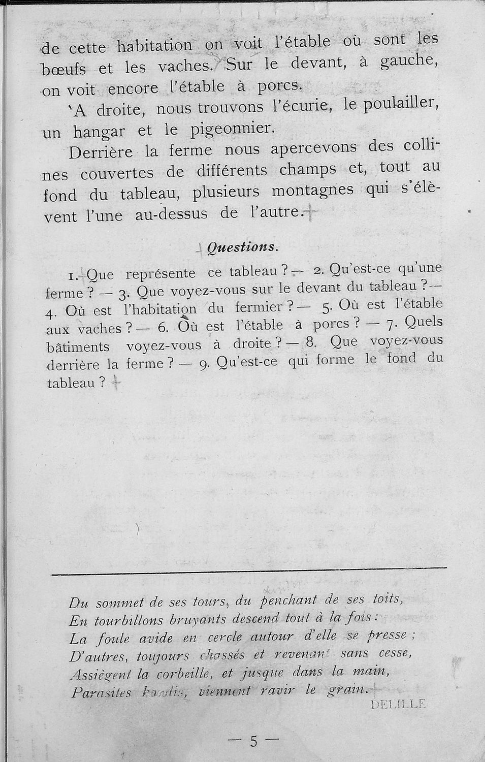 Σχολικό εγχειρίδιο Γαλλικών για την Ε΄ Γυμνασίου που περιλαμβάνει πεζά, ποιήματα, αποσπάσματα από θεατρικά έργα, βιογραφικά σημειώματα των σyγγραφέων, γραμματικές ασκήσεις, επεξηγηματικές σημειώσεις και λεξιλόγιο.