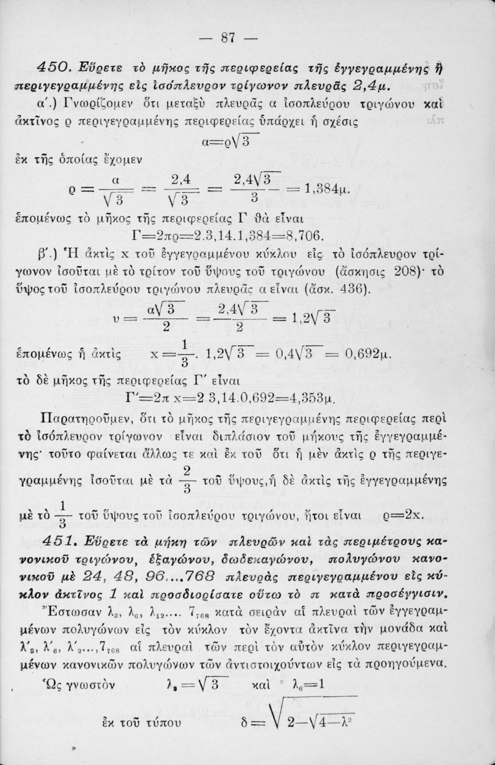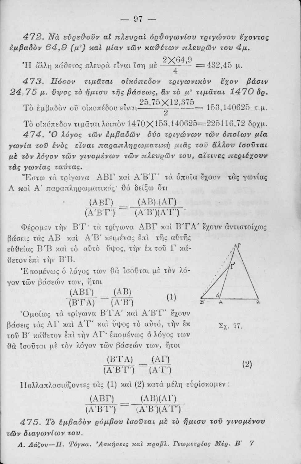 Ασκήσεις και προβλήματα Γεωμετρίας προς χρήσιν των μαθητών των Γυμνασίων, Πρακτικών Λυκείων και των υποψηφίων των διαφόρων ανωτάτων σχολών