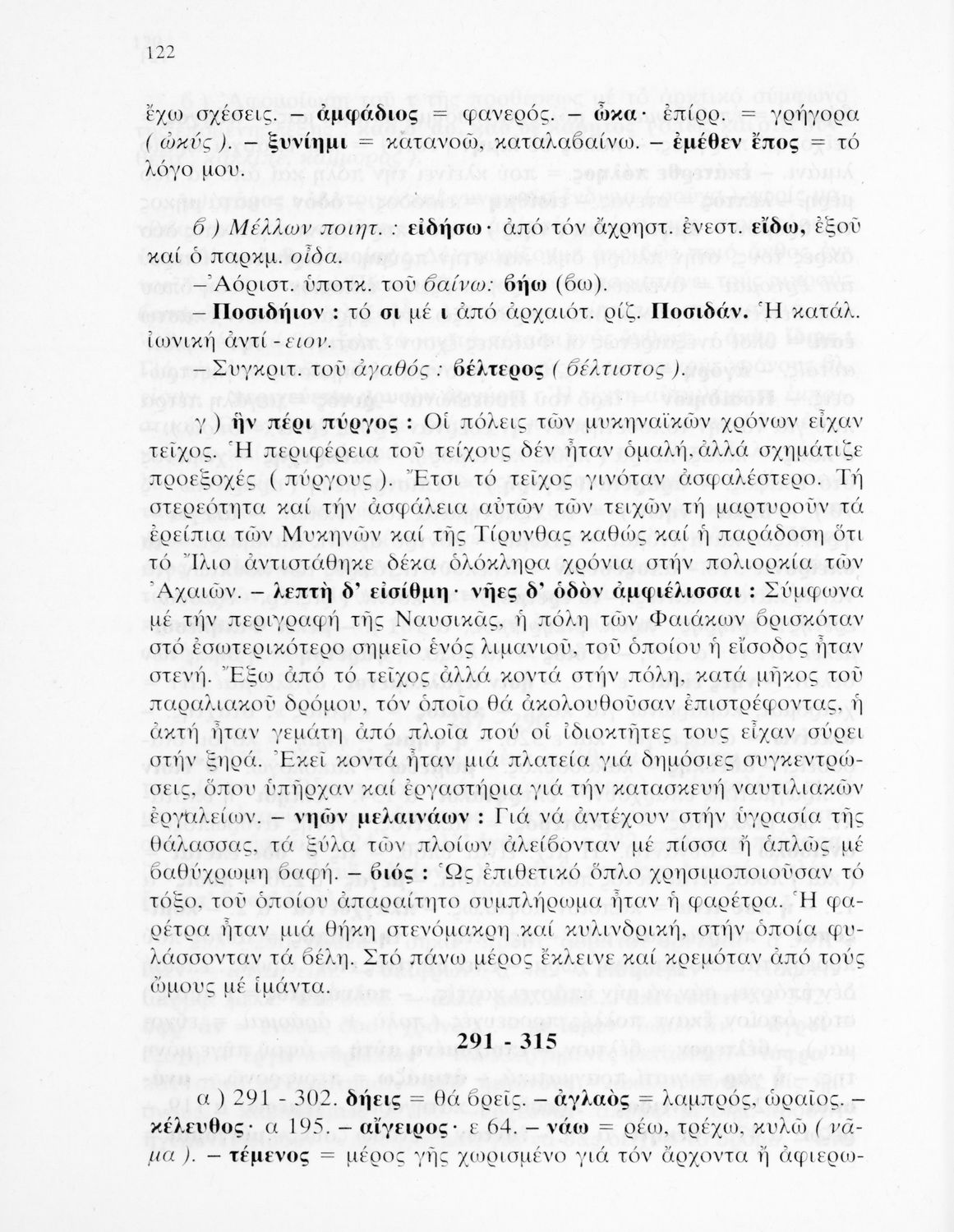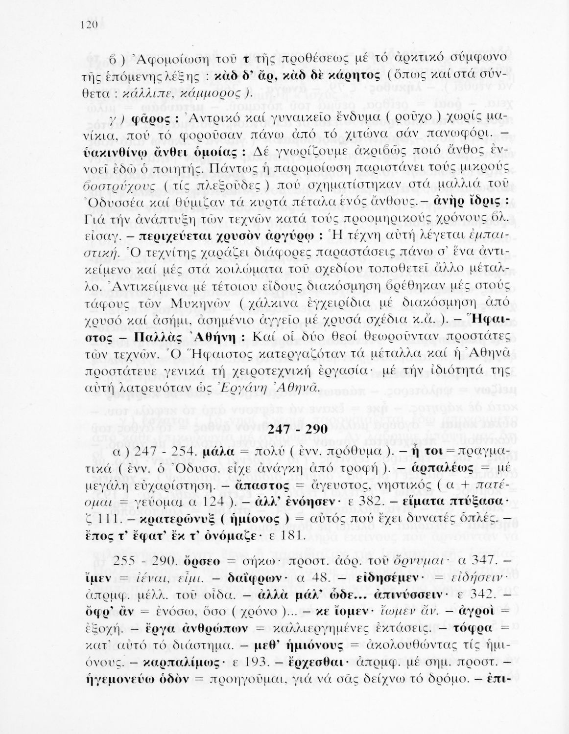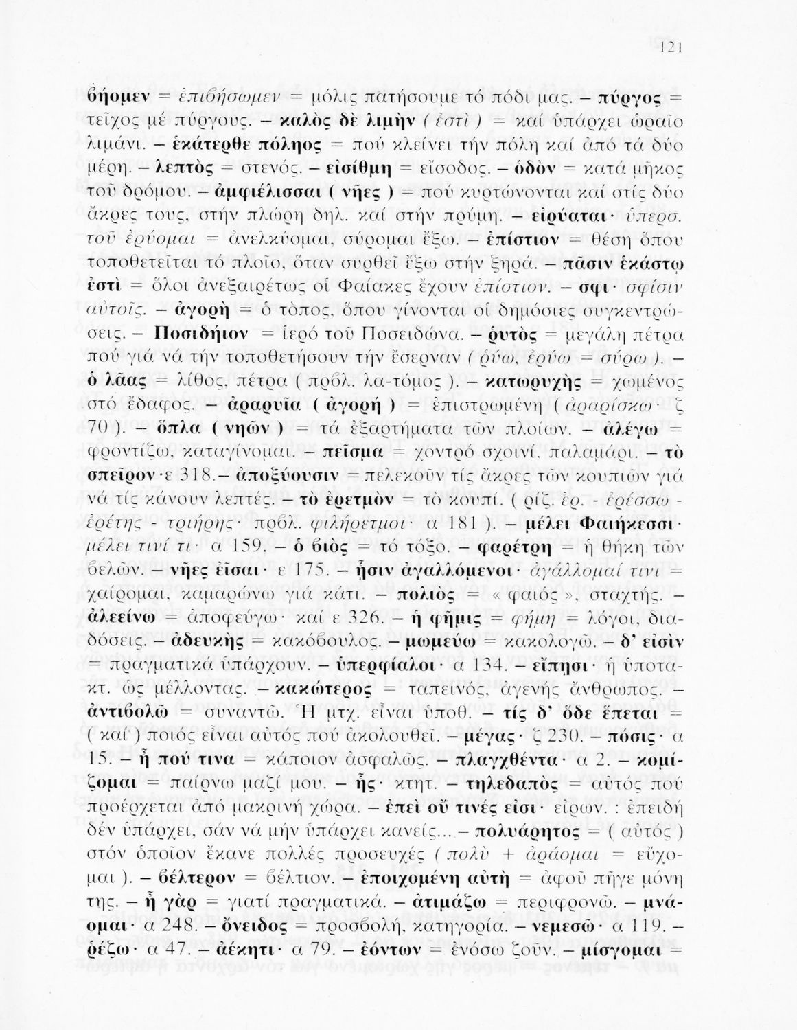 Σχολικό εγχειρίδιο Αρχαίων Ελληνικών. Το βιβλίο περιλαμβάνει εισαγωγή σχετικά με την ελληνική ποίηση και τα ομηρικά έπη. Περιλαμβάνονται αποσπάσματα από το πρωτότυπο κείμενο της Οδύσσειας τα οποία συνοδεύονται από συνδετικές περιλήψεις στη δημοτική. Ακολουθούν ερμηνευτικές σημειώσεις (σημασιολογικές, γραμματικές, πραγματολογικές) και παράρτημα εικόνων.