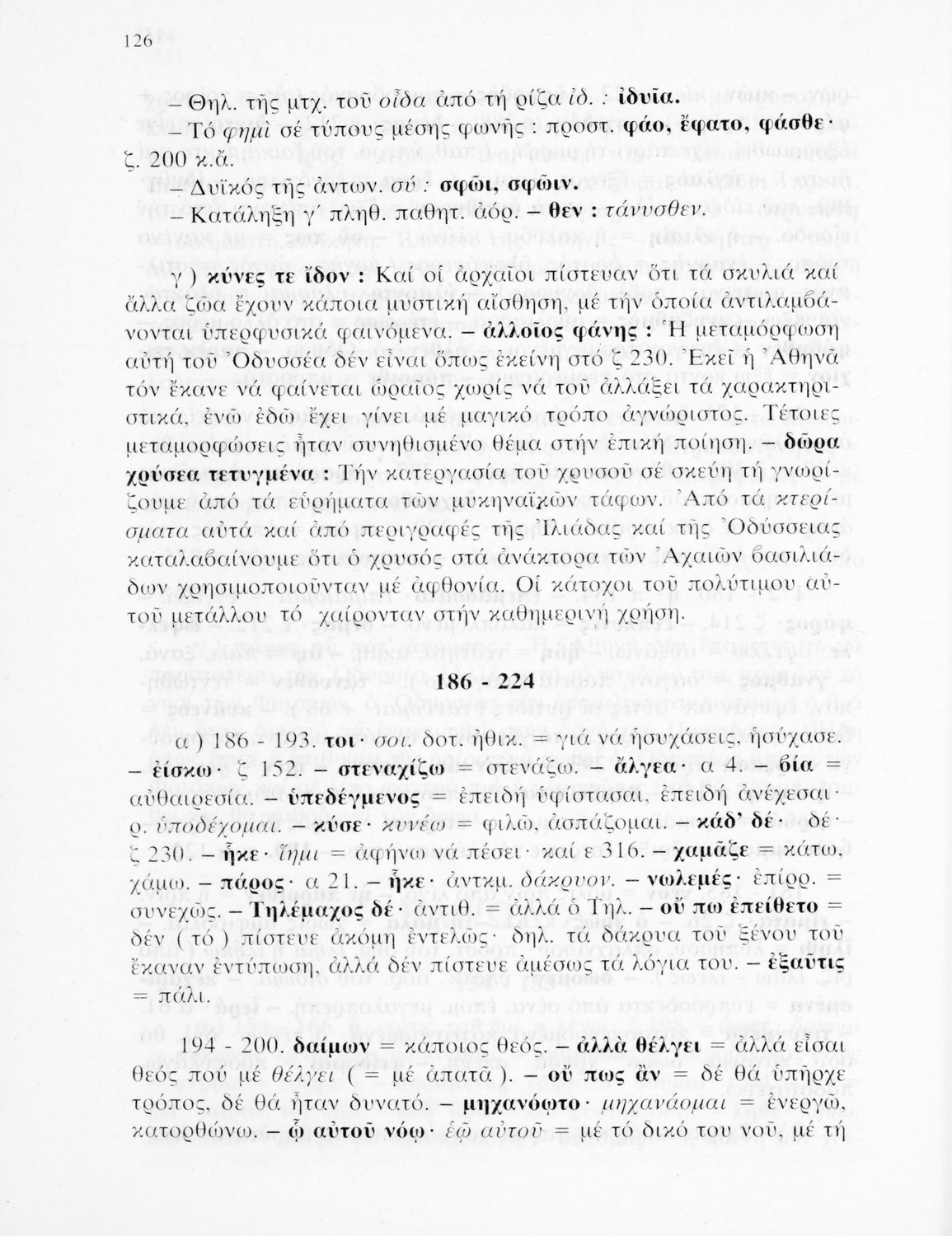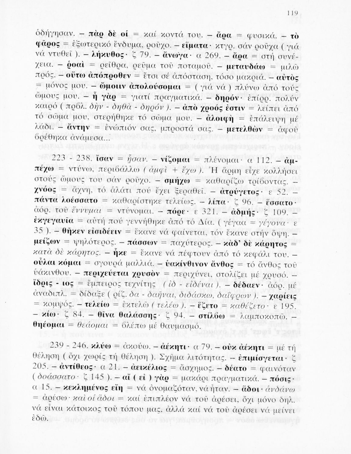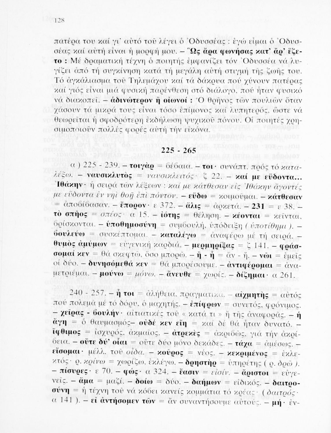Σχολικό εγχειρίδιο Αρχαίων Ελληνικών. Το βιβλίο περιλαμβάνει εισαγωγή σχετικά με την ελληνική ποίηση και τα ομηρικά έπη. Περιλαμβάνονται αποσπάσματα από το πρωτότυπο κείμενο της Οδύσσειας τα οποία συνοδεύονται από συνδετικές περιλήψεις στη δημοτική. Ακολουθούν ερμηνευτικές σημειώσεις (σημασιολογικές, γραμματικές, πραγματολογικές) και παράρτημα εικόνων.