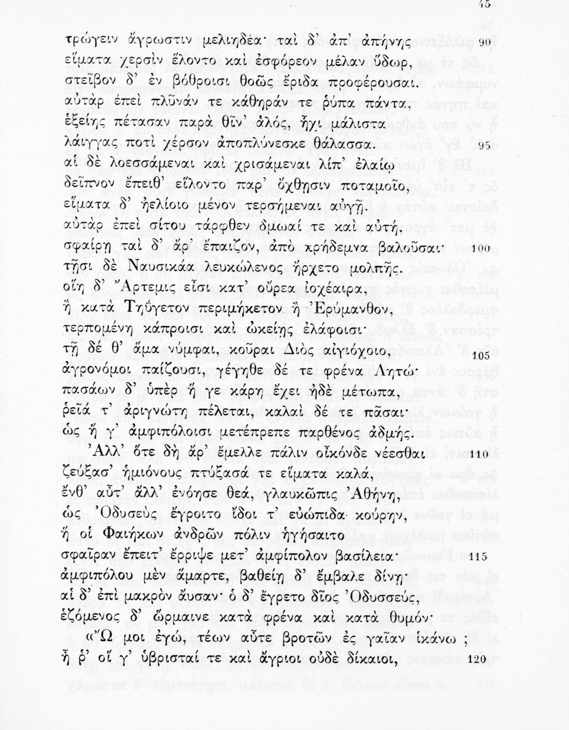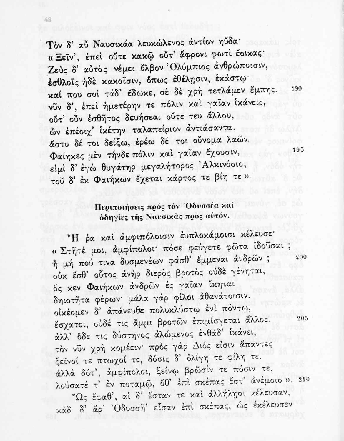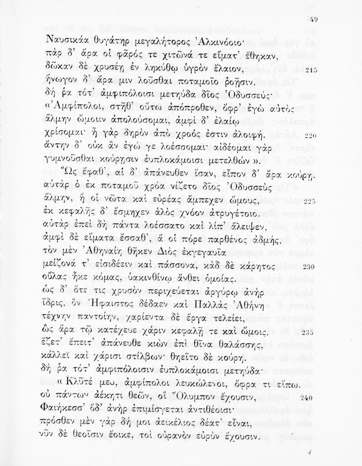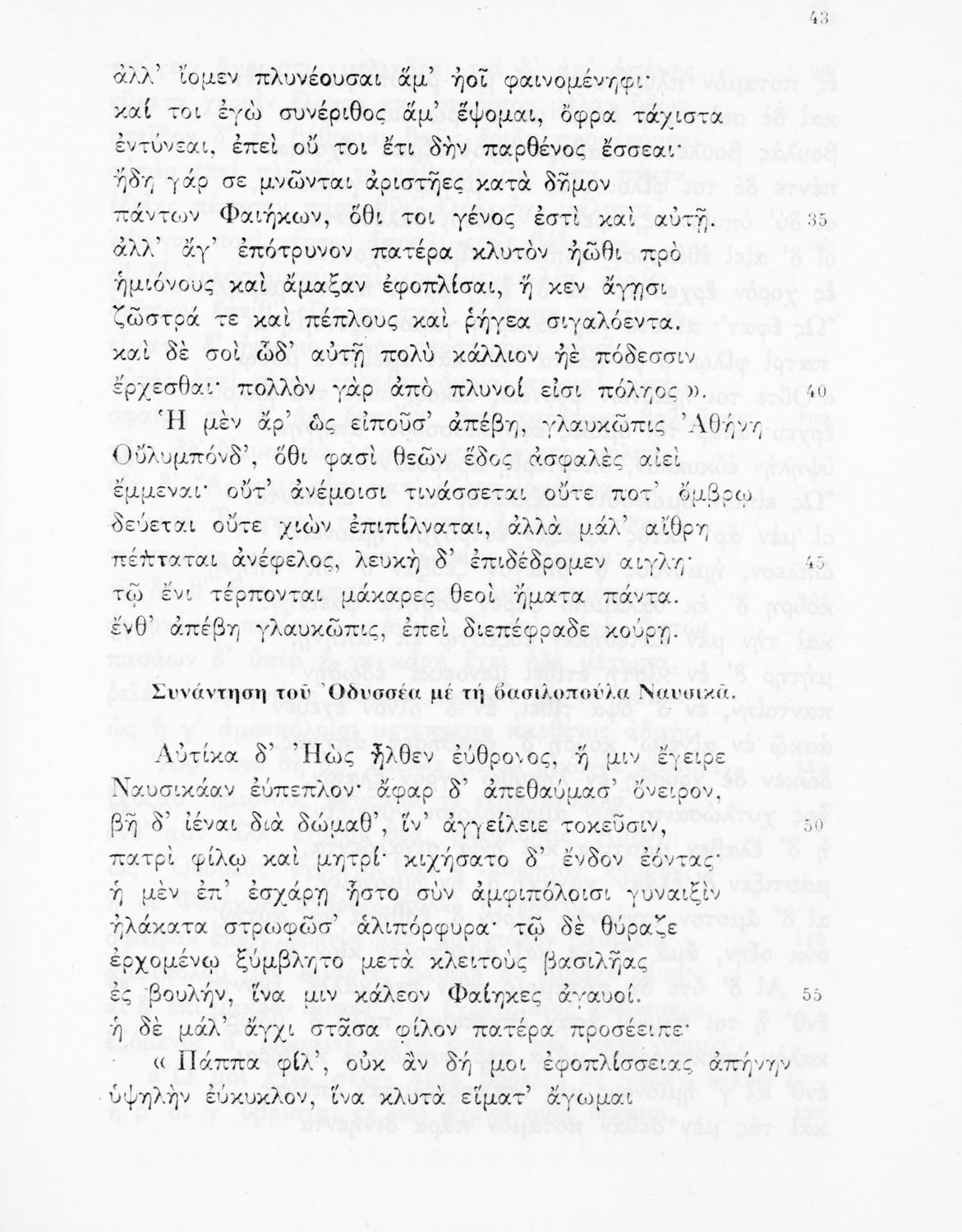 Σχολικό εγχειρίδιο Αρχαίων Ελληνικών. Το βιβλίο περιλαμβάνει εισαγωγή σχετικά με την ελληνική ποίηση και τα ομηρικά έπη. Περιλαμβάνονται αποσπάσματα από το πρωτότυπο κείμενο της Οδύσσειας τα οποία συνοδεύονται από συνδετικές περιλήψεις στη δημοτική. Ακολουθούν ερμηνευτικές σημειώσεις (σημασιολογικές, γραμματικές, πραγματολογικές) και παράρτημα εικόνων.