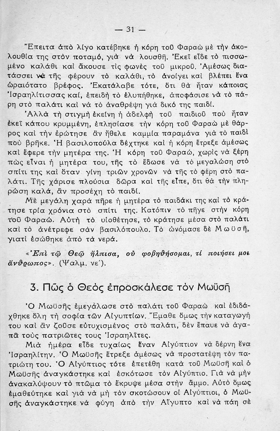 Σχολικό εγχειρίδιο Θρησκευτικών για την Γ΄ τάξη Δημοτικού. Περιέχει ιστορίες από την Παλαιά Διαθήκη. Ξεκινά με την δημιουργία του κόσμου και αναφέρει την ιστορία του εβραϊκού λαού.