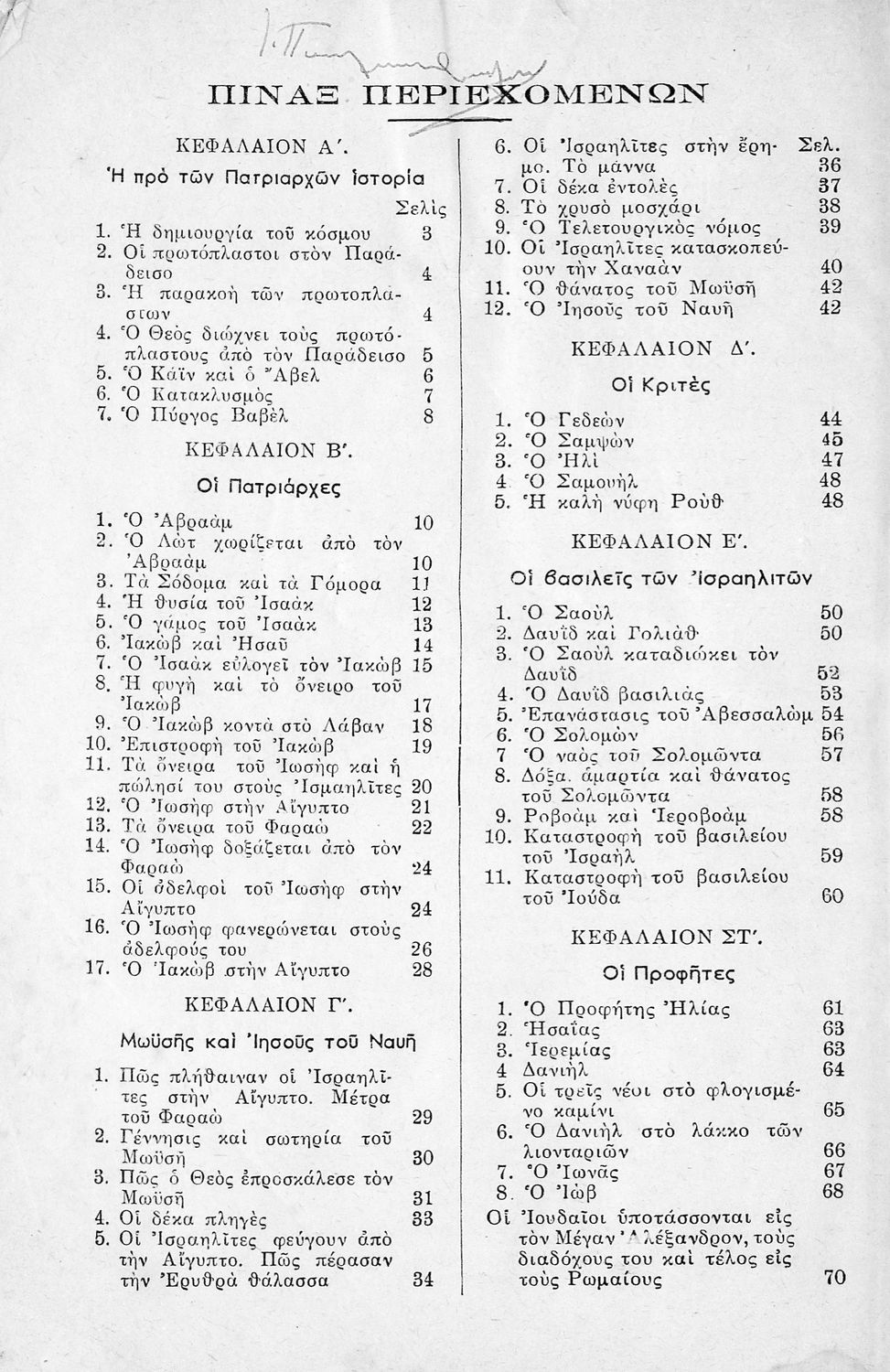 Σχολικό εγχειρίδιο Θρησκευτικών για την Γ΄ τάξη Δημοτικού. Περιέχει ιστορίες από την Παλαιά Διαθήκη. Ξεκινά με την δημιουργία του κόσμου και αναφέρει την ιστορία του εβραϊκού λαού.