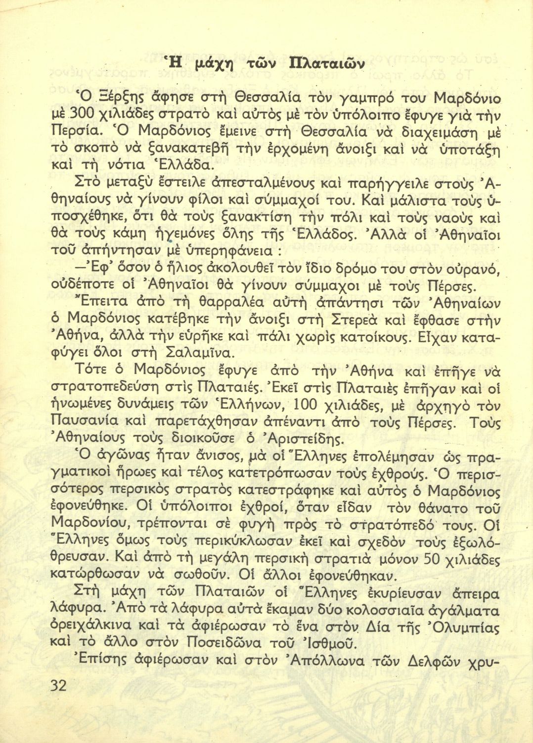 Κωδικός αναγνώρισης: 01-18310 Τίτλος: Αρχαία Ελλάδα Ιστορία για την Δ΄ τάξι του Δημοτικού Συγγραφέας: Δημ. Γιαννιάς, Δημ. Γιαννάκος Εικονογράφος: Σπ. Γιάνναρης, Αγην. Αστεριάδης Μέγεθος και υπόστρωμα: Μαθητικό βοήθημα, 20εκ., μαλακό εξώφυλλο, 71 σελίδες. Εξώφυλλο (έγχρωμο), σκίτσα (ασπρόμαυρα). |