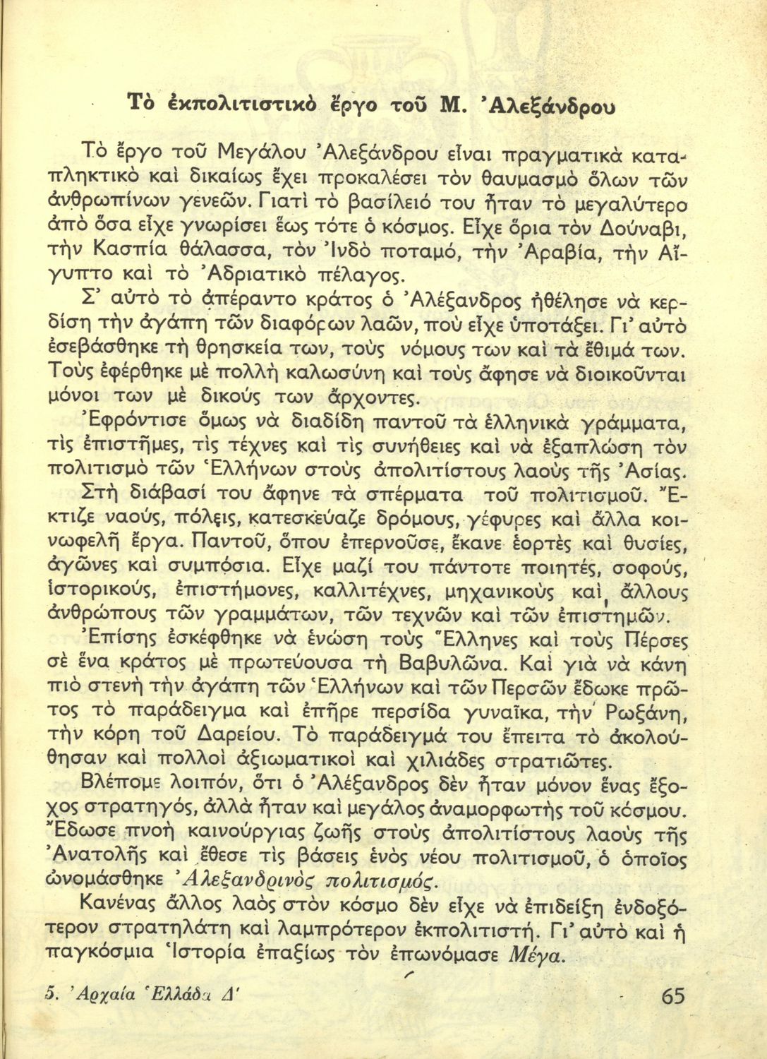 Μαθητικό βοήθημα Ιστορίας Δ' Δημοτικού που καλύπτει την περίοδο από τους προϊστορικούς χρόνους ως την κατάρρευση της Μακεδονικής Ηγεμονίας.