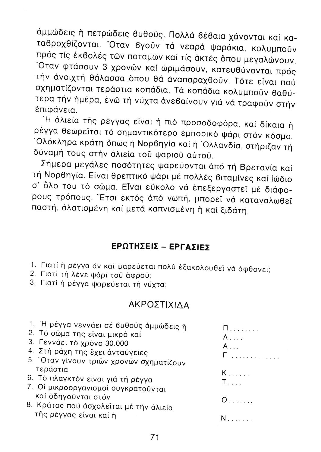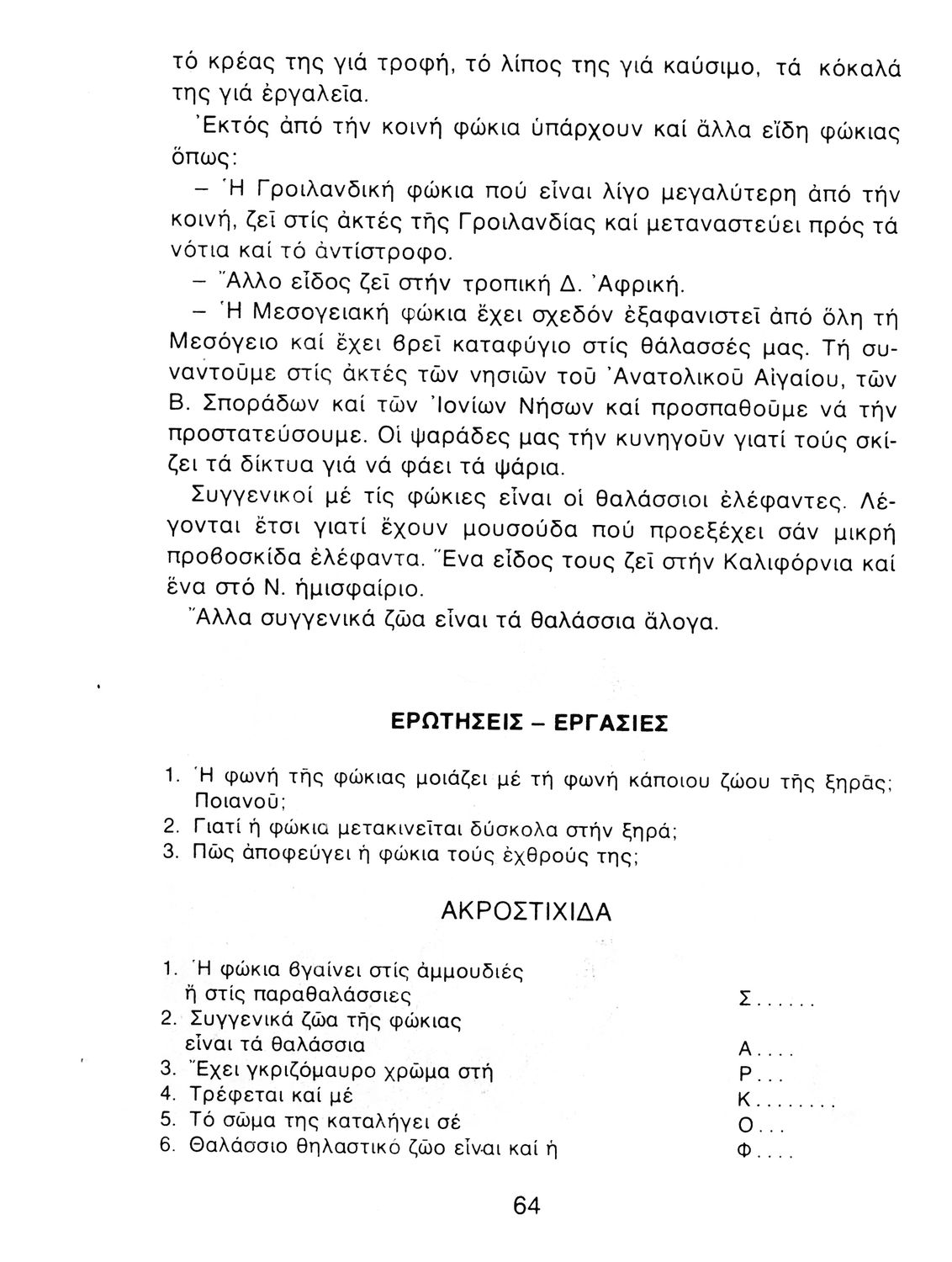 Σχολικό εγχειρίδιο Μελέτης Περιβάλλοντος για την Ε΄ Δημοτικού. Πρόκειται για βιβλίο που μελετά ζώα και φυτά διαφόρων χωρών και τη σχέση τους με τον άνθρωπο. Στο τέλος του βιβλίου γίνεται αναφορά στα πετρώματα και τα ορυκτά.