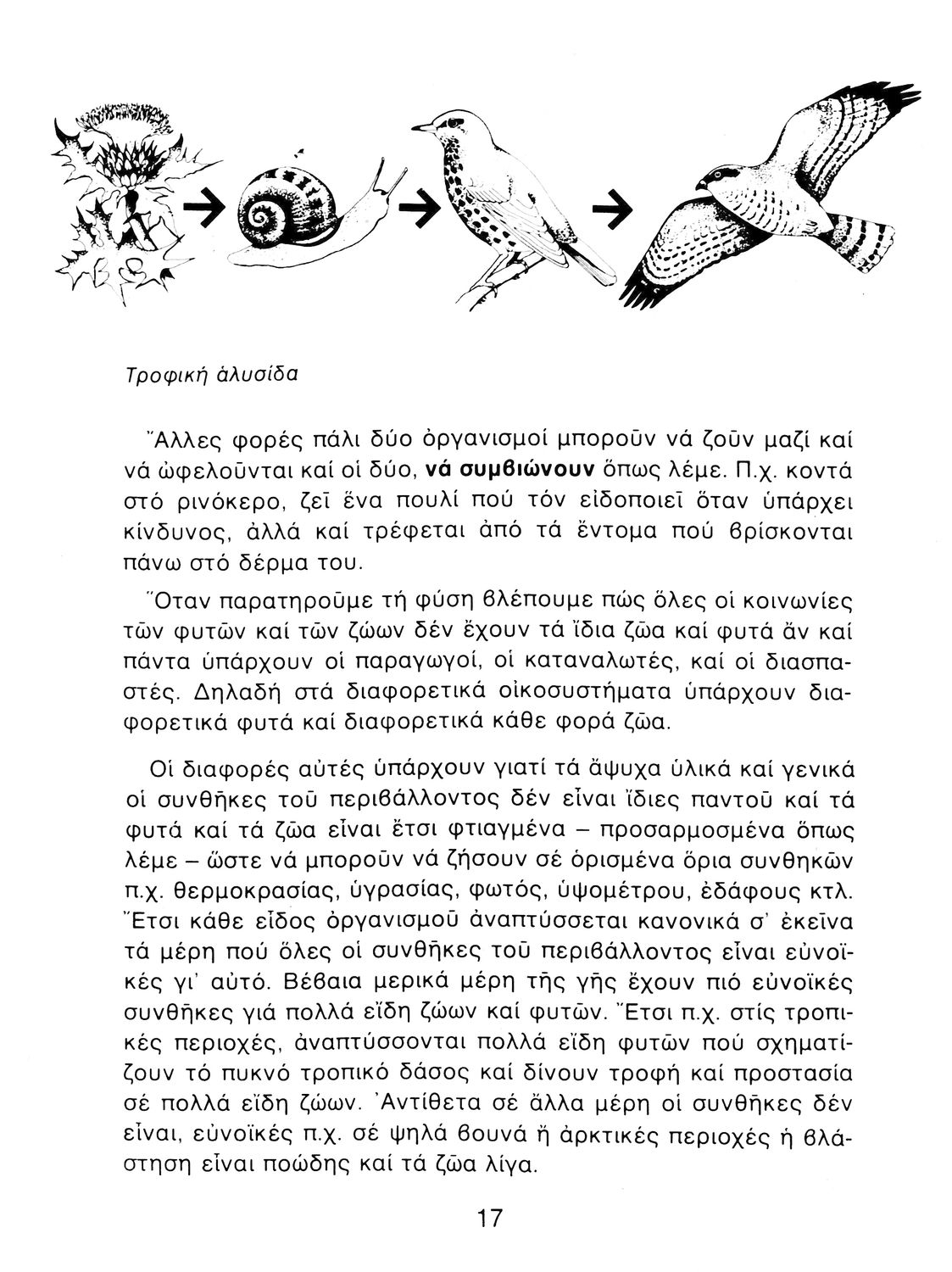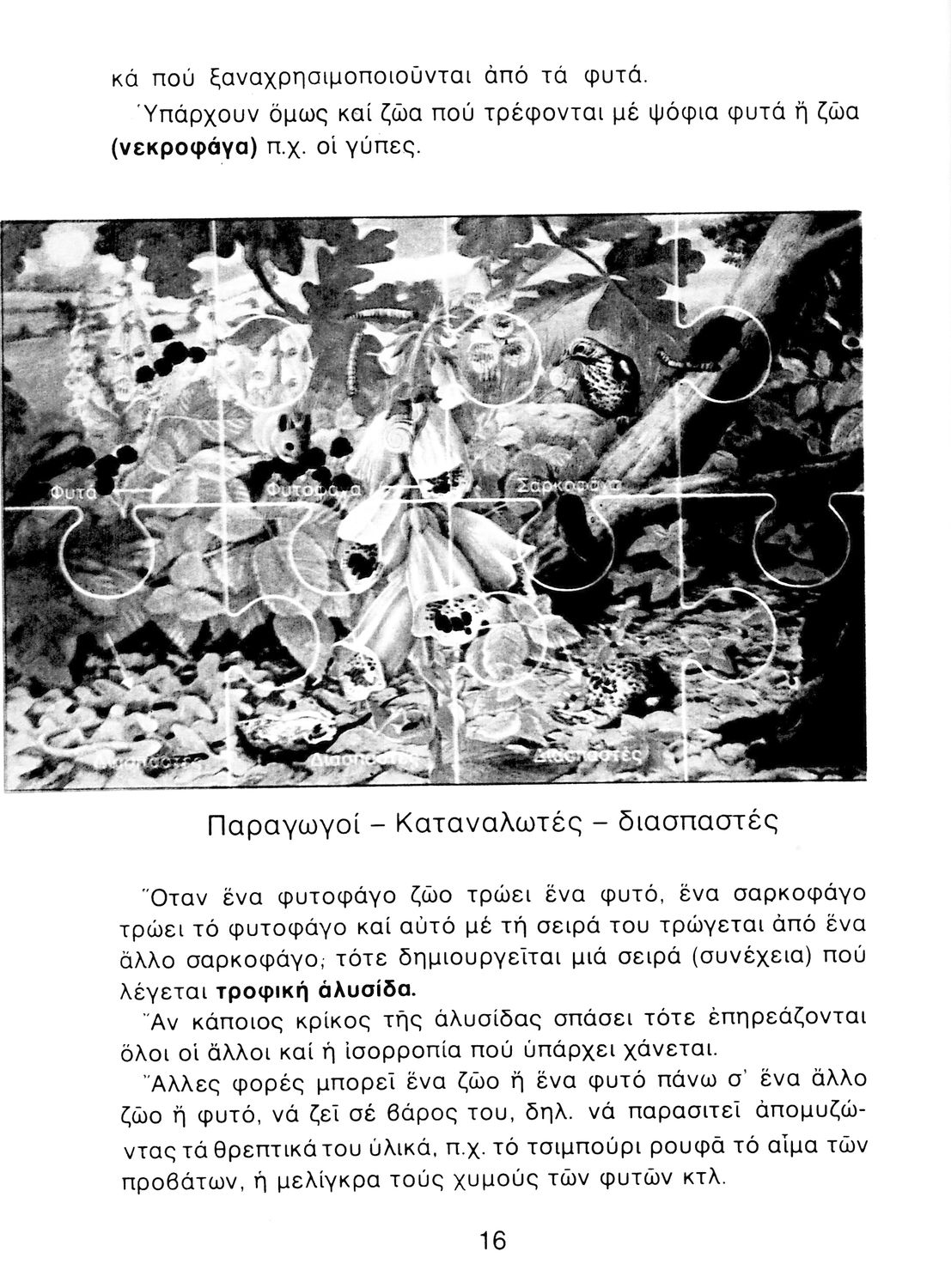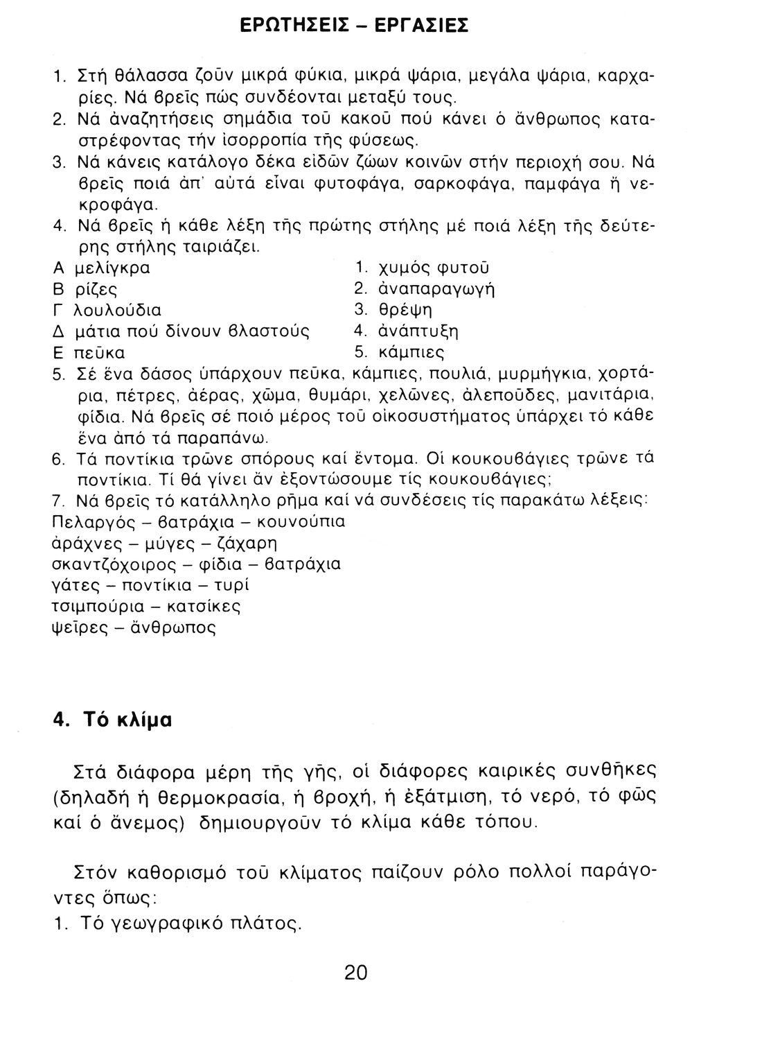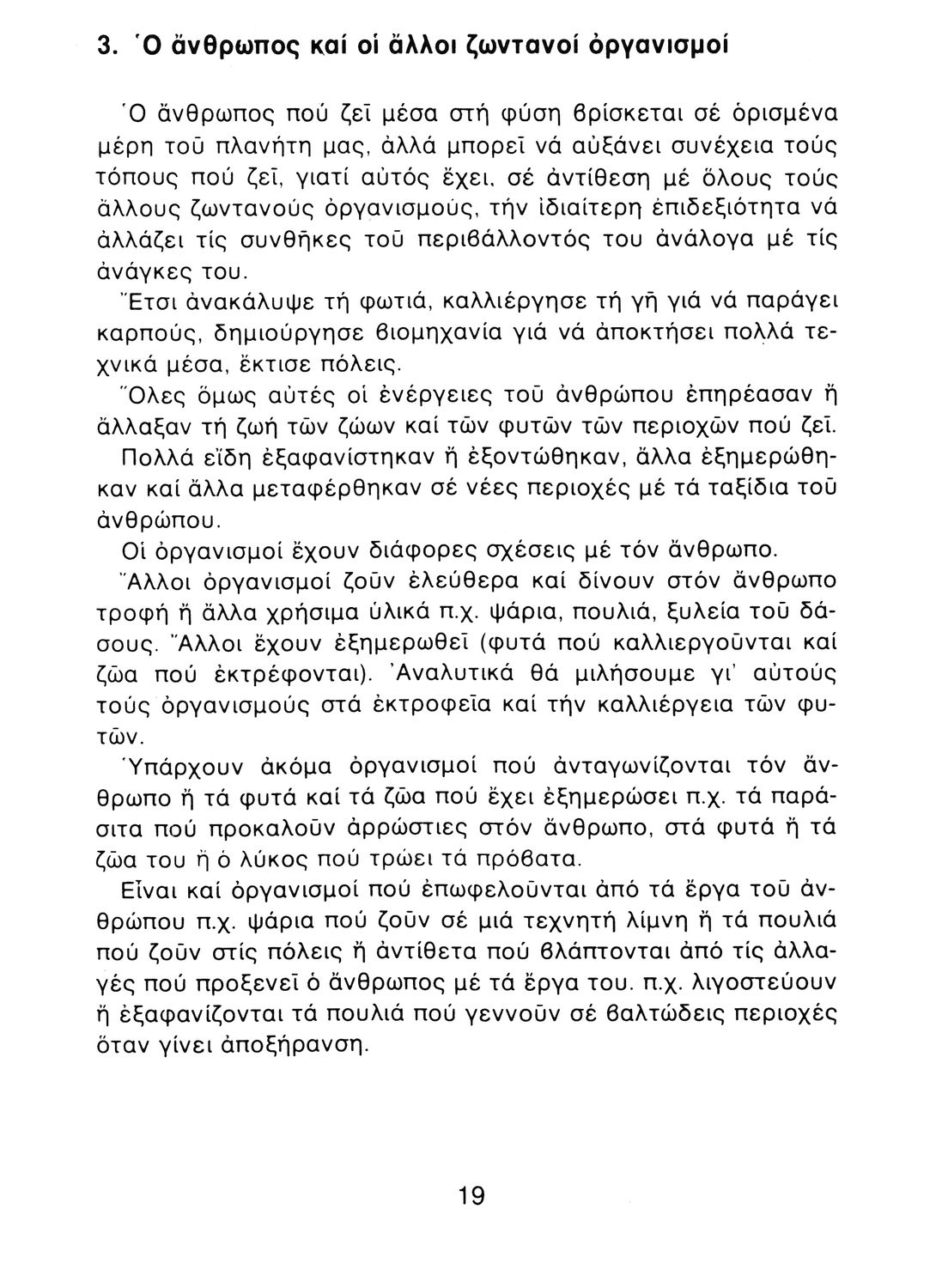 Σχολικό εγχειρίδιο Μελέτης Περιβάλλοντος για την Ε΄ Δημοτικού. Πρόκειται για βιβλίο που μελετά ζώα και φυτά διαφόρων χωρών και τη σχέση τους με τον άνθρωπο. Στο τέλος του βιβλίου γίνεται αναφορά στα πετρώματα και τα ορυκτά.