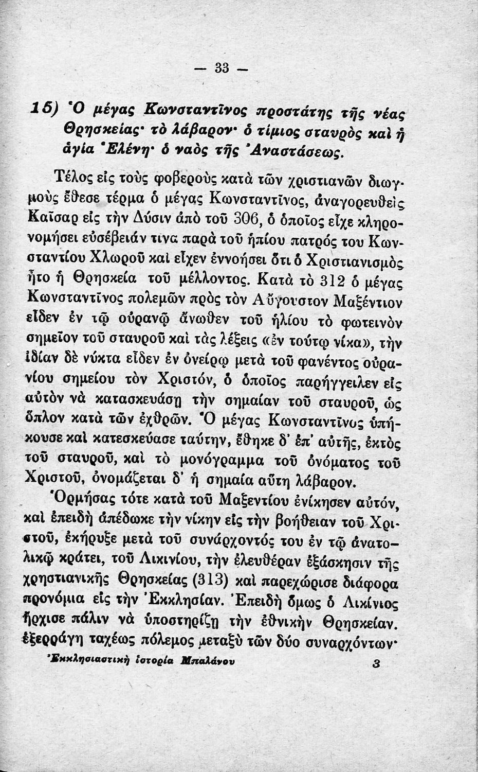 Σχολικό εγχειρίδιο Θρησκευτικών. Το βιβλίο συντάχθηκε σύμφωνα με το πρόγραμμα της 1ης Σεπτεμβρίου 1921 του Υπουργείου Εκκλησιαστικών και Δημόσιας Εκπαιδεύσεως. Περιέχει την ιστορία της Εκκλησίας από την ίδρυσή της μέχρι την δημιουργία της Εκκλησίας της Ελλάδας.