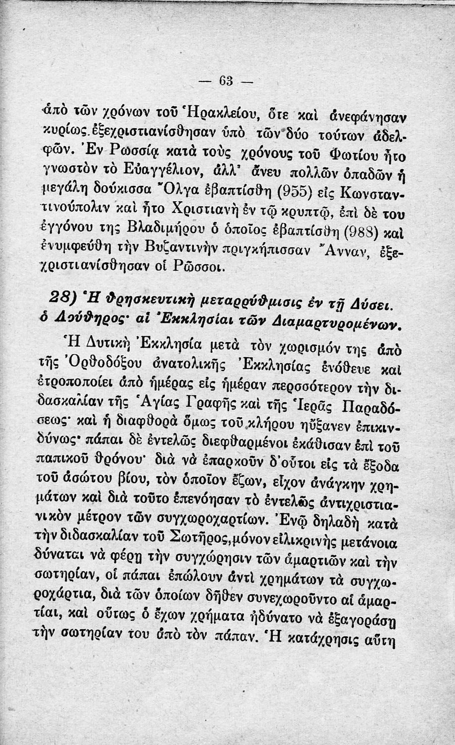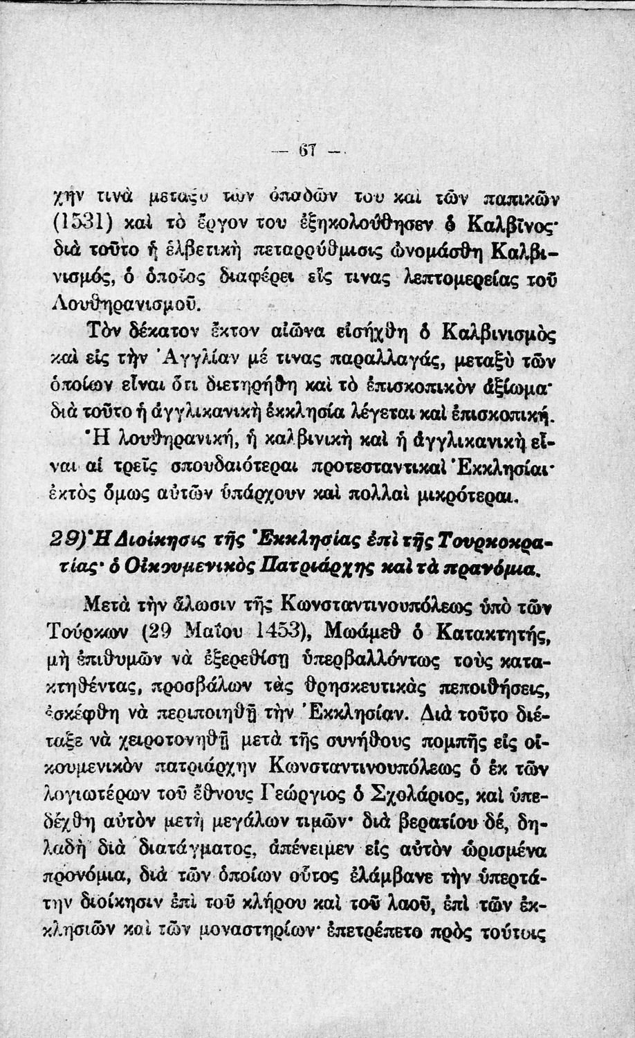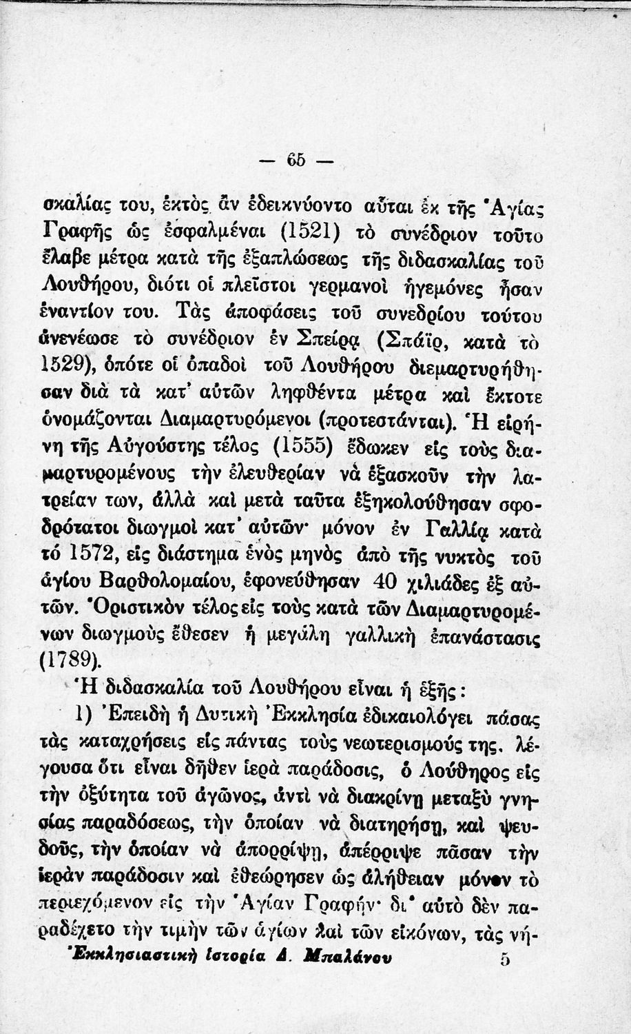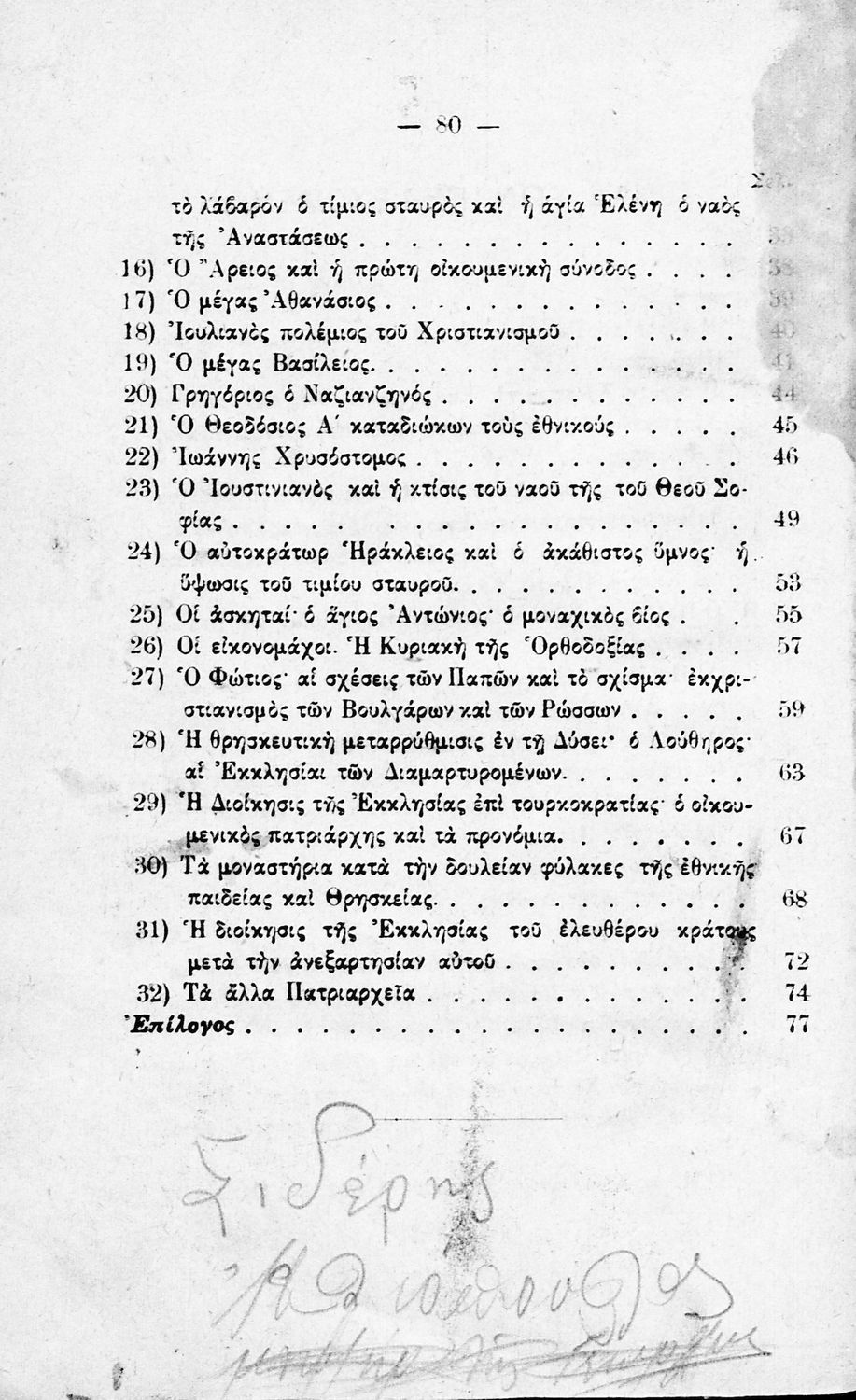 Σχολικό εγχειρίδιο Θρησκευτικών. Το βιβλίο συντάχθηκε σύμφωνα με το πρόγραμμα της 1ης Σεπτεμβρίου 1921 του Υπουργείου Εκκλησιαστικών και Δημόσιας Εκπαιδεύσεως. Περιέχει την ιστορία της Εκκλησίας από την ίδρυσή της μέχρι την δημιουργία της Εκκλησίας της Ελλάδας.