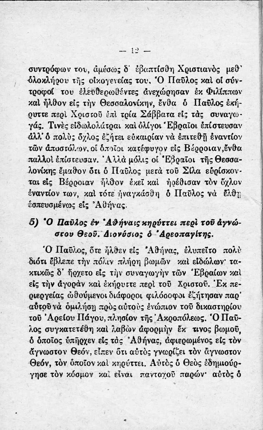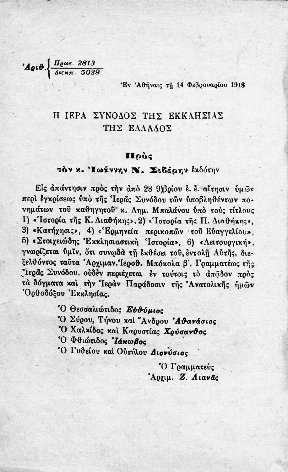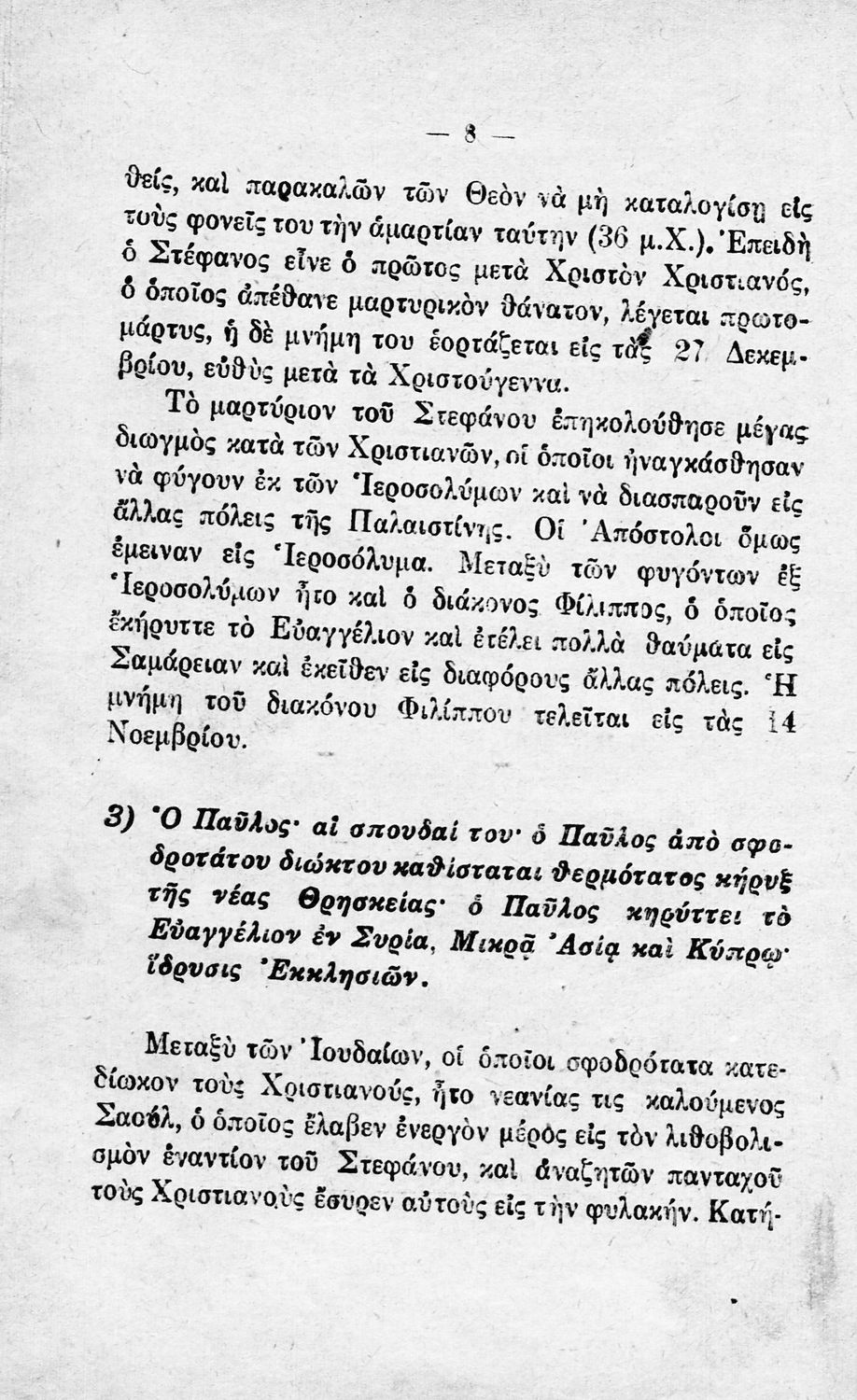 Σχολικό εγχειρίδιο Θρησκευτικών. Το βιβλίο συντάχθηκε σύμφωνα με το πρόγραμμα της 1ης Σεπτεμβρίου 1921 του Υπουργείου Εκκλησιαστικών και Δημόσιας Εκπαιδεύσεως. Περιέχει την ιστορία της Εκκλησίας από την ίδρυσή της μέχρι την δημιουργία της Εκκλησίας της Ελλάδας.