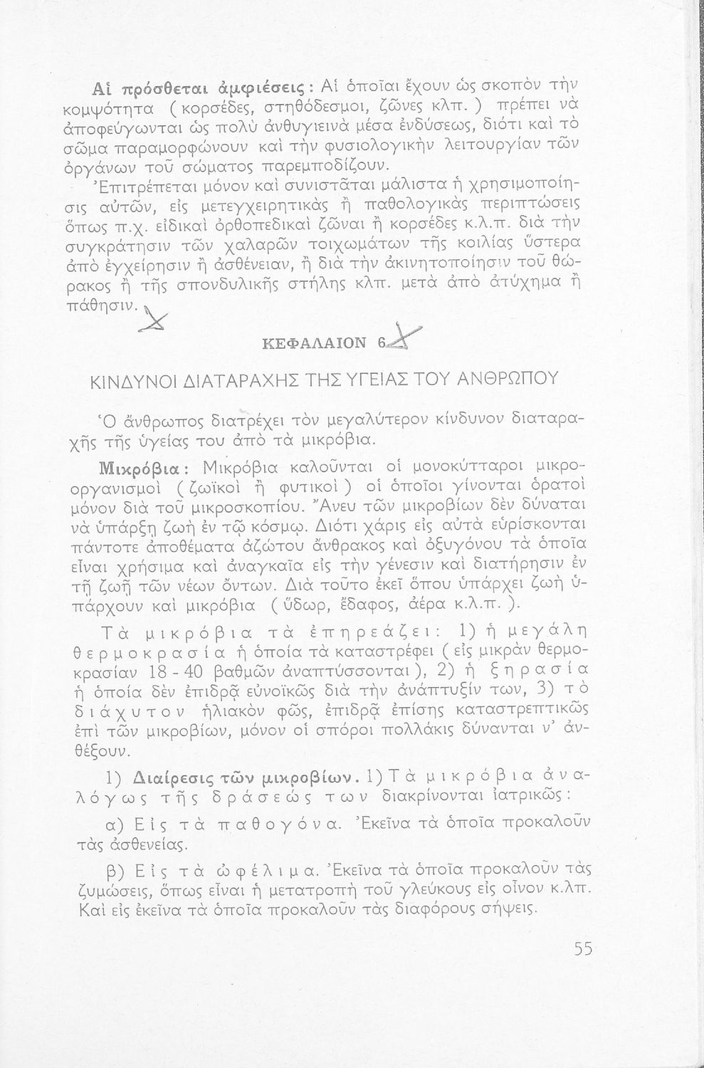 Σχολικό εγχειρίδιο Υγιεινής για την Ε΄ Γυμνασίου που εστιάζει στην περιβαντολλογική διάσταση της υγιεινής. Φέρει το σύμβολο της δικτατορίας.