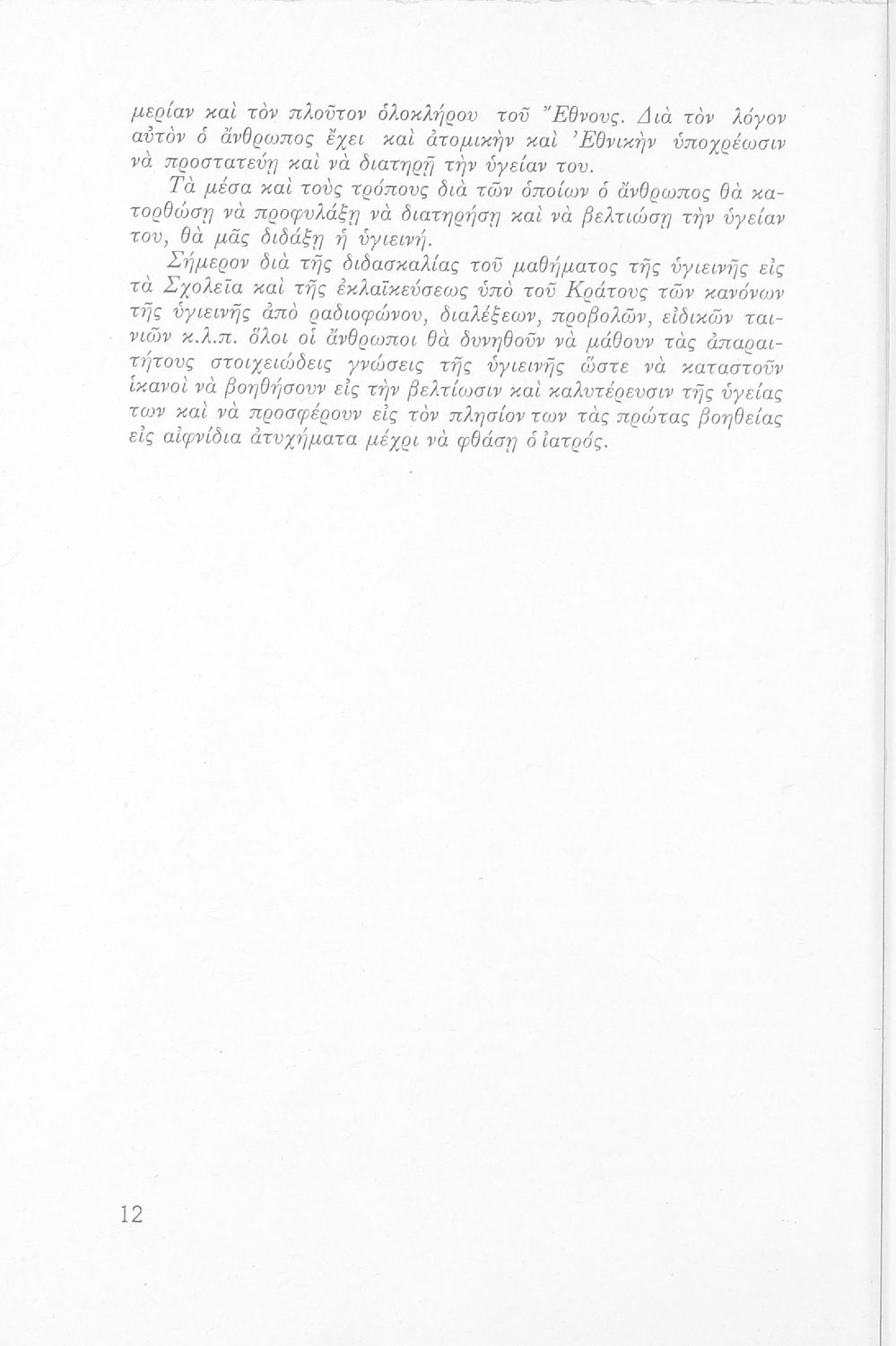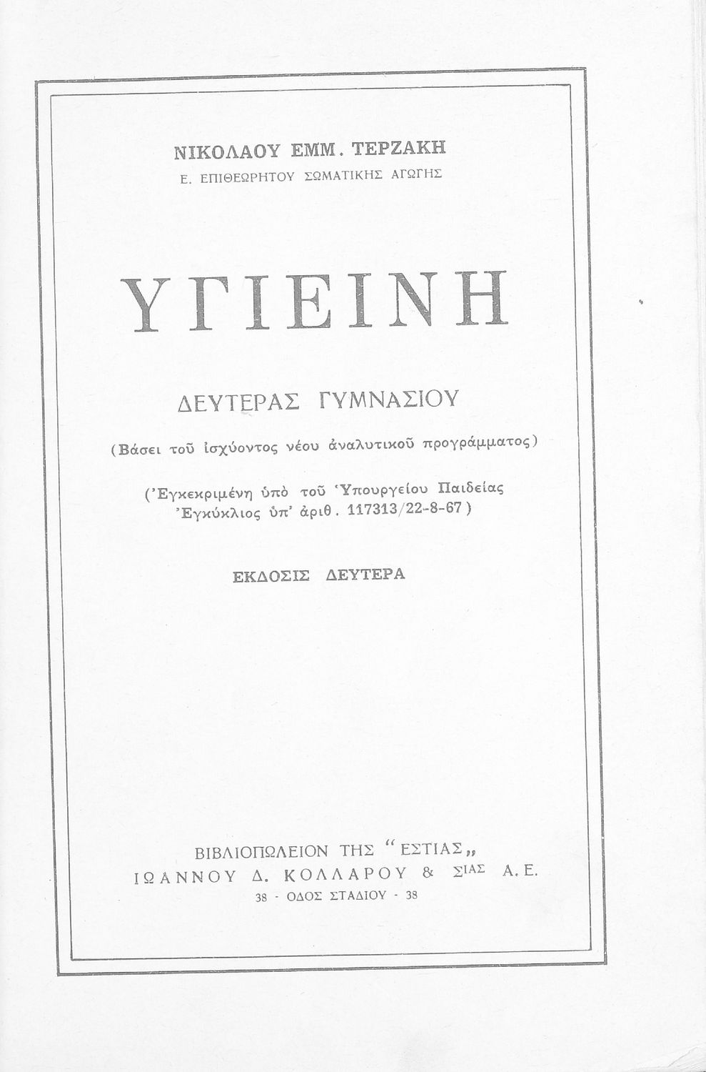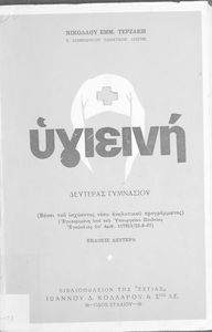 Σχολικό εγχειρίδιο Υγιεινής για την Ε΄ Γυμνασίου που εστιάζει στην περιβαντολλογική διάσταση της υγιεινής. Φέρει το σύμβολο της δικτατορίας.
