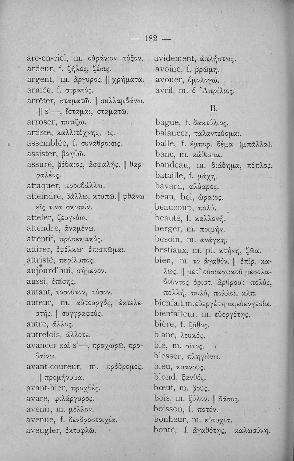 Σχολικό εγχειρίδιο Γαλλικών για τις Β’ και Γ’ Ελληνικού και Αστικού Σχολείου και Παρθεναγωγείου που περιλαμβάνει ασκήσεις προφοράς, συνομιλίας και γραμματικής, και λεξιλόγιο.