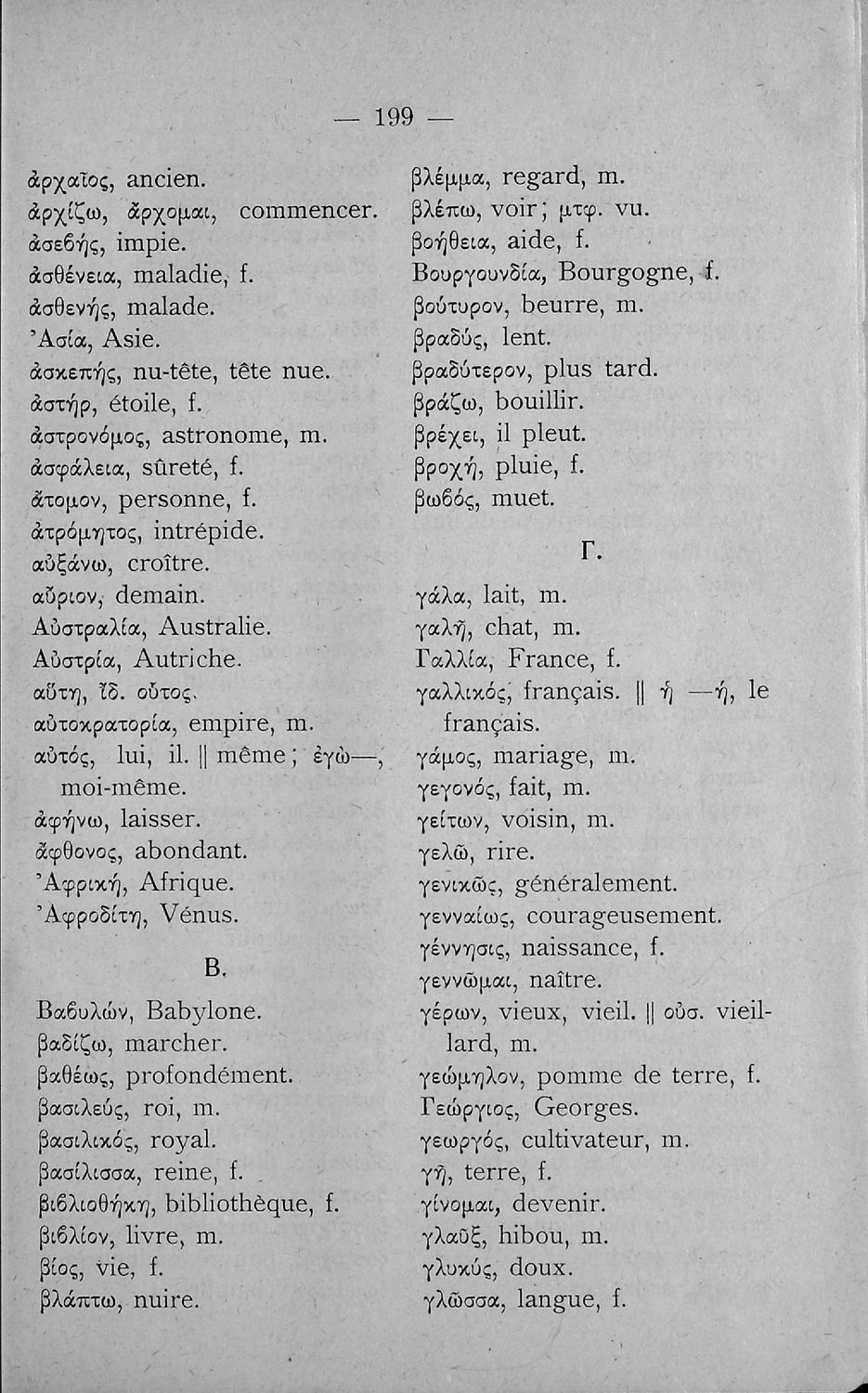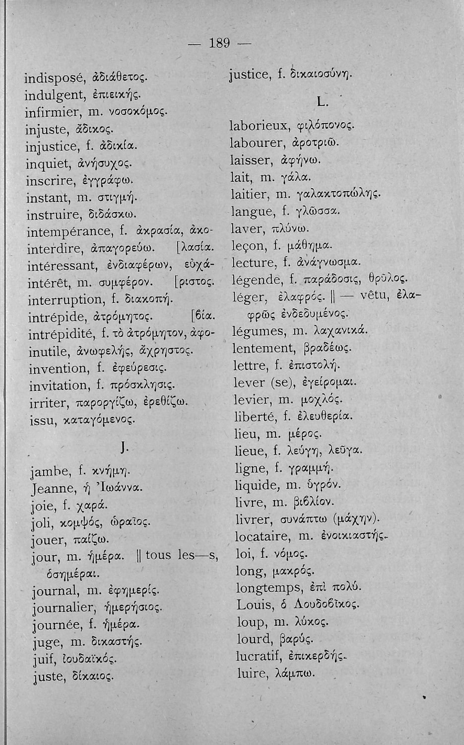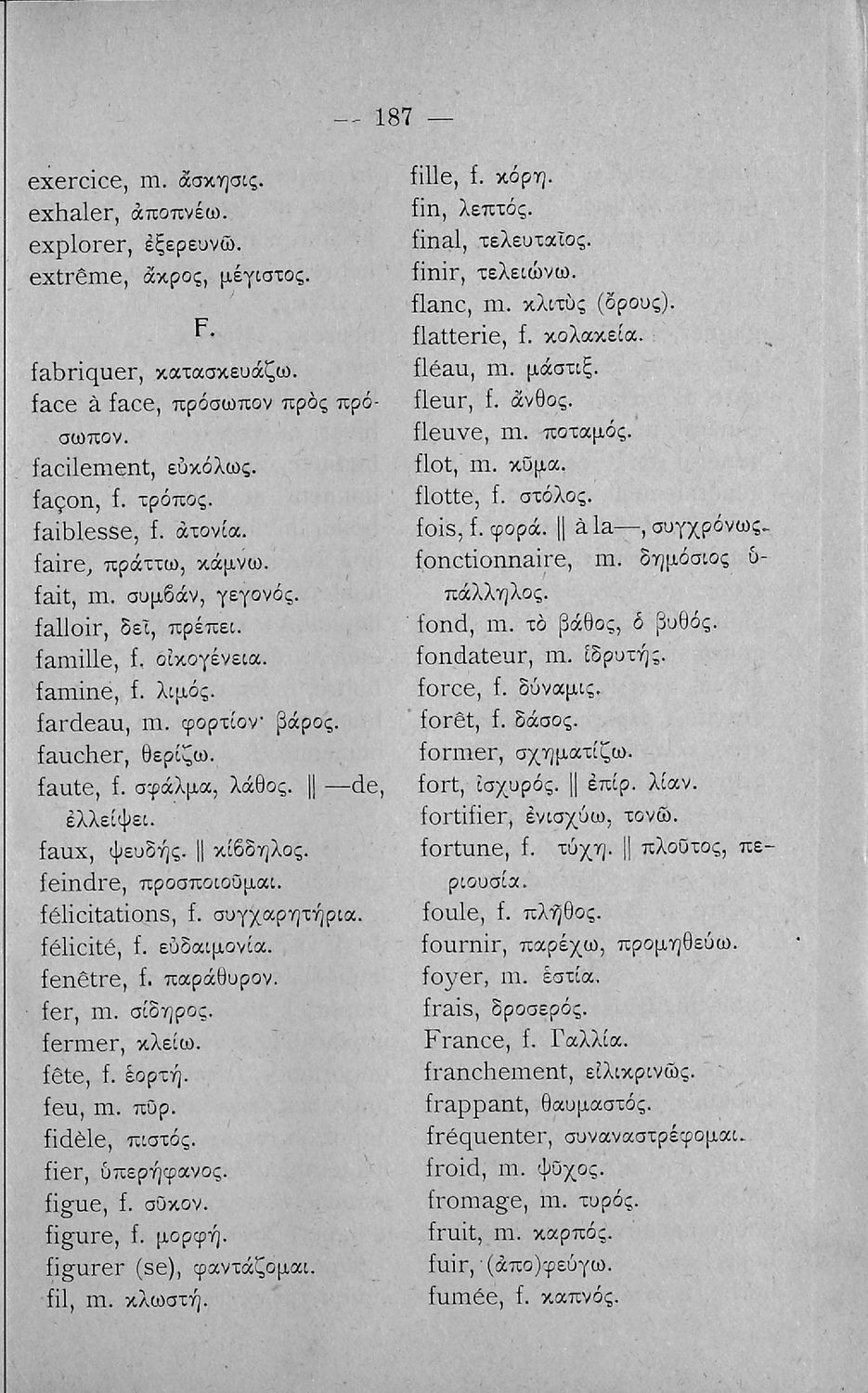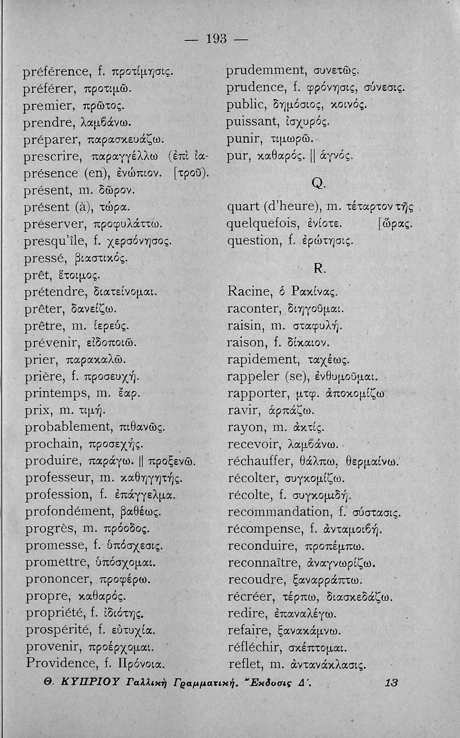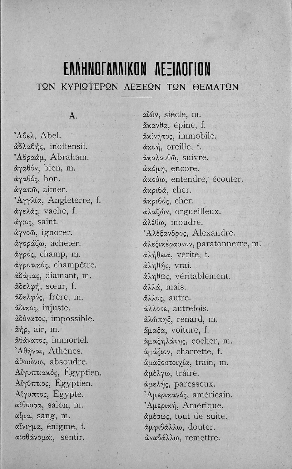 Γραμματική της Γαλλικής γλώσσας για τα Τετρατάξια Γυμνάσια, τη Γ΄ τάξη των Αστικών Σχολείων των Θηλέων και τα Διδασκαλεία της Δημοτικής Εκπαίδευσης που περιλαμβάνει θεωρία, ασκήσεις και λεξιλόγιο.