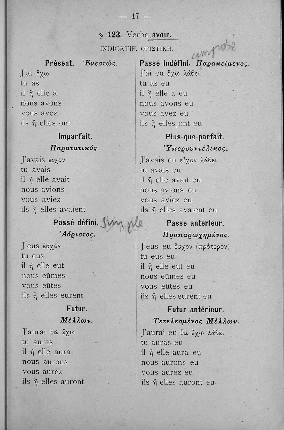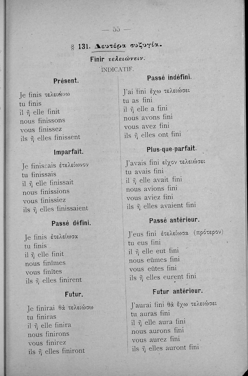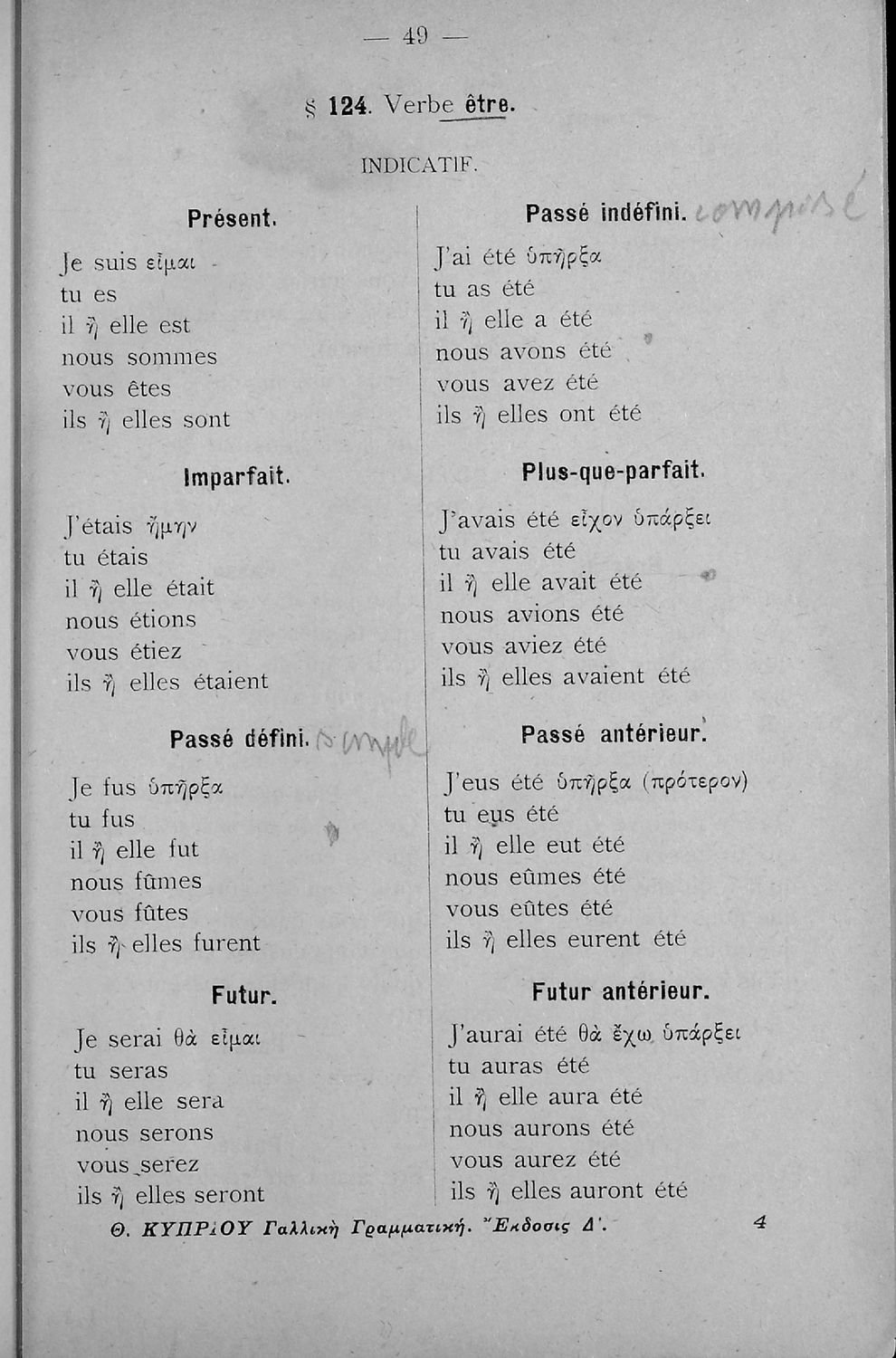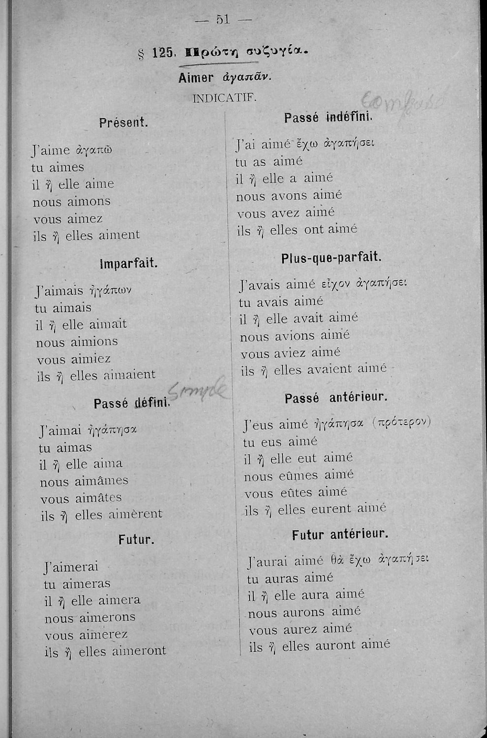 Γραμματική της Γαλλικής γλώσσας για τα Τετρατάξια Γυμνάσια, τη Γ΄ τάξη των Αστικών Σχολείων των Θηλέων και τα Διδασκαλεία της Δημοτικής Εκπαίδευσης που περιλαμβάνει θεωρία, ασκήσεις και λεξιλόγιο.