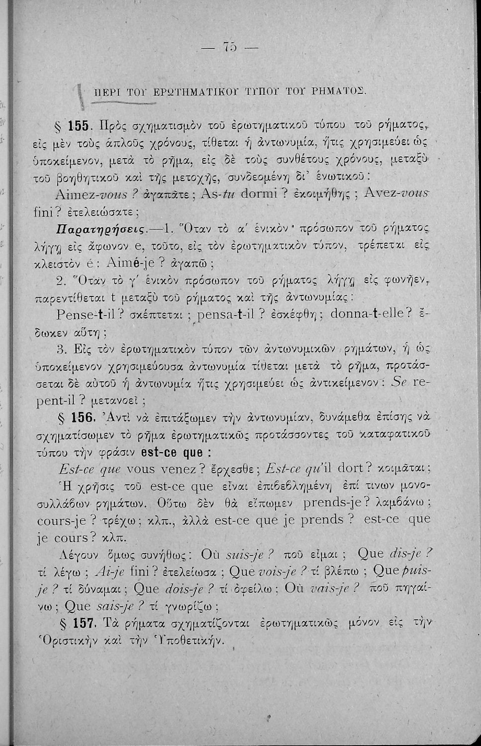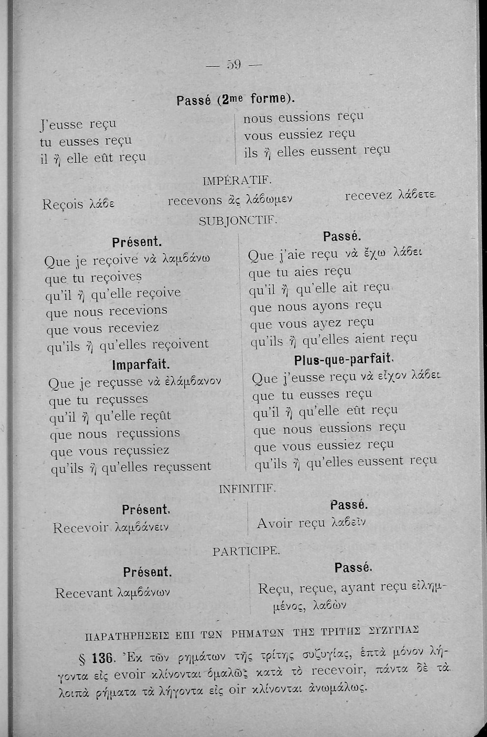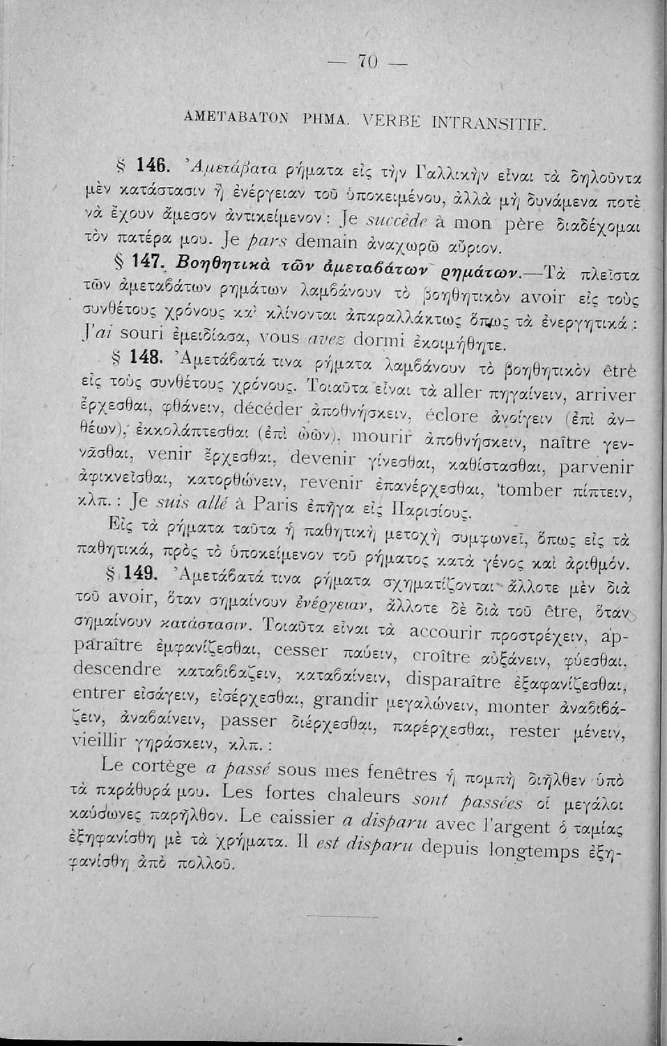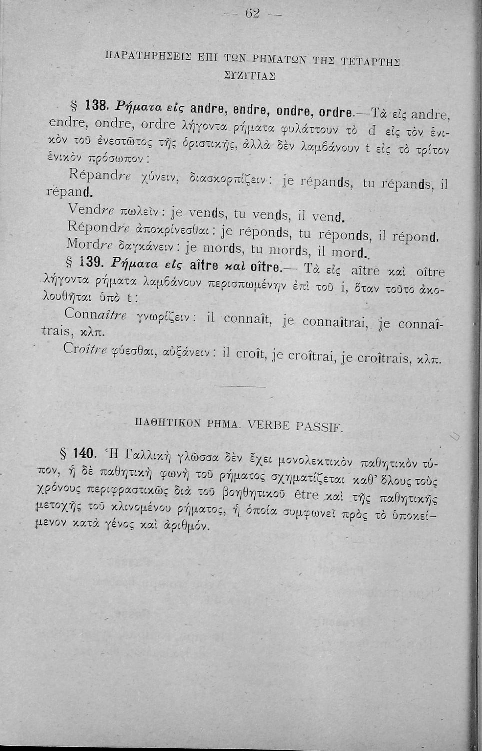 Γραμματική της Γαλλικής γλώσσας για τα Τετρατάξια Γυμνάσια, τη Γ΄ τάξη των Αστικών Σχολείων των Θηλέων και τα Διδασκαλεία της Δημοτικής Εκπαίδευσης που περιλαμβάνει θεωρία, ασκήσεις και λεξιλόγιο.