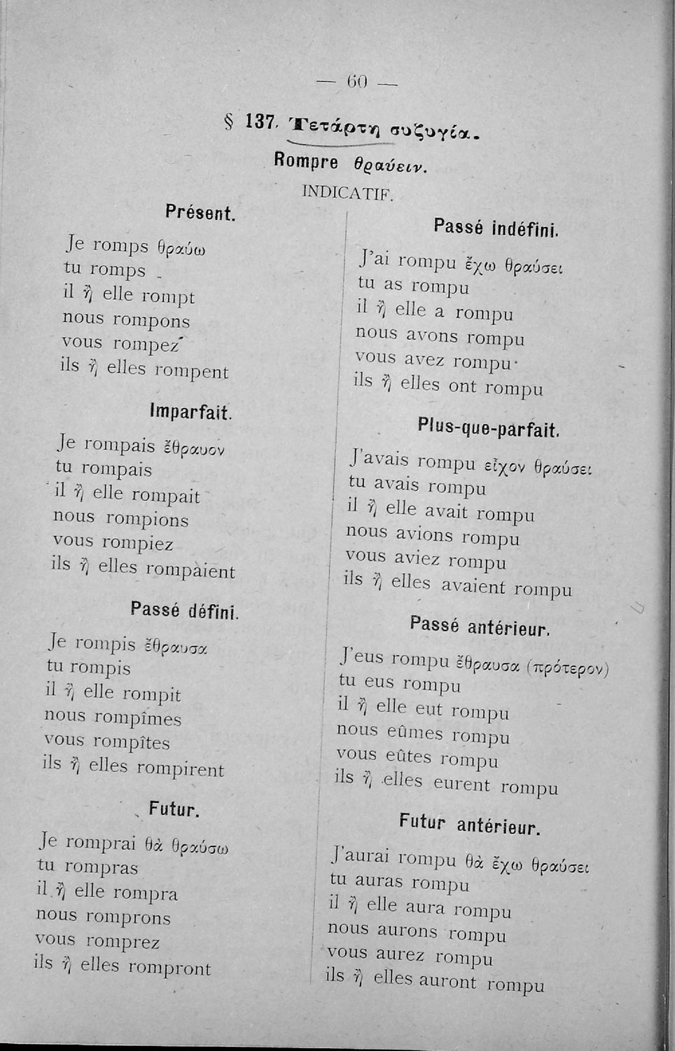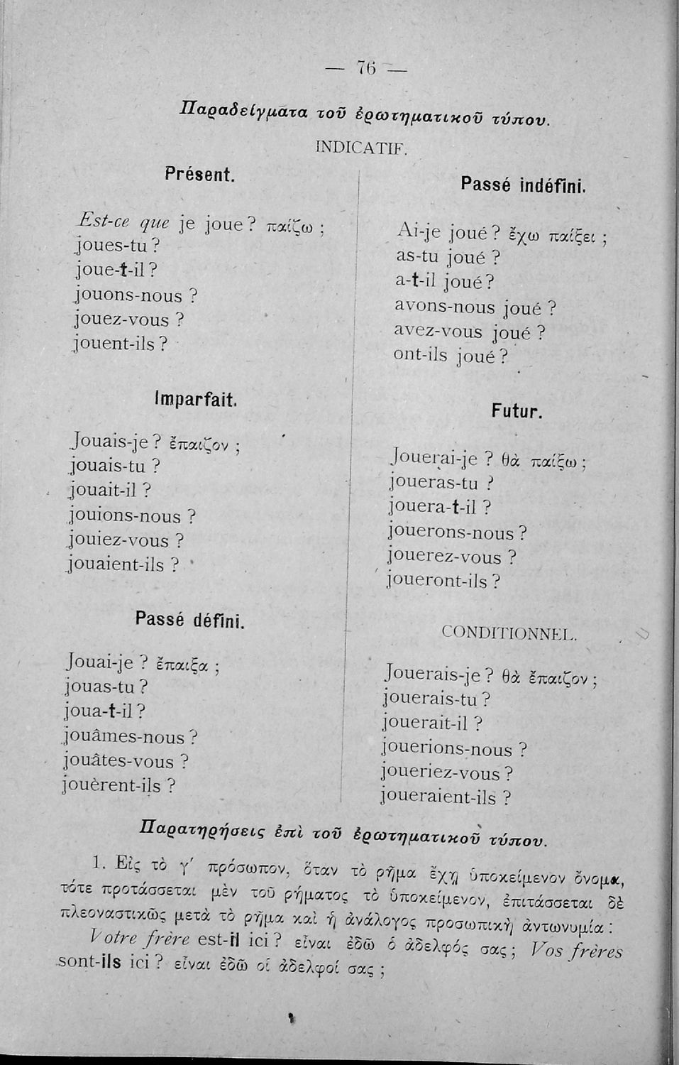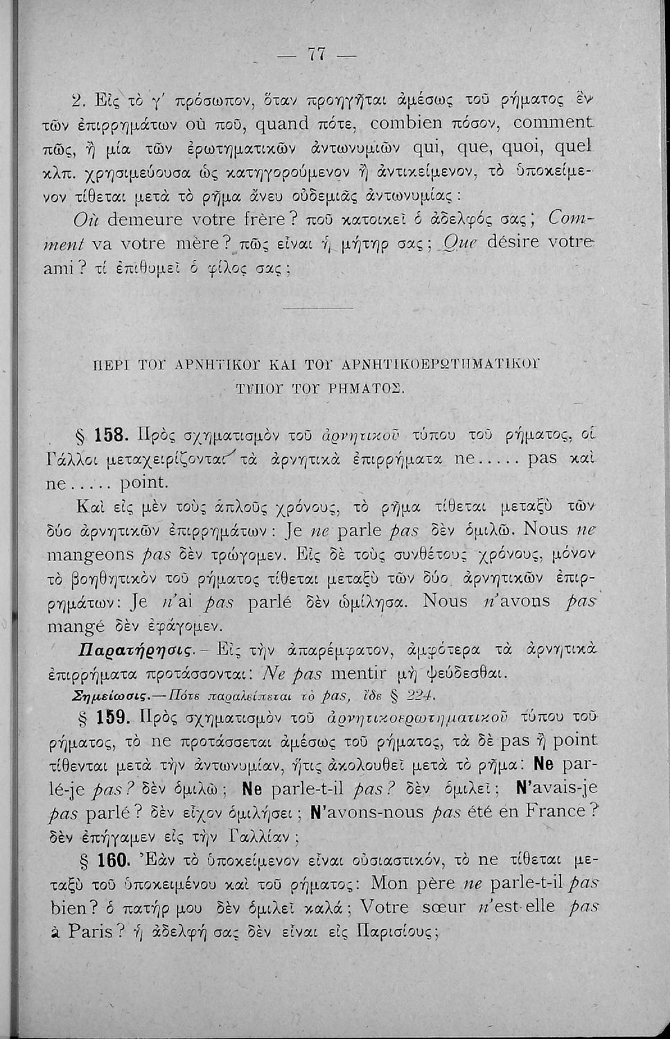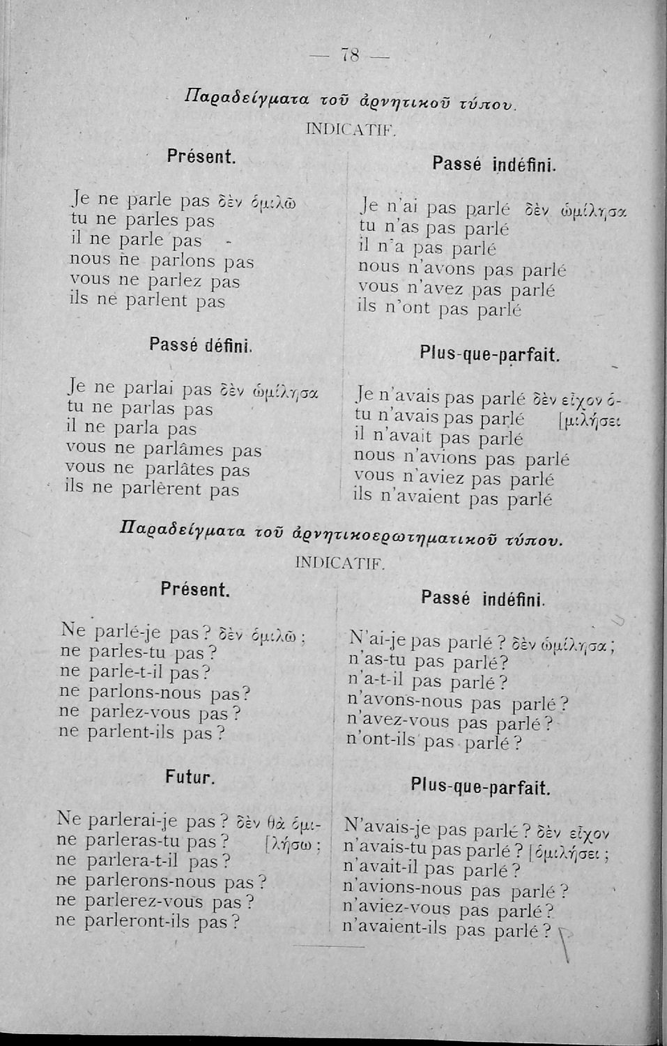 Γραμματική της Γαλλικής γλώσσας για τα Τετρατάξια Γυμνάσια, τη Γ΄ τάξη των Αστικών Σχολείων των Θηλέων και τα Διδασκαλεία της Δημοτικής Εκπαίδευσης που περιλαμβάνει θεωρία, ασκήσεις και λεξιλόγιο.