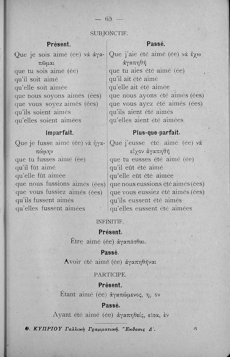 Γραμματική της γαλλικής γλώσσης δια τας τέσσαρας τάξεις των Τετραταξίων Γυμνασίων, τας αντιστοίχους τάξεις των λοιπών σχολείων της Μ. Εκπαιδεύσεως, την Γ΄ τάξιν των Αστικών Σχολείων των Θηλέων και τα Διδασκαλεία της Δημοτικής Εκπαιδεύσεως