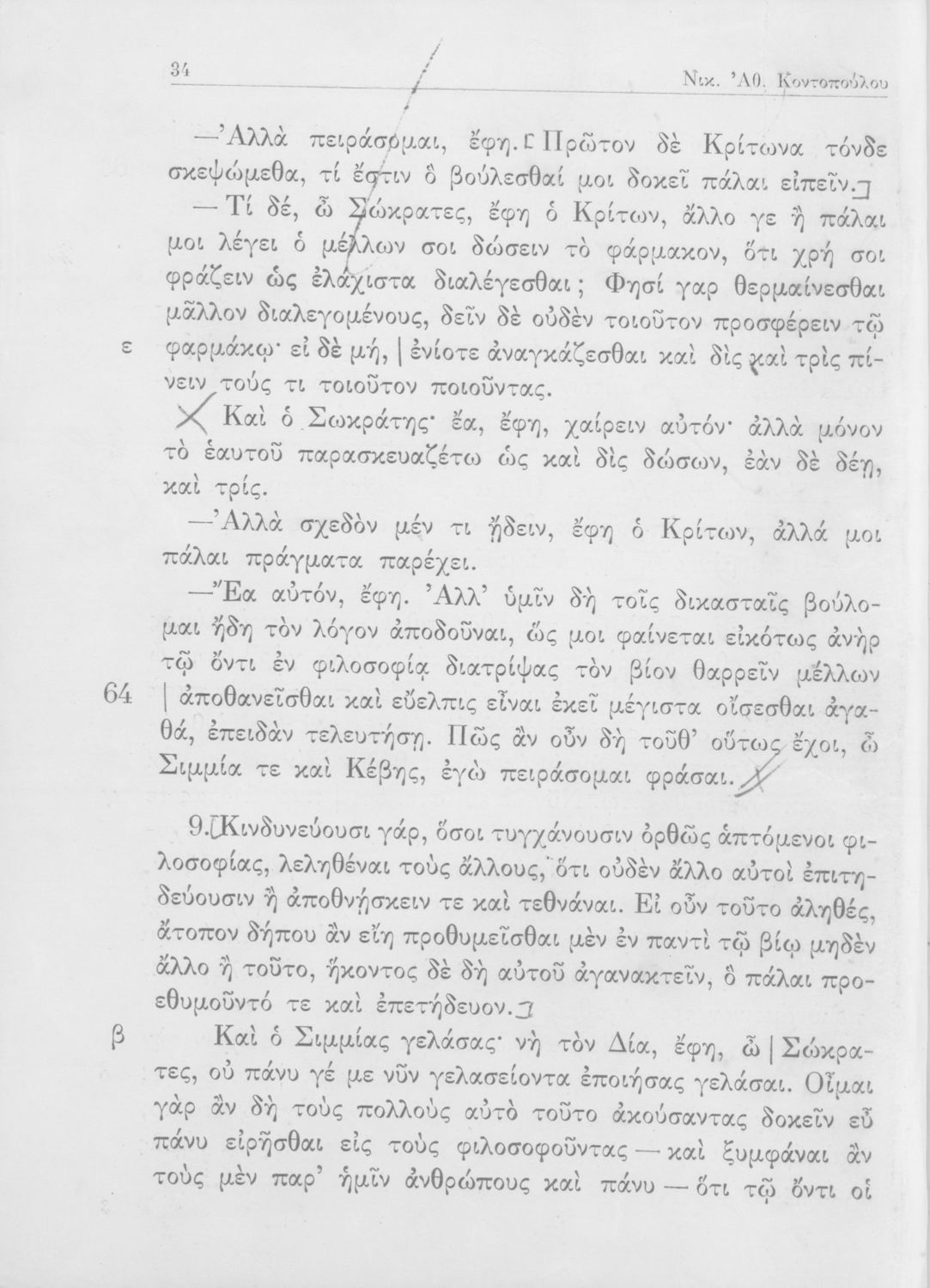 Πλάτων, Νικ. Αθ. Κοντόπουλος (σχόλια)