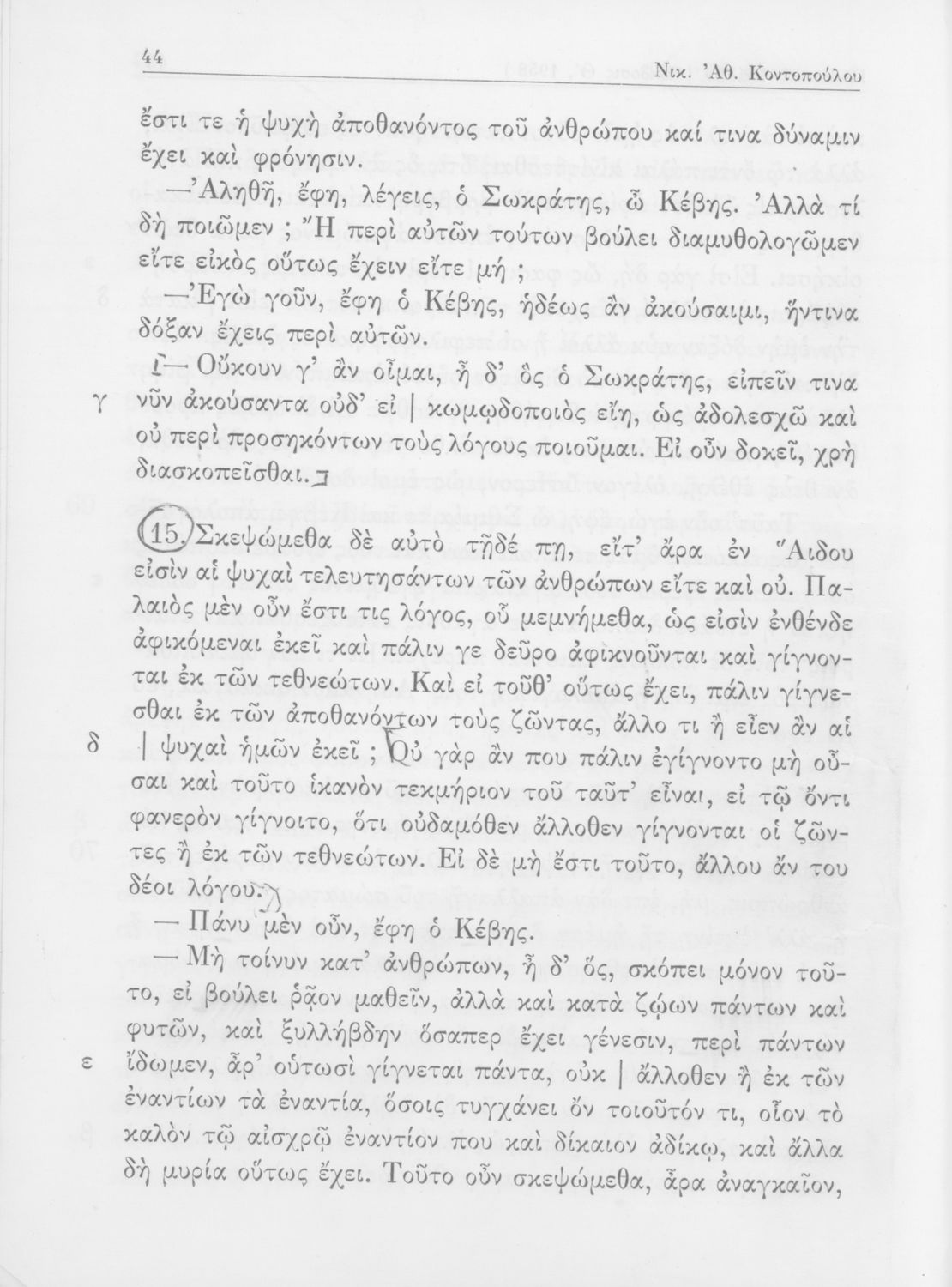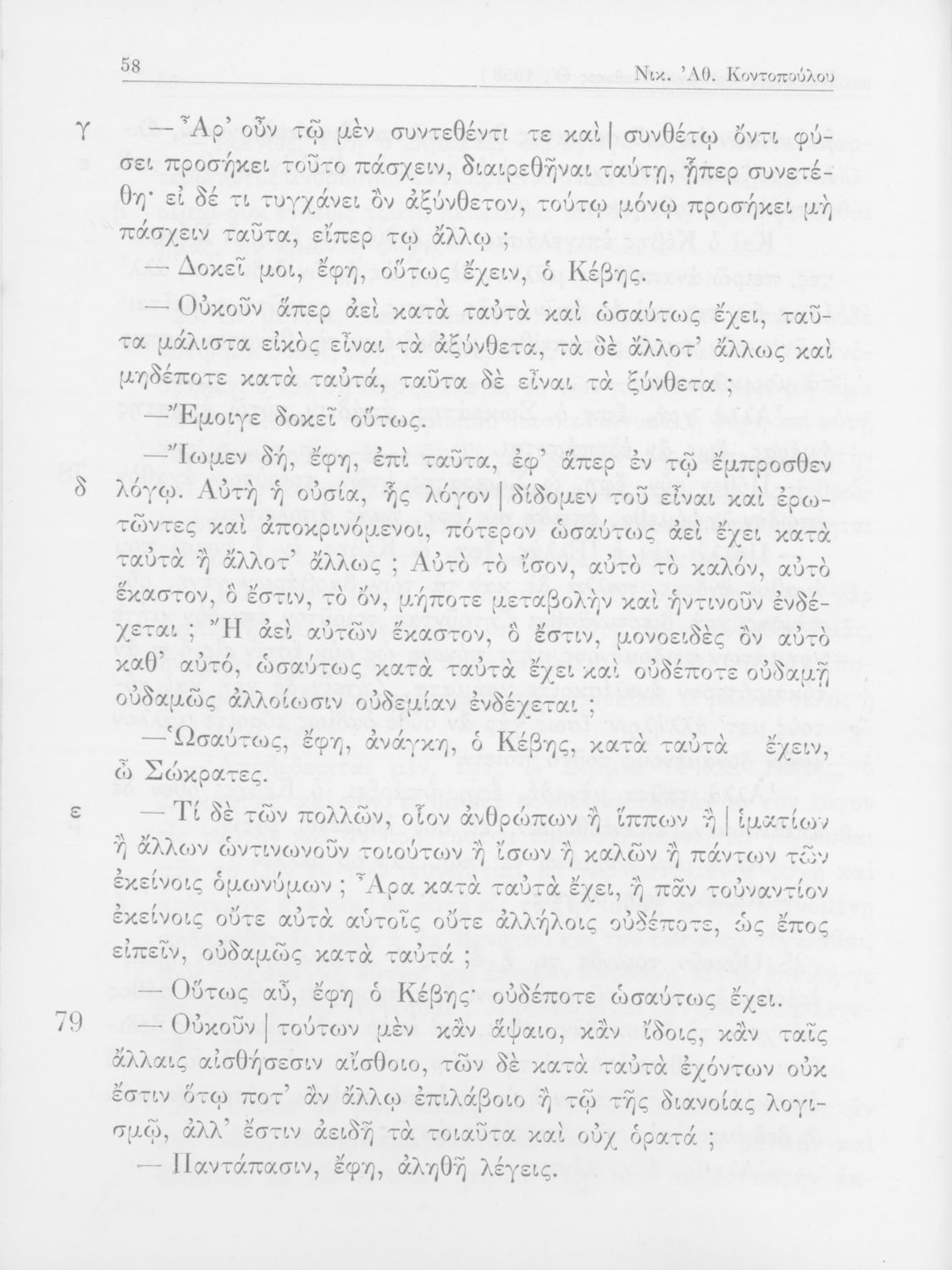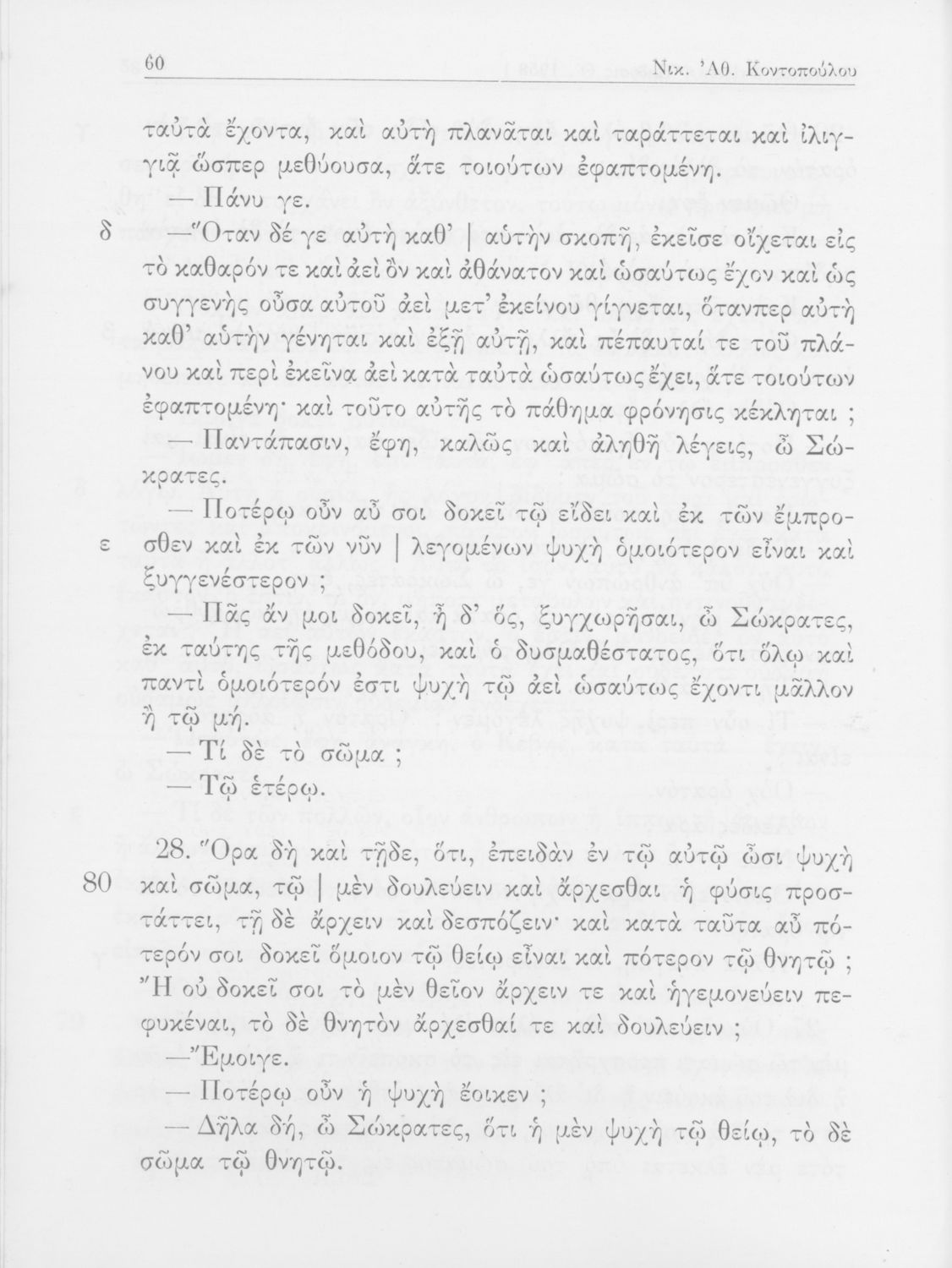 Πλάτων, Νικ. Αθ. Κοντόπουλος (σχόλια)