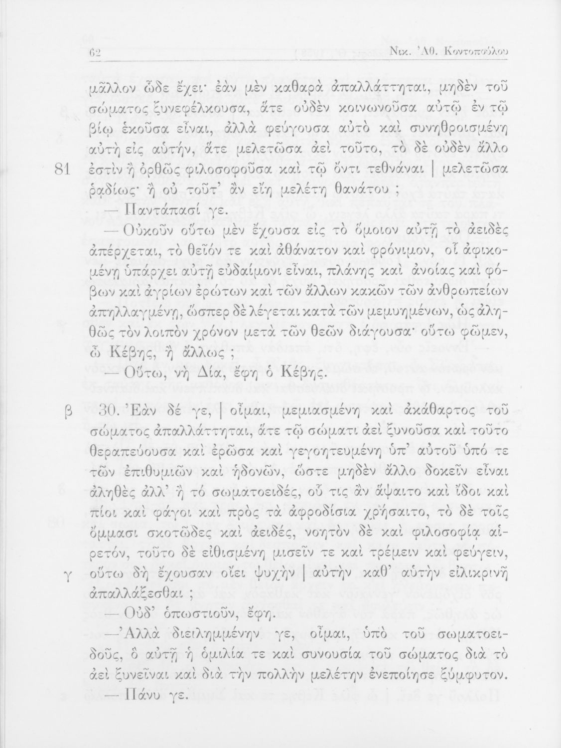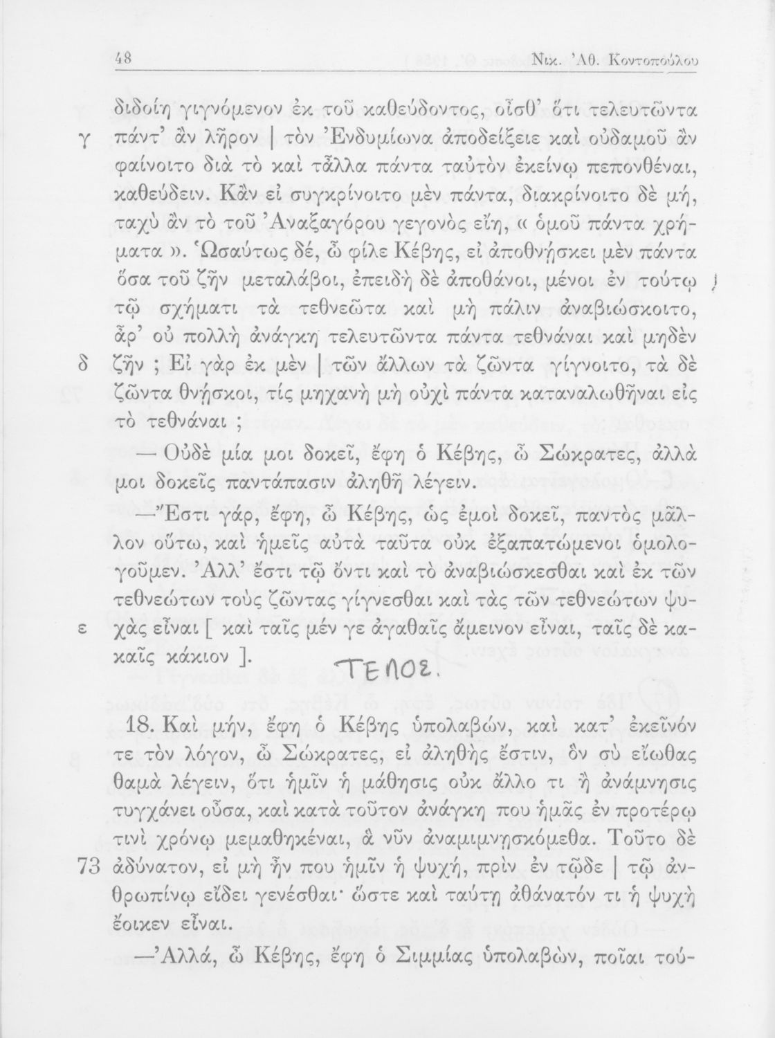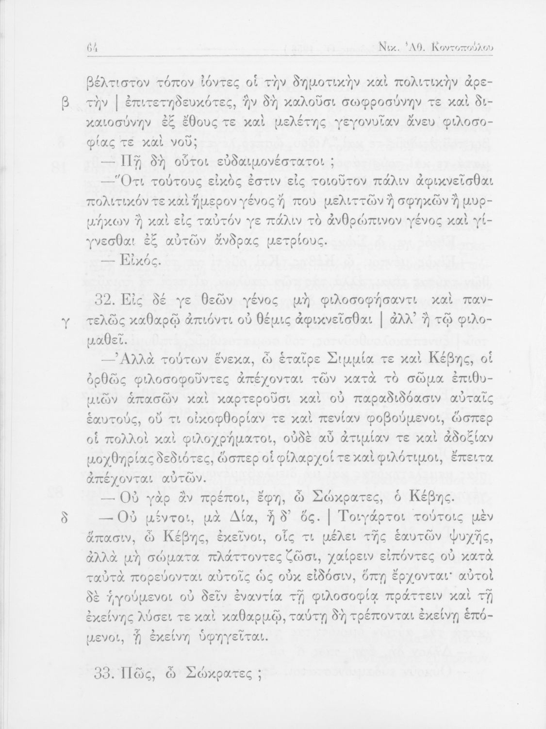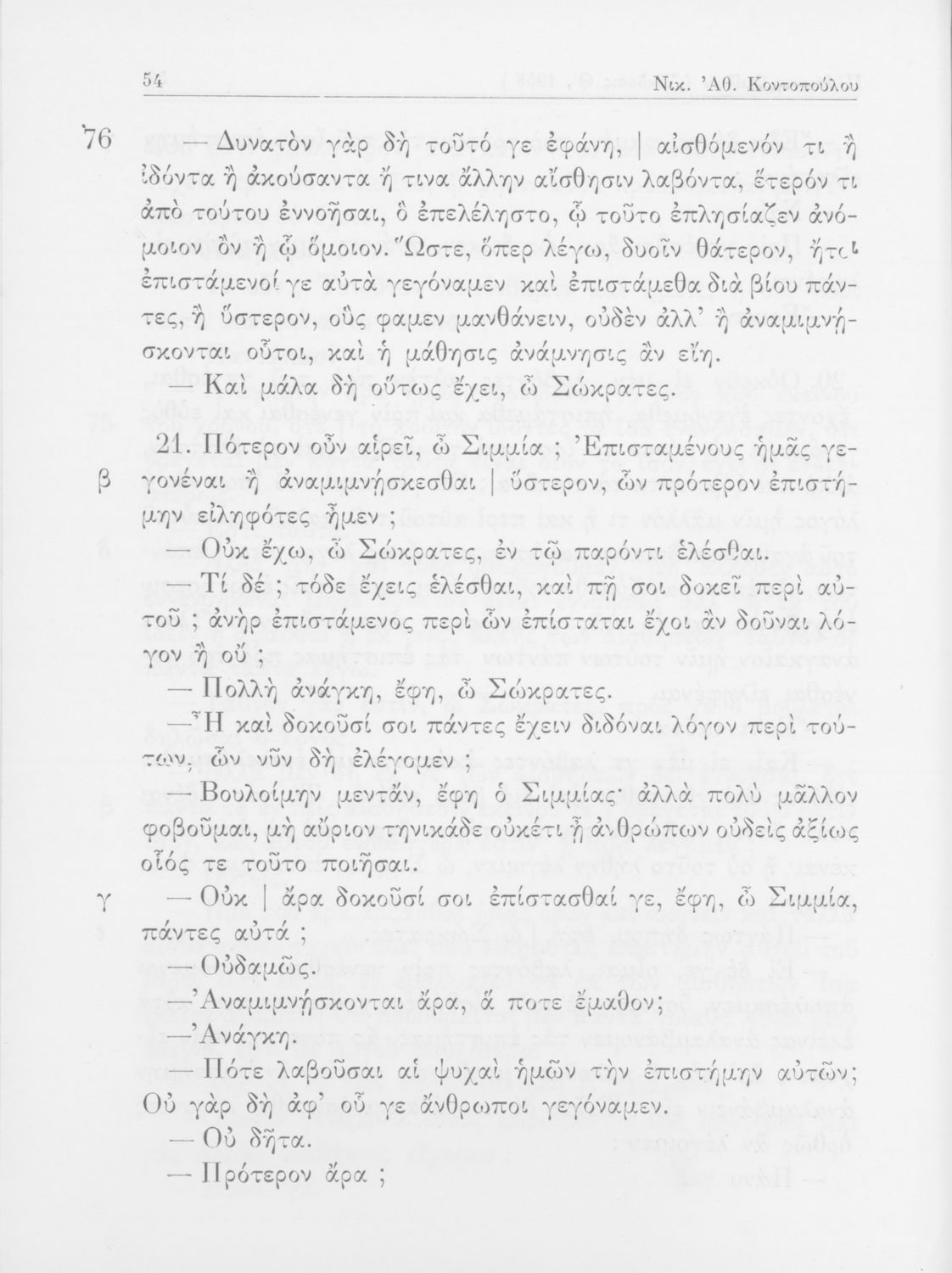 Πλάτων, Νικ. Αθ. Κοντόπουλος (σχόλια)