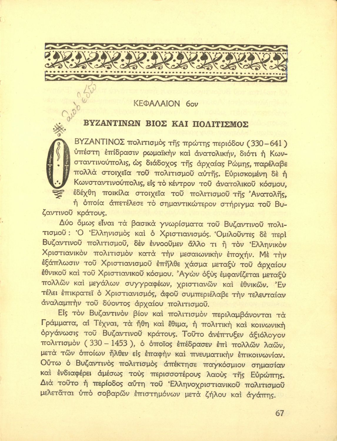 Σχολικό εγχειρίδιο Ιστορίας Δ' Εξαταξίου Γυμνασίου που καλύπτει την περίοδο από την ίδρυση της Κωνσταντινούπολης ως την πτώση της Βυζαντινής Αυτοκρατορίας.