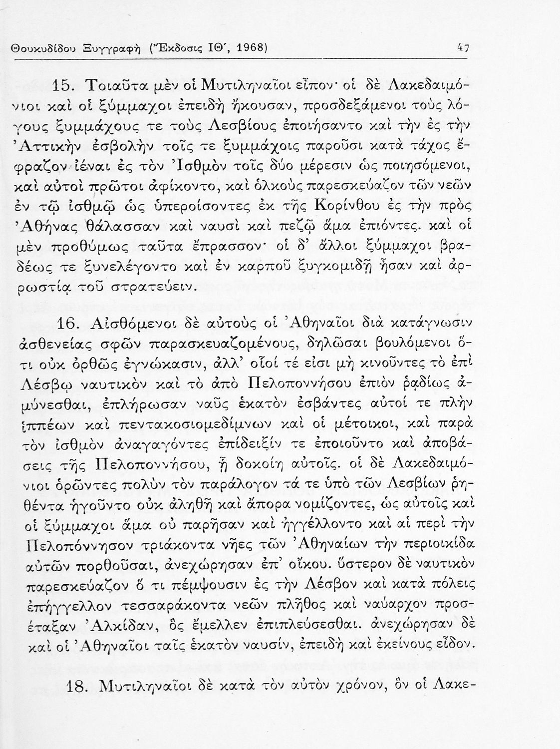 LDR 01318 2200205 4500 035 ## _a01-18330 040 ## _aΙνστιτούτο Εκπαιδευτικής Πολιτικής 041 ## _ael 100 ## _aΘουκυδίδης _aΧρίστος Παπαναστασίου (σχόλια) 110 ## _a18330 245 0# _aΘουκυδίδου Ξυγγραφή (Εκλογαί) 250 ## _a19η Έκδοση 260 ## _aΑθήνα _bΟργανισμός Εκδόσεως Διδακτικών Βιβλίων _c1968 300 ## _a128 _bΧάρτες και εικόνες (ασπρόμαυρα) _c20 520 ## _aΣχολικό εγχειρίδιο Αρχαίων Ελληνικών Γυμνασίου που περιέχει εισαγωγή στη ζωή και το έργο του Θουκυδίδη, αποσπάσματα από τα Πλαταιϊκά, τα Λεσβιακά και τον Επιτάφιο του Περικλή και ερμηνευτικές σημειώσεις. Φέρει το σύμβολο της δικτατορίας. 522 ## _aΕλλάδα 546 ## _aΚαθαρεύουσα 563 ## _aΜαλακό Εξώφυλλο 583 ## _a1728/ 7-8-1968, 1736/ 7-8-1968 _c1968 650 #4 _aΜυτιληναίοι _aΠελοποννησιακός πόλεμος _aΠερικλής _aΠλαταιείς