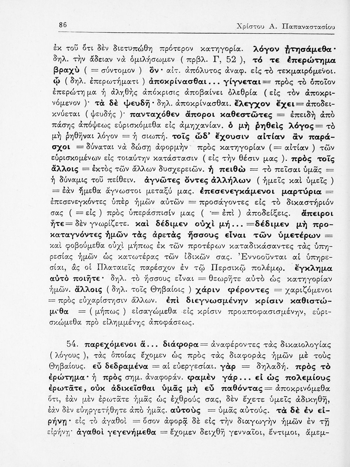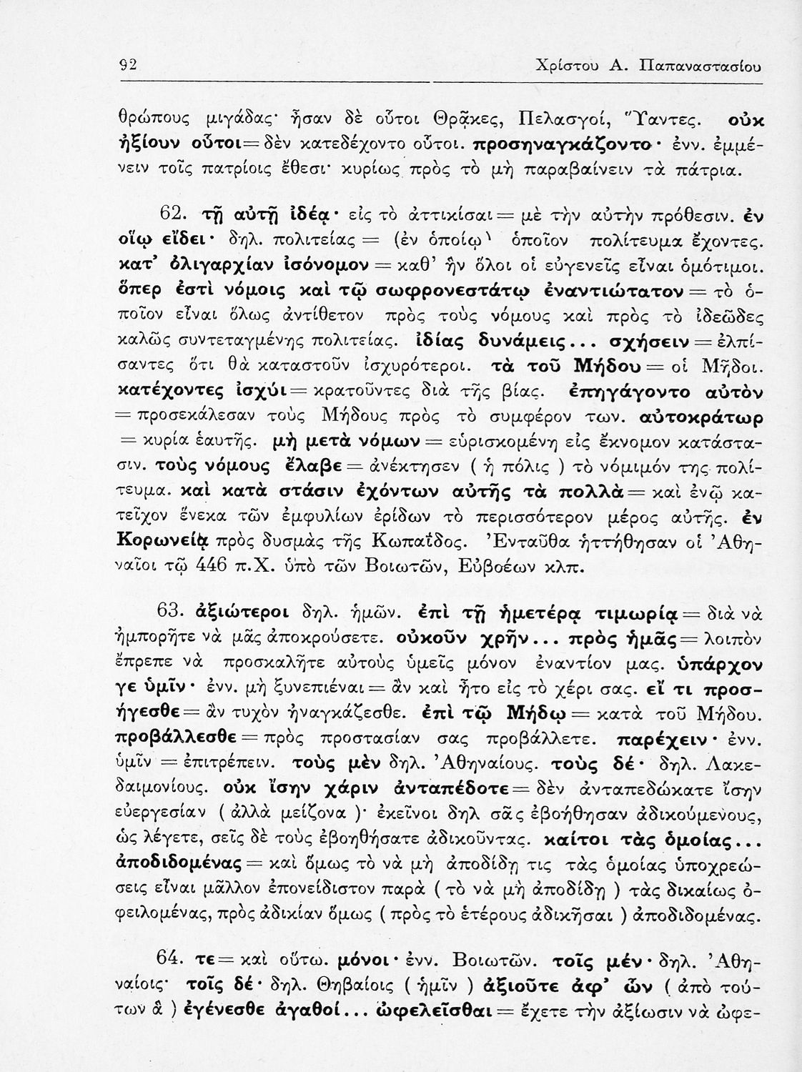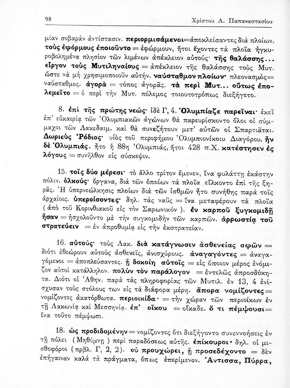Θουκυδίδης, Χρισ. Παπαναστασίου (σχόλια)