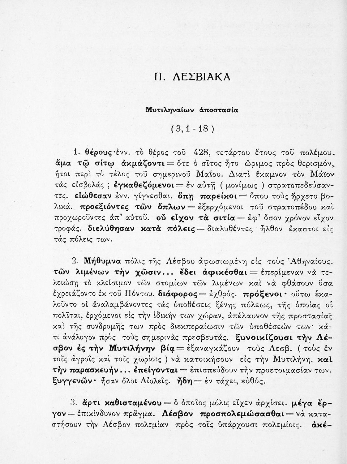 Σχολικό εγχειρίδιο Αρχαίων Ελληνικών Γυμνασίου που περιέχει εισαγωγή στη ζωή και το έργο του Θουκυδίδη, αποσπάσματα από τα Πλαταιϊκά, τα Λεσβιακά και τον Επιτάφιο του Περικλή και ερμηνευτικές σημειώσεις.