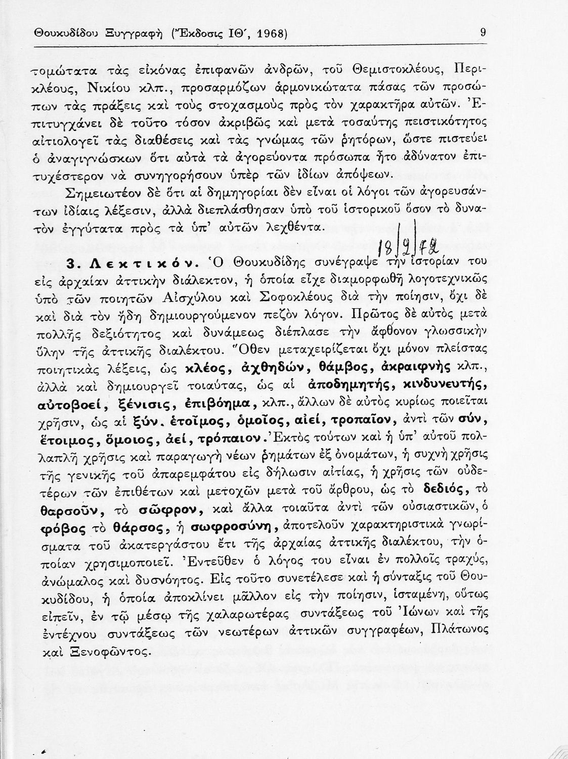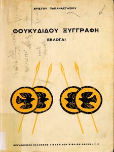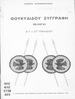 Παρουσίαση περιεχομένου: Σχολικό εγχειρίδιο Αρχαίων Ελληνικών Γυμνασίου που περιέχει εισαγωγή στη ζωή και το έργο του Θουκυδίδη, αποσπάσματα από τα Πλαταιϊκά, τα Λεσβιακά και τον Επιτάφιο του Περικλή και ερμηνευτικές σημειώσεις. Φέρει το σύμβολο της δικτατορίας.