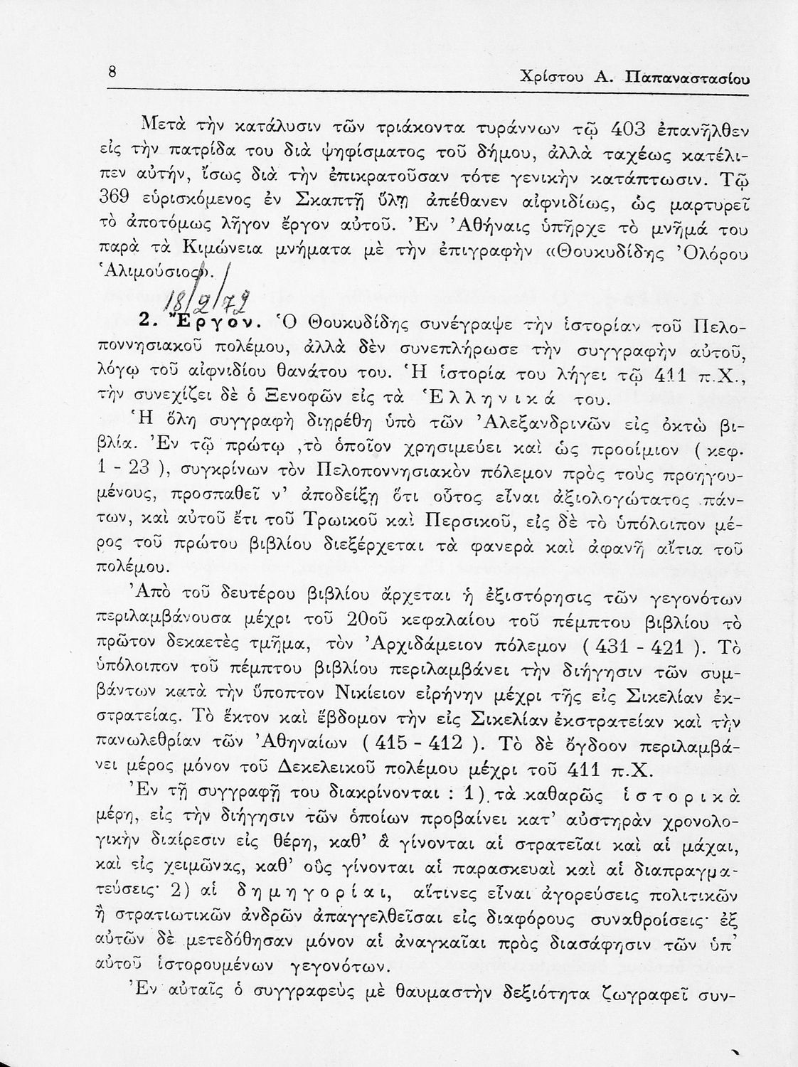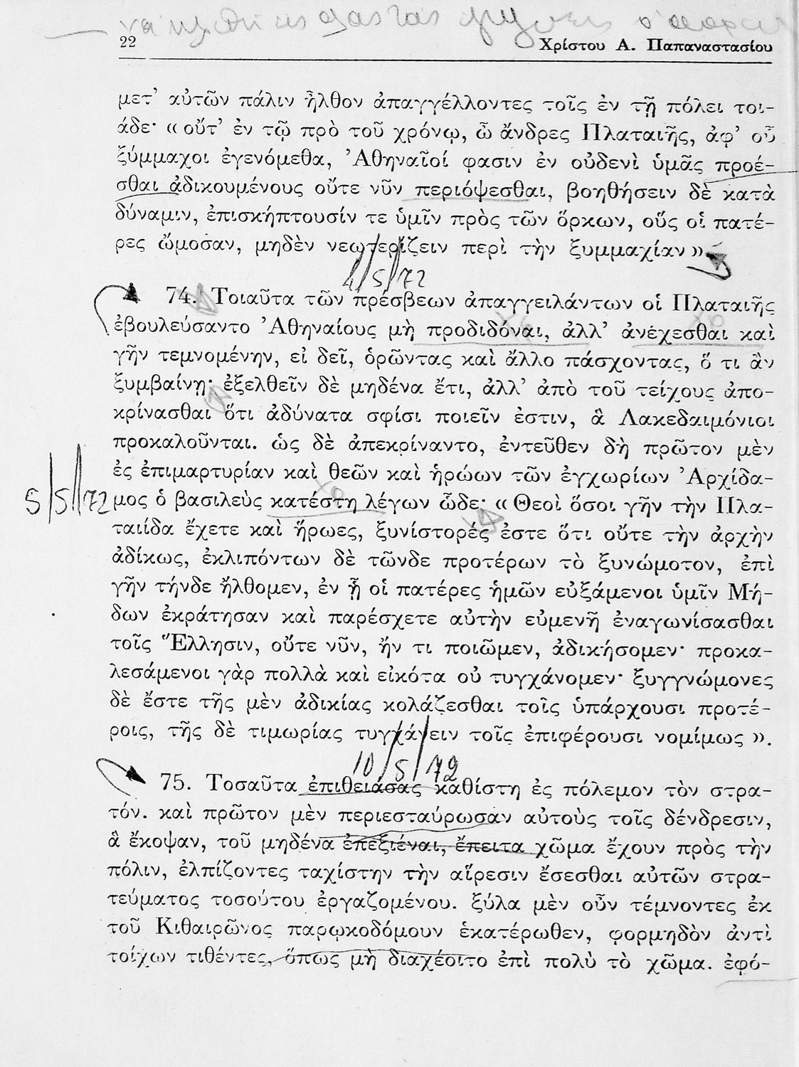Θουκυδίδης, Χρισ. Παπαναστασίου (σχόλια)