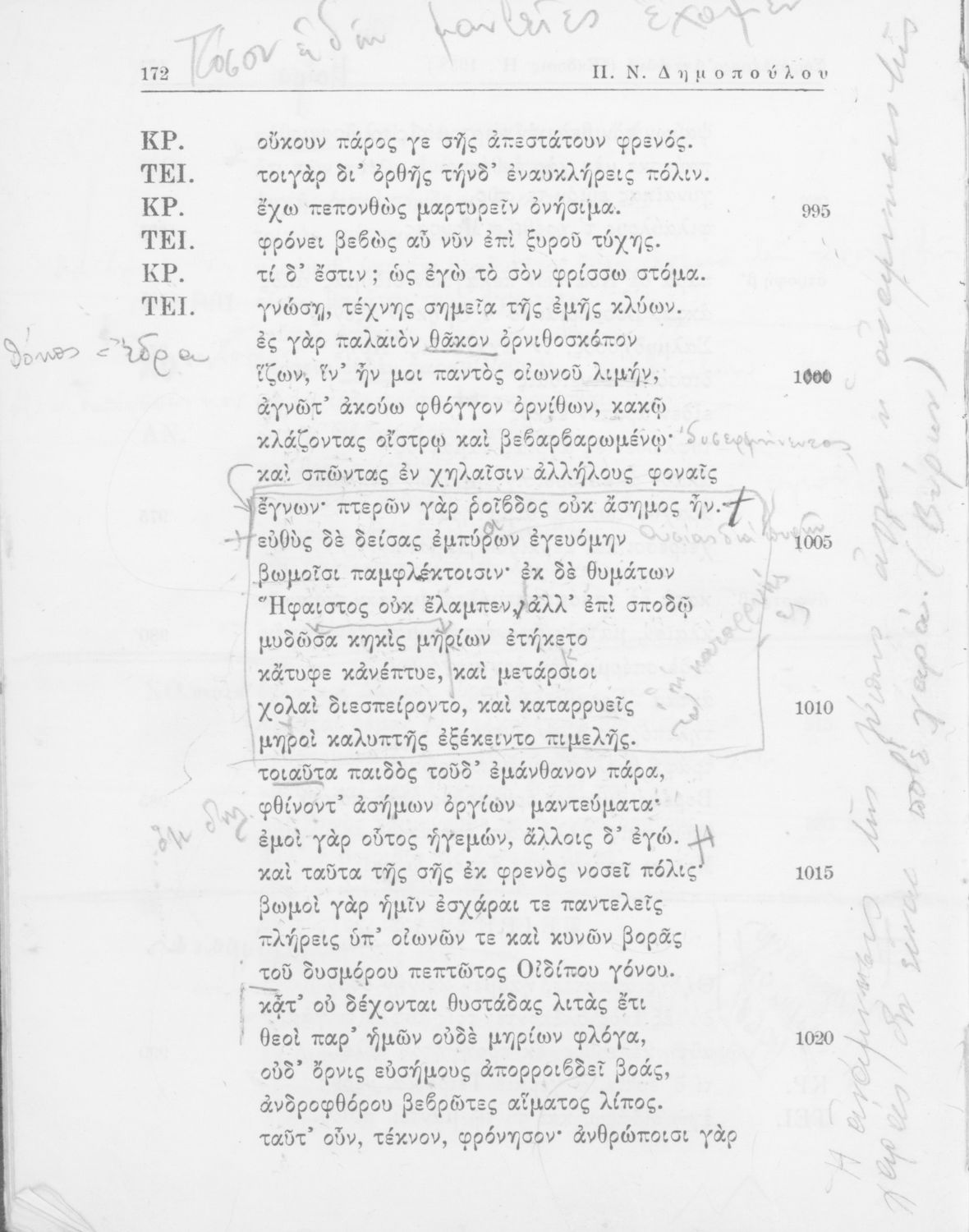 Σοφοκλής, Π. Ν Δημόπουλος (σχόλια)