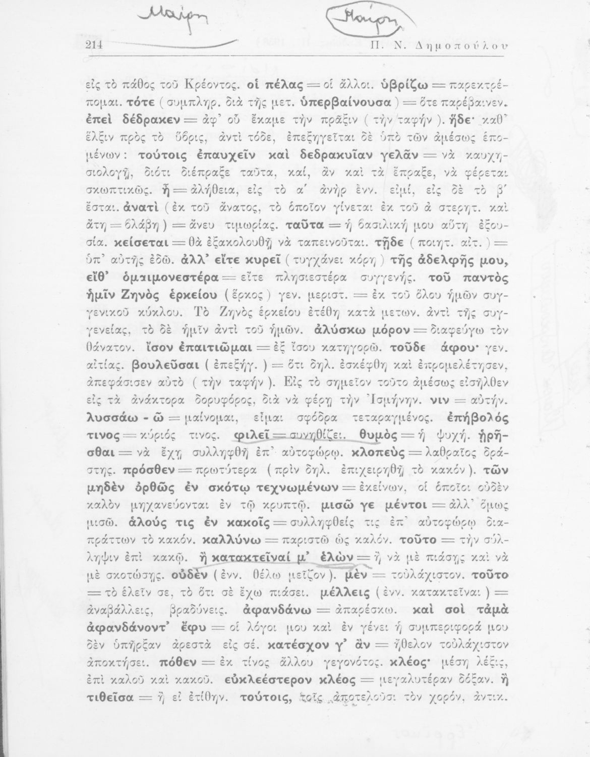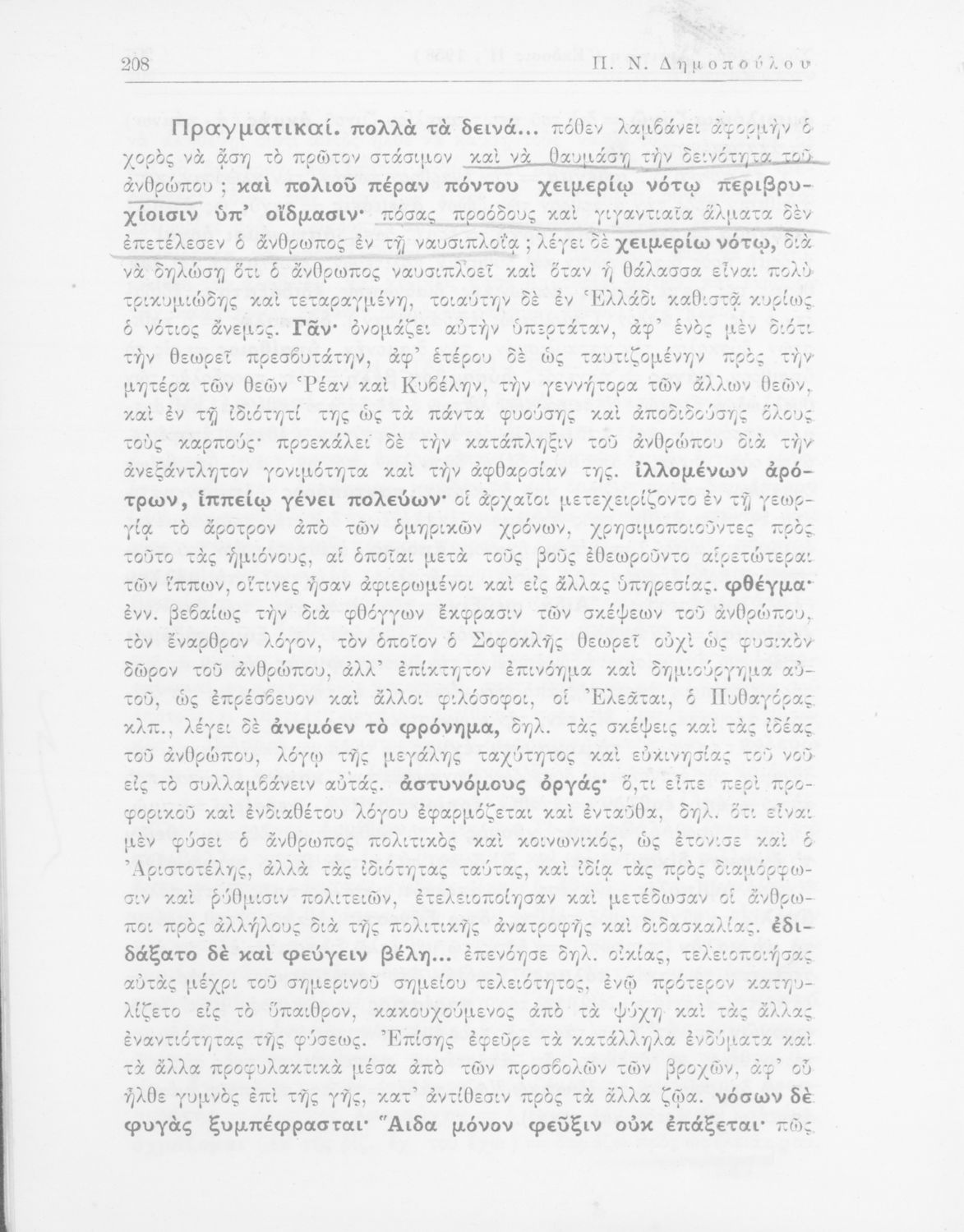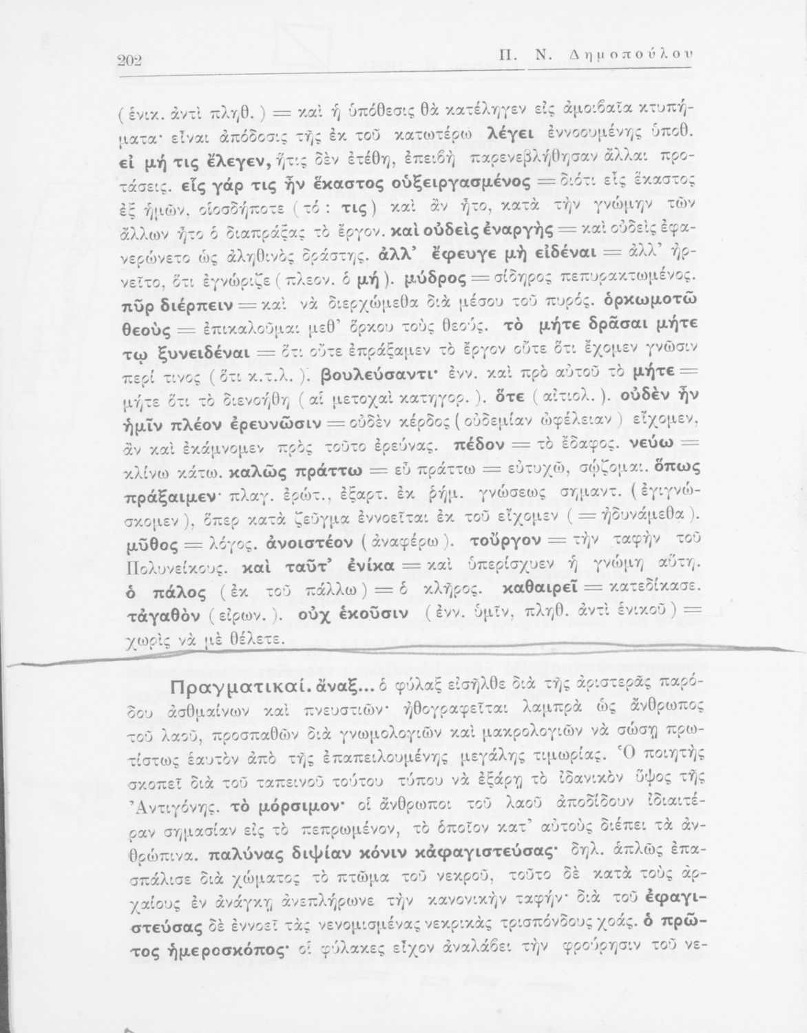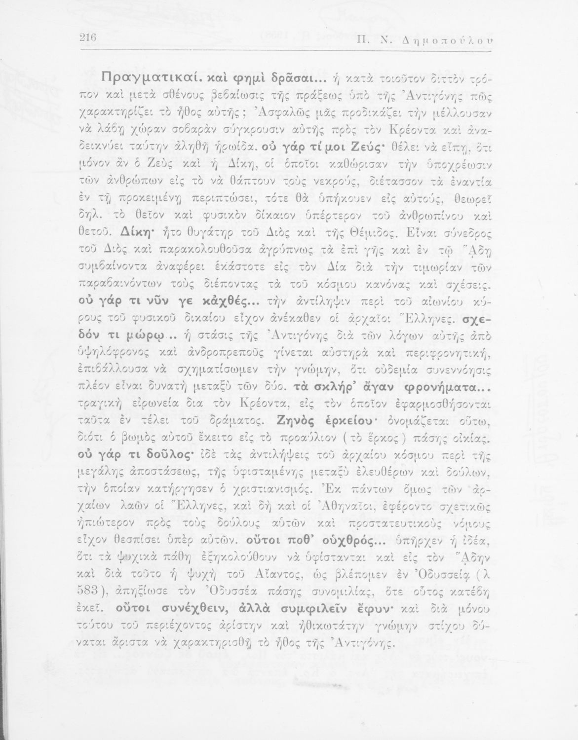 Σοφοκλής, Π.Ν. Δημόπουλος (σχόλια)
