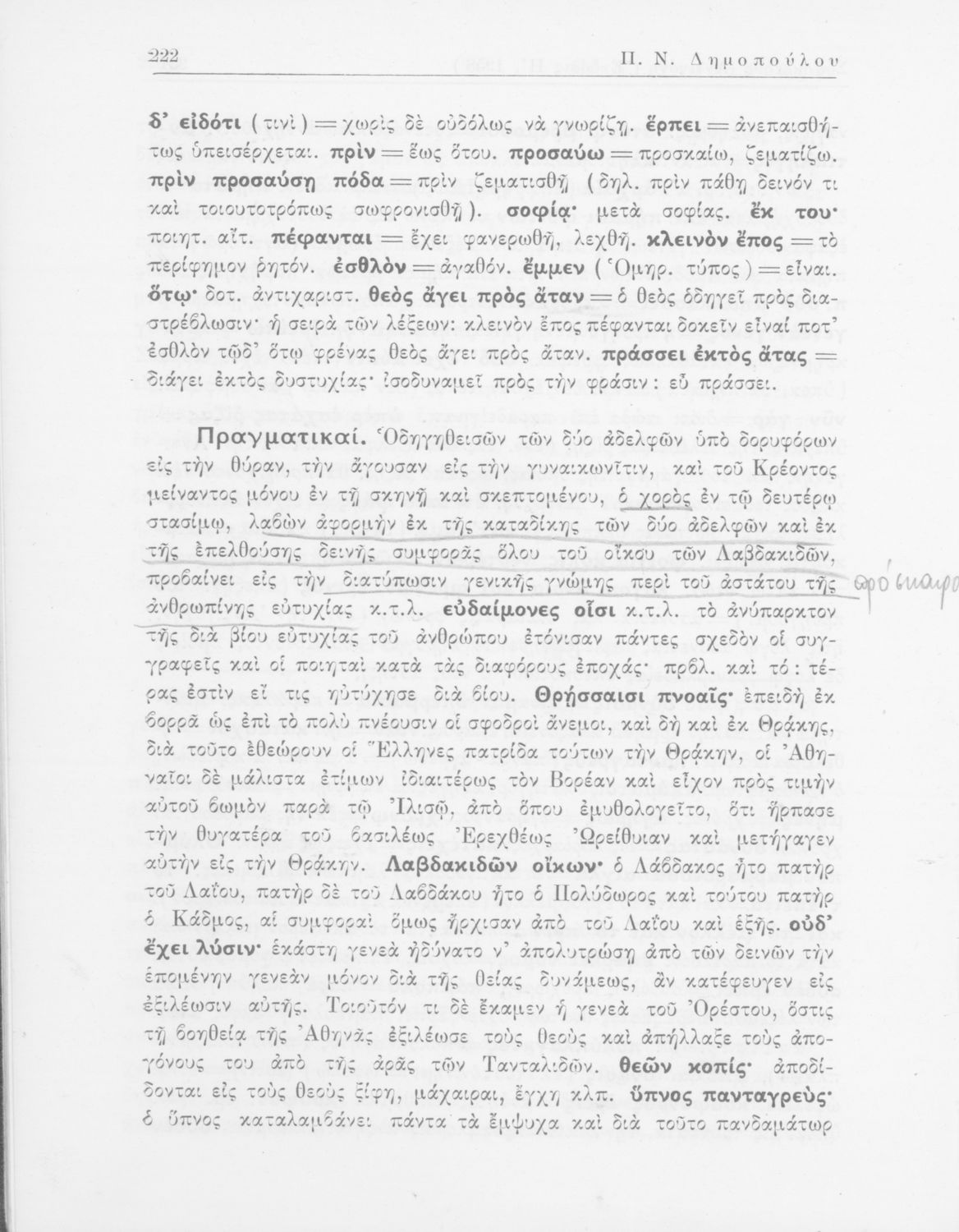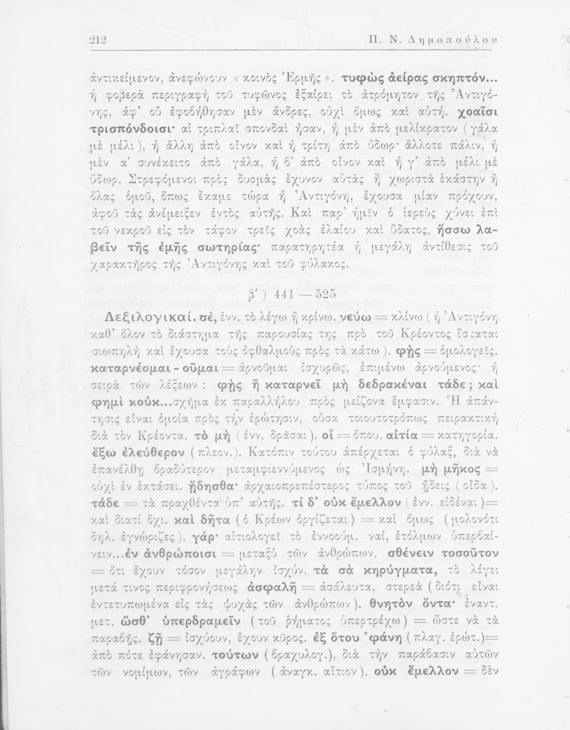 Σοφοκλής, Π. Ν Δημόπουλος (σχόλια)