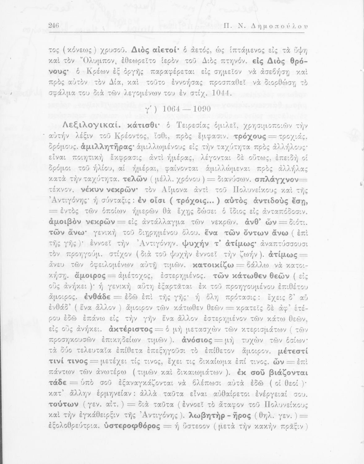 Σοφοκλής, Π. Ν Δημόπουλος (σχόλια)