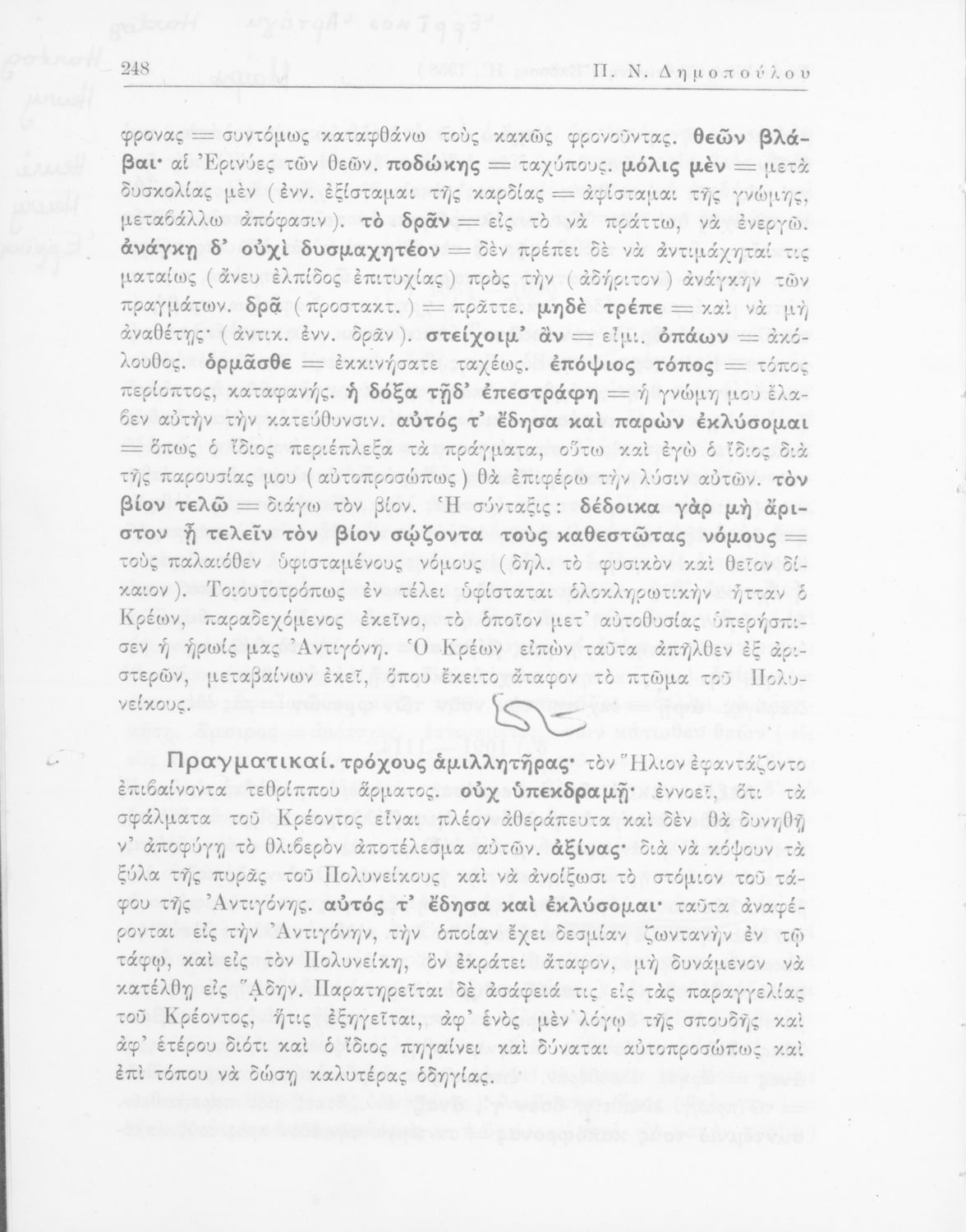 Σοφοκλής, Π.Ν. Δημόπουλος (σχόλια)