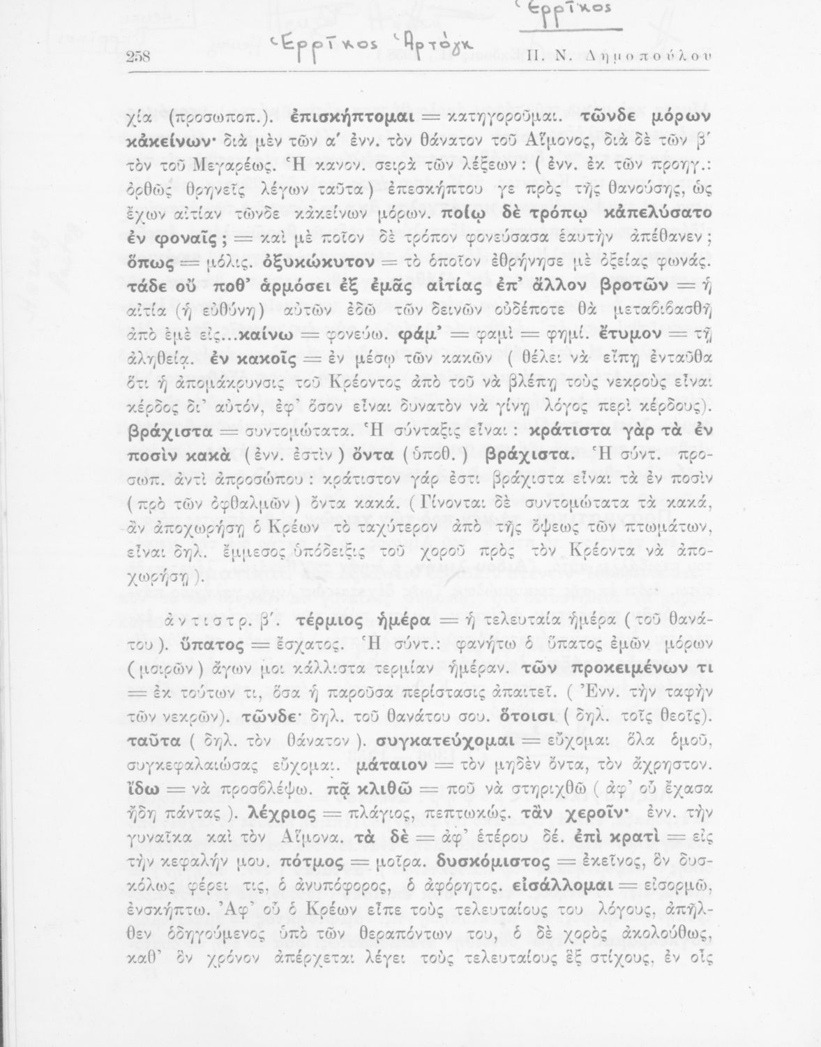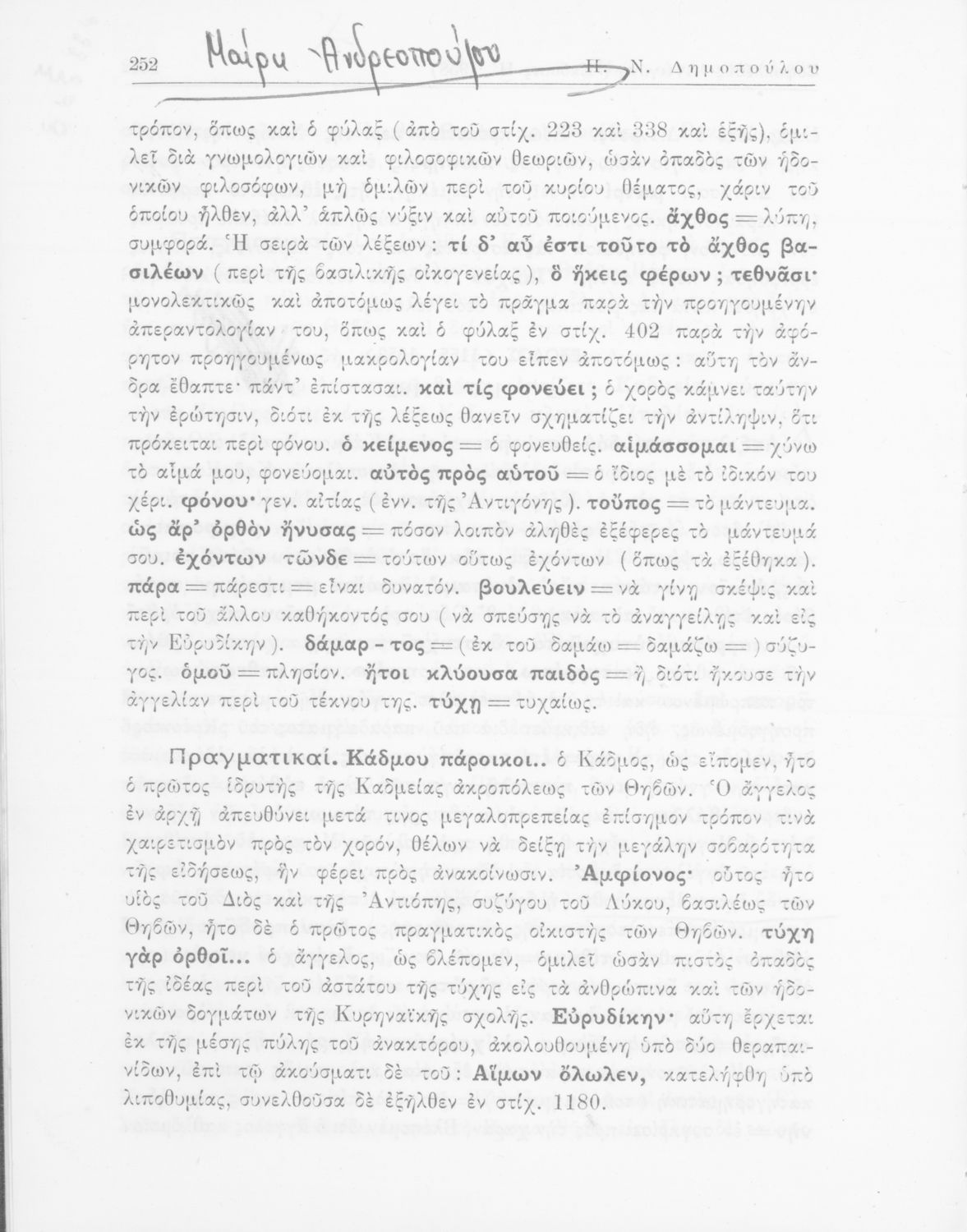 Σοφοκλής, Π. Ν. Δημόπουλος (σχόλια)