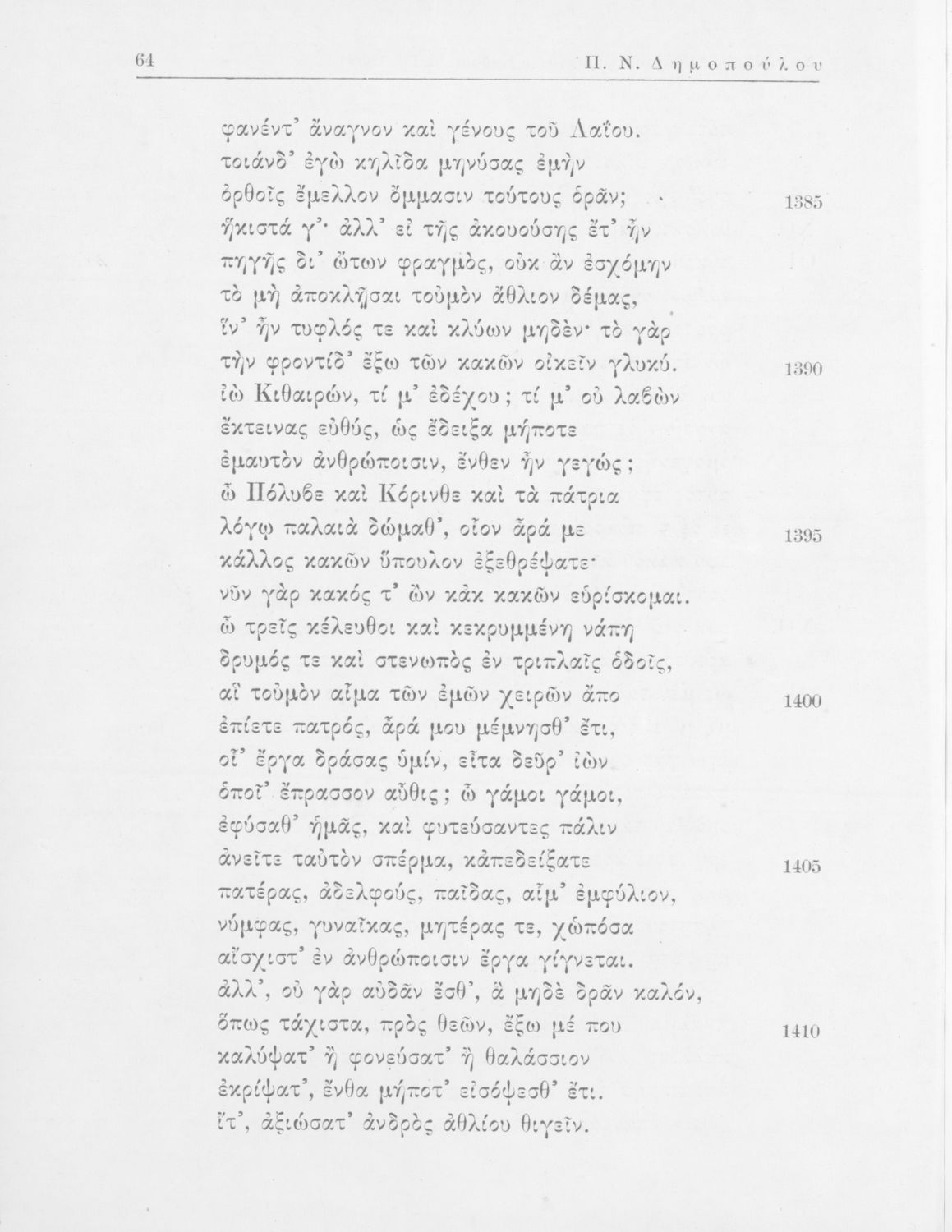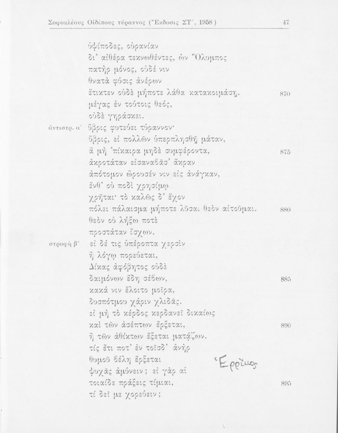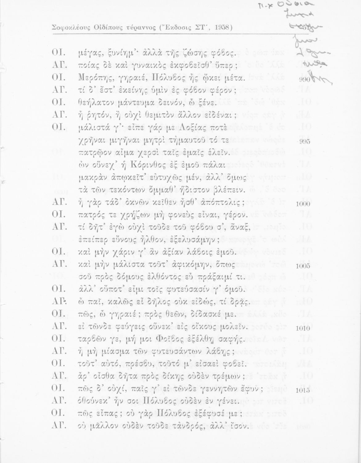 LDR 01356 2200205 4500 035 ## _a01-18331 040 ## _aΙνστιτούτο Εκπαιδευτικής Πολιτικής 041 ## _ael 100 ## _aΣοφοκλής _aΠ. Ν Δημόπουλος (μετάφραση) _aΣπυρ. Μαγγίνας (επιμέλεια) 110 ## _a18331 245 0# _aΣοφοκλέους Τραγωδίαι Οιδίπους Τύραννος Αντιγόνη 250 ## _a6η Έκδοση 260 ## _aΑθήνα _bΟργανισμός Εκδόσεως Σχολικών Βιβλίων _c1958 300 ## _a359 520 ## _aΣχολικό εγχειρίδιο για τις Τάξεις του Γυμνασίου για το μάθημα των Αρχαίων Ελληνικών. Περιλαμβάνει αποσπάσματα του αρχαίου κειμένου από τις Τραγωδίες. Περιέχει μετάφραση ερμηνευτικά, πραγματολογικά σχόλια και λεξιλογικές παρατηρήσεις του συγγραφέα. 521 ## _aΓυμνάσιο 522 ## _aΕλλάδα 546 ## _aΑπλή καθαρεύουσα 563 ## _aΣκληρό Εξώφυλλο 650 #4 _aΑντιγόνη _aΔράμα _aΙσμήνη _aΚάθαρση _aΚρέοντας _aΟιδίπους _aΟρέστης _aΤραγωδία