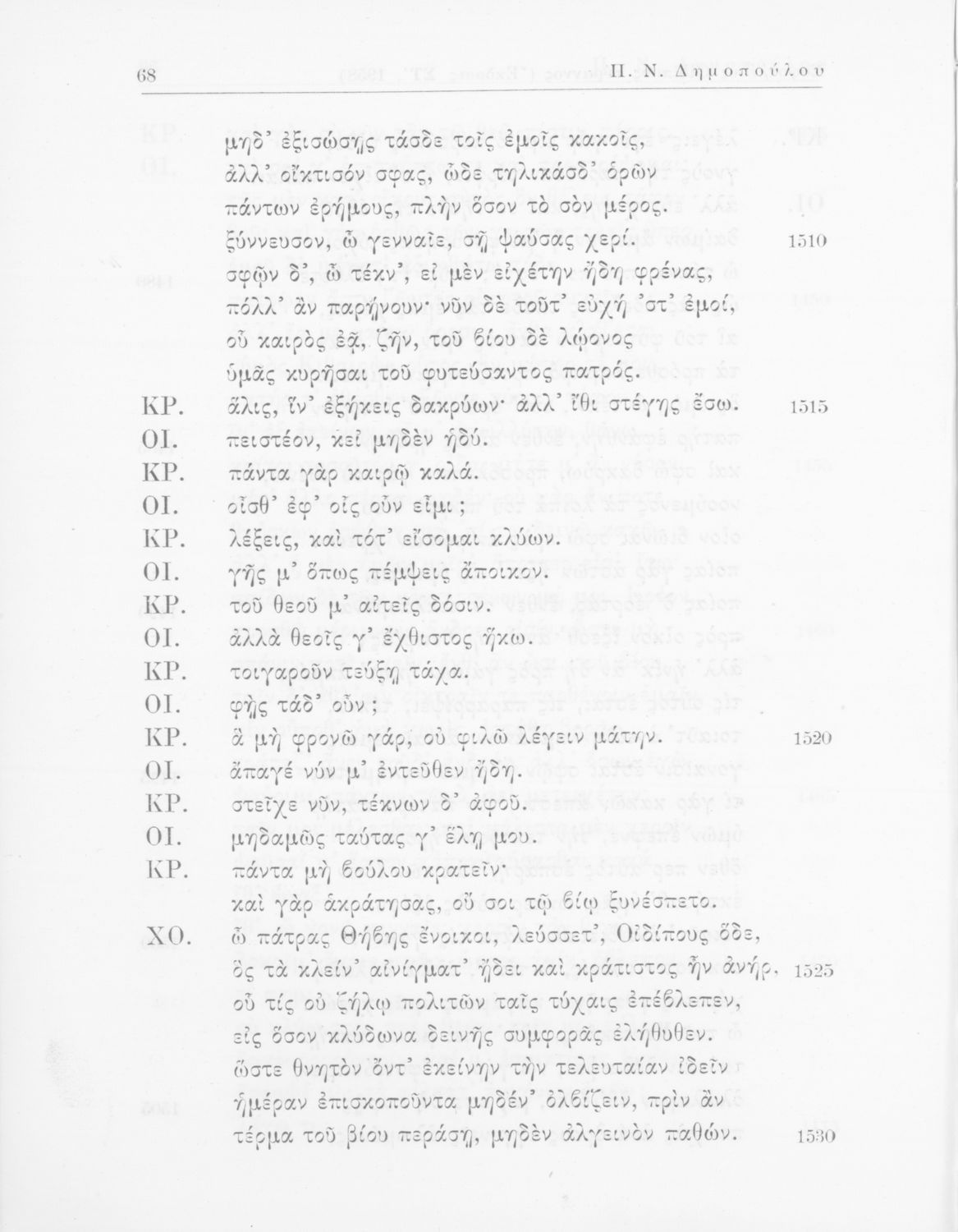 Σοφοκλής, Π. Ν. Δημόπουλος (σχόλια)