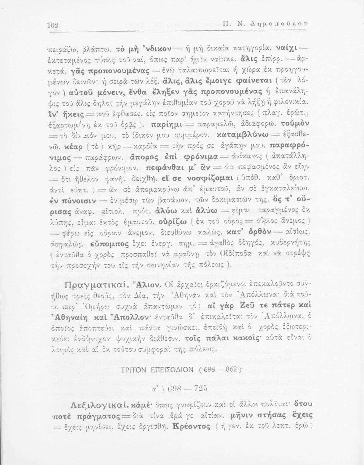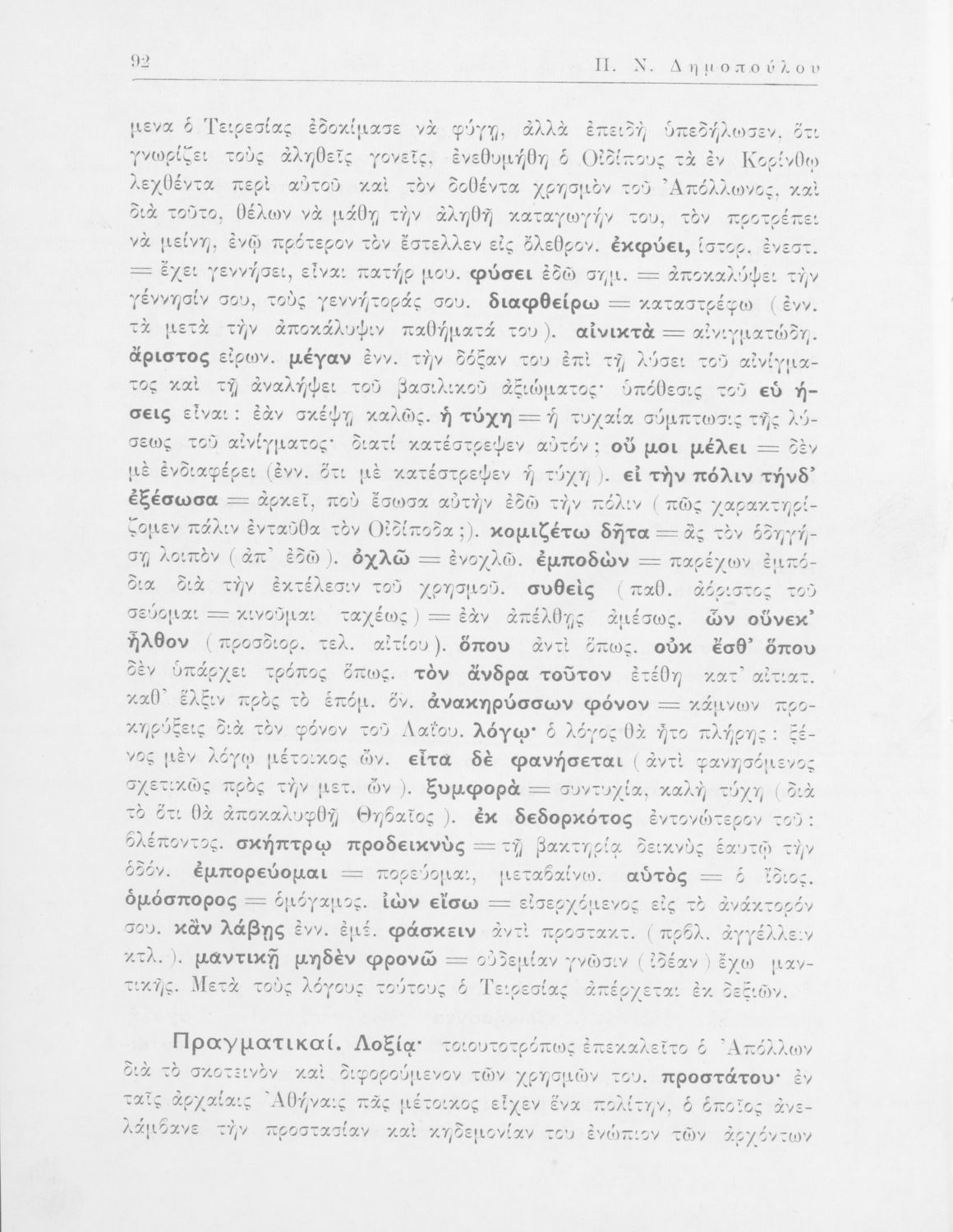 Βαθμίδα εκπαίδευσης: Δευτεροβάθμια Τάξη: Γυμνάσιο Μάθημα: Αρχαία Ελληνικά Γλώσσα: Απλή καθαρεύουσα Παρουσίαση περιεχομένου: Σχολικό εγχειρίδιο για τις Τάξεις του Γυμνασίου για το μάθημα των Αρχαίων Ελληνικών. Περιλαμβάνει αποσπάσματα του αρχαίου κειμένου από τις Τραγωδίες. Περιέχει μετάφραση ερμηνευτικά, πραγματολογικά σχόλια και λεξιλογικές παρατηρήσεις του συγγραφέα. |