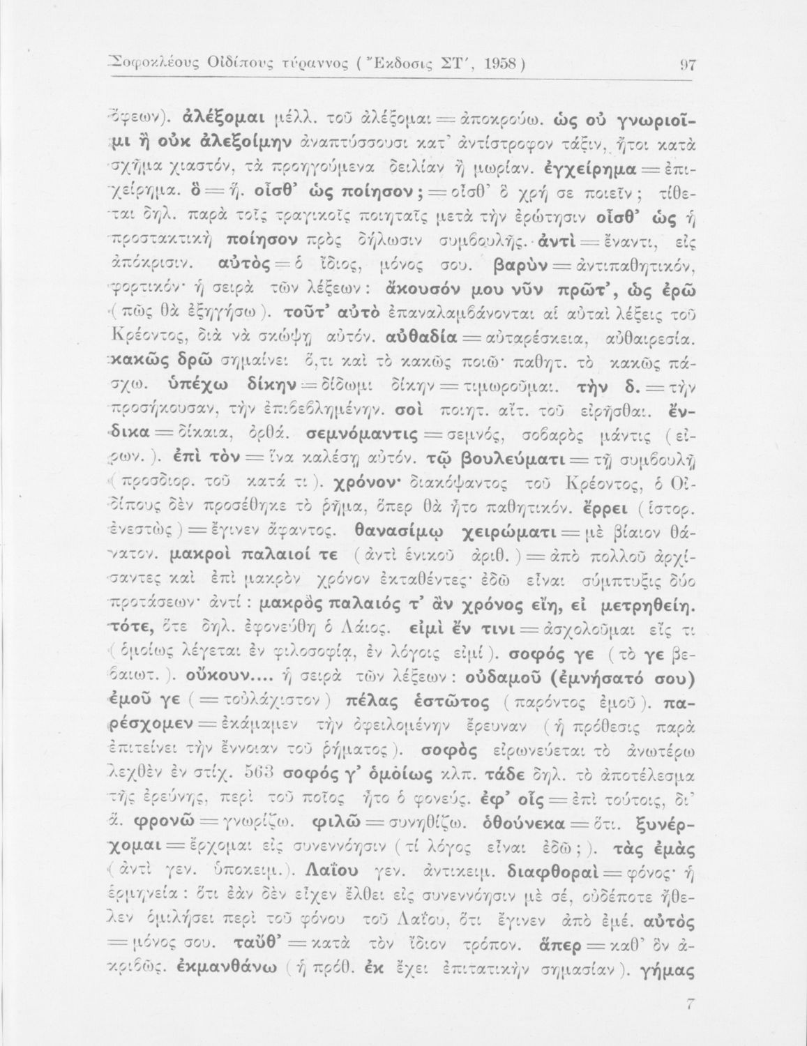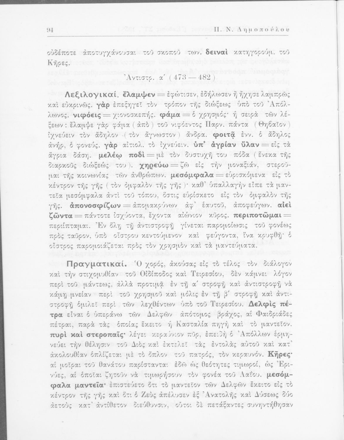 LDR 01356 2200205 4500 035 ## _a01-18331 040 ## _aΙνστιτούτο Εκπαιδευτικής Πολιτικής 041 ## _ael 100 ## _aΣοφοκλής _aΠ. Ν Δημόπουλος (μετάφραση) _aΣπυρ. Μαγγίνας (επιμέλεια) 110 ## _a18331 245 0# _aΣοφοκλέους Τραγωδίαι Οιδίπους Τύραννος Αντιγόνη 250 ## _a6η Έκδοση 260 ## _aΑθήνα _bΟργανισμός Εκδόσεως Σχολικών Βιβλίων _c1958 300 ## _a359 520 ## _aΣχολικό εγχειρίδιο για τις Τάξεις του Γυμνασίου για το μάθημα των Αρχαίων Ελληνικών. Περιλαμβάνει αποσπάσματα του αρχαίου κειμένου από τις Τραγωδίες. Περιέχει μετάφραση ερμηνευτικά, πραγματολογικά σχόλια και λεξιλογικές παρατηρήσεις του συγγραφέα. 521 ## _aΓυμνάσιο 522 ## _aΕλλάδα 546 ## _aΑπλή καθαρεύουσα 563 ## _aΣκληρό Εξώφυλλο 650 #4 _aΑντιγόνη _aΔράμα _aΙσμήνη _aΚάθαρση _aΚρέοντας _aΟιδίπους _aΟρέστης _aΤραγωδία