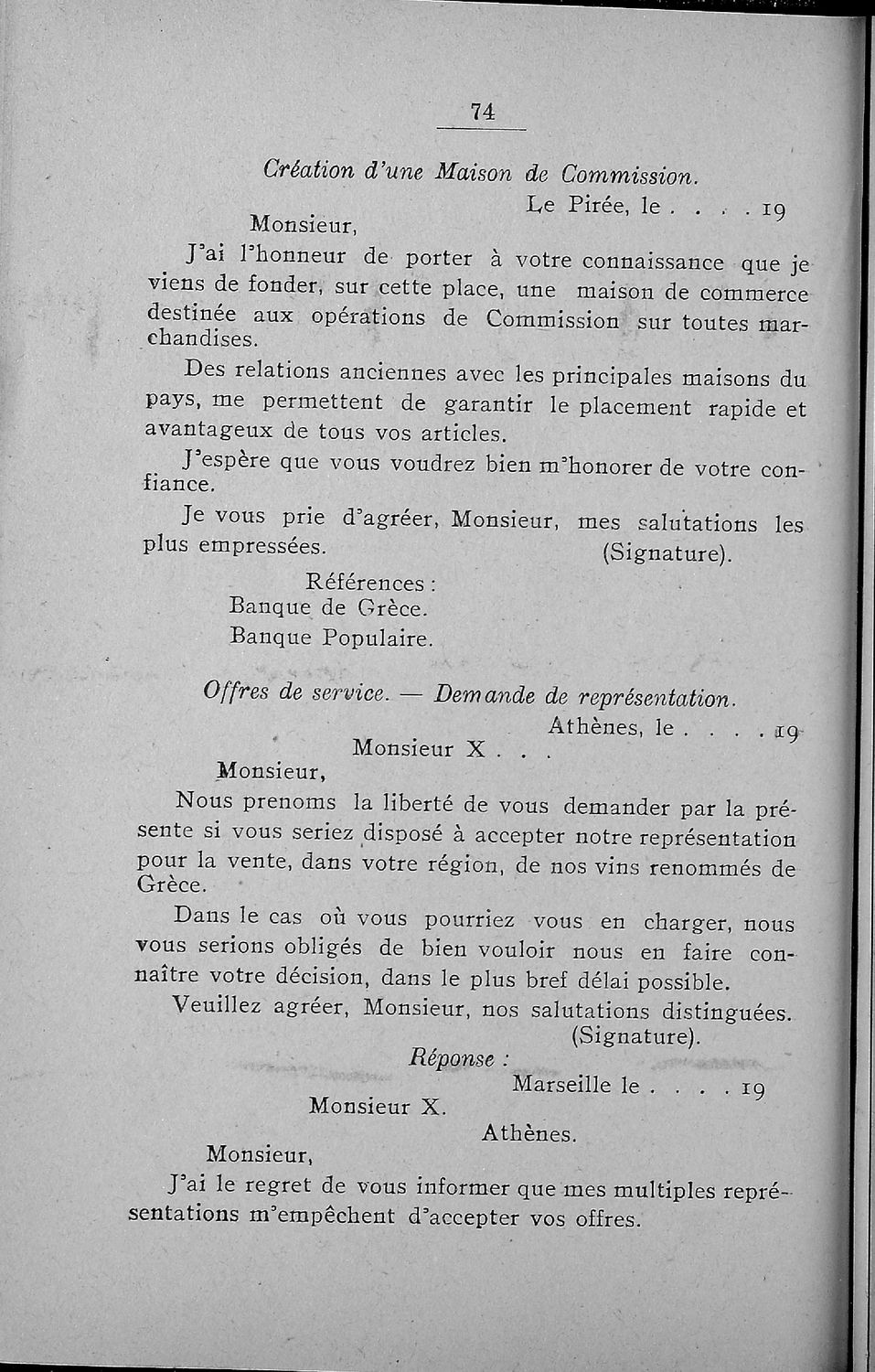 Σχολικό εγχειρίδιο Γαλλικών για τις εμπορικές και πρακτικές σχολές που περιλαμβάνει γραμματική, ασκήσεις και υποδείγματα εμπορικών επιστολών. Ο συγγραφέας ήταν καθηγητής στην Γ’ Δημόσια Εμπορική Σχολή Αθηνών.