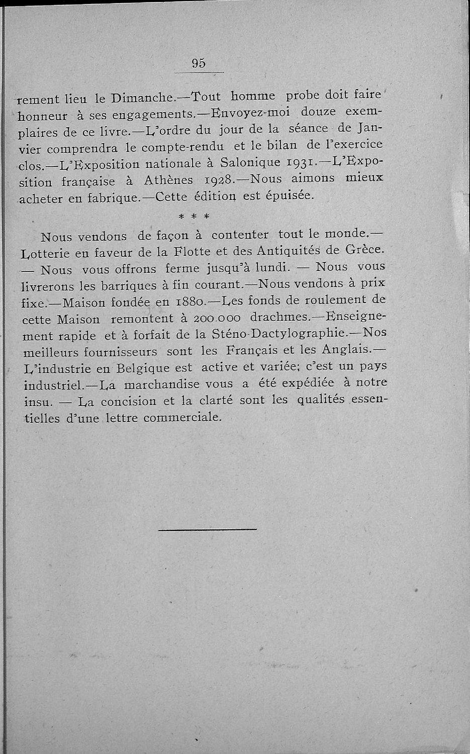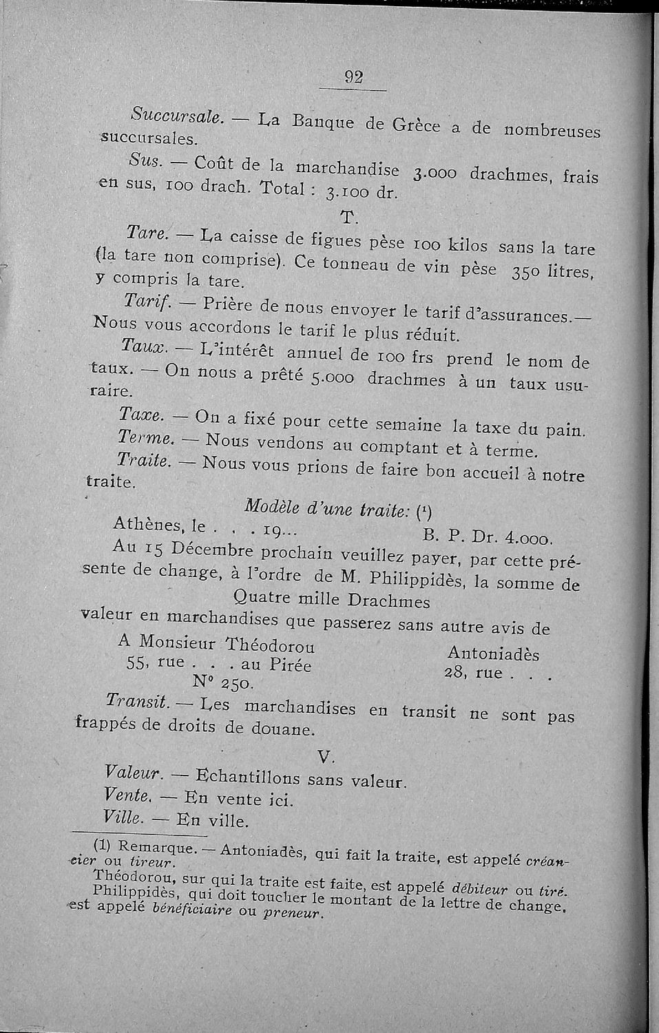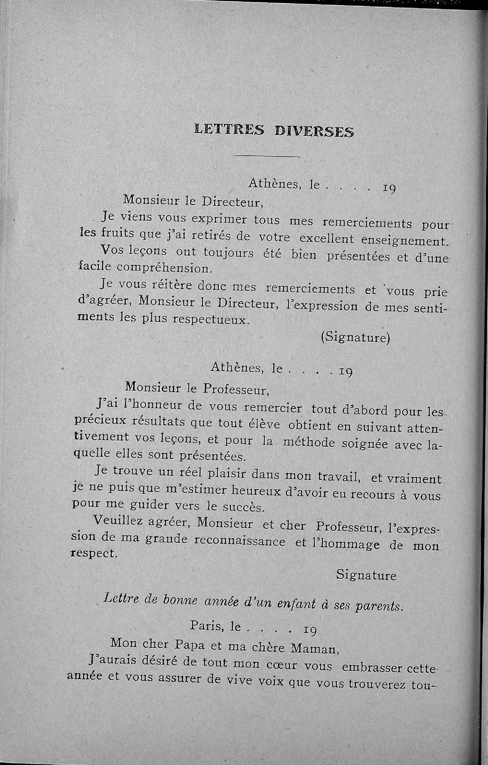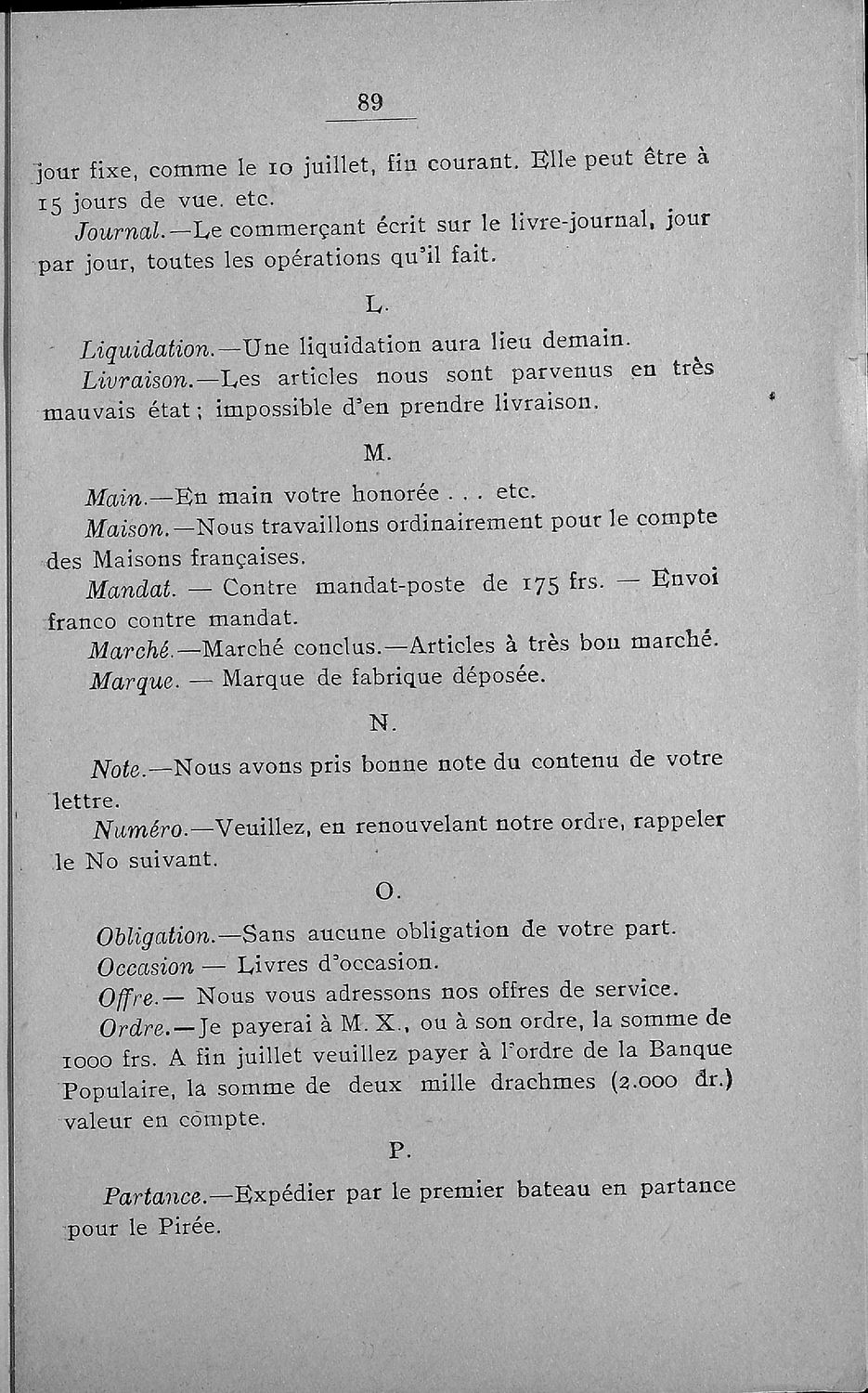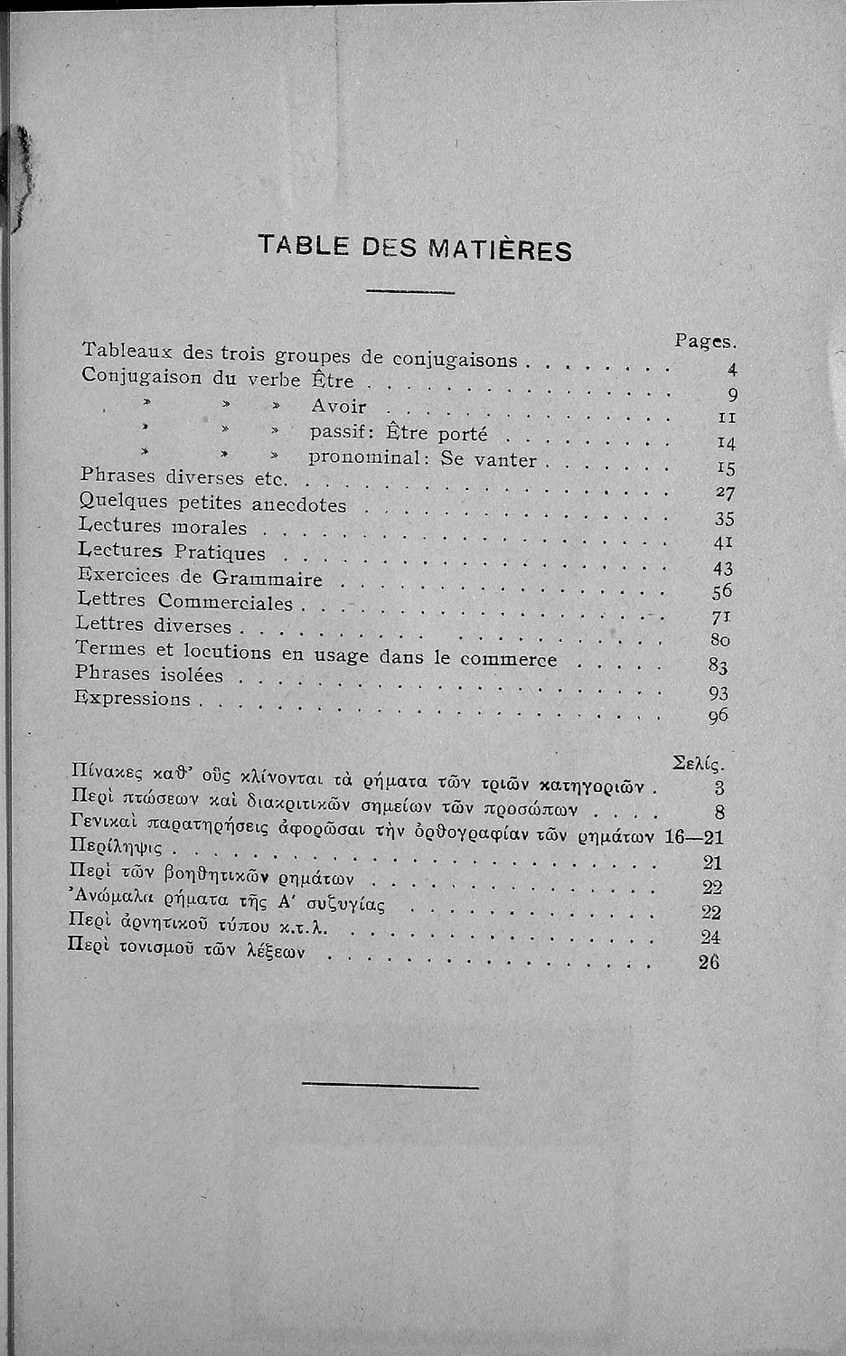 Σχολικό εγχειρίδιο Γαλλικών για τις εμπορικές και πρακτικές σχολές που περιλαμβάνει γραμματική, ασκήσεις και υποδείγματα εμπορικών επιστολών. Ο συγγραφέας ήταν καθηγητής στην Γ’ Δημόσια Εμπορική Σχολή Αθηνών.